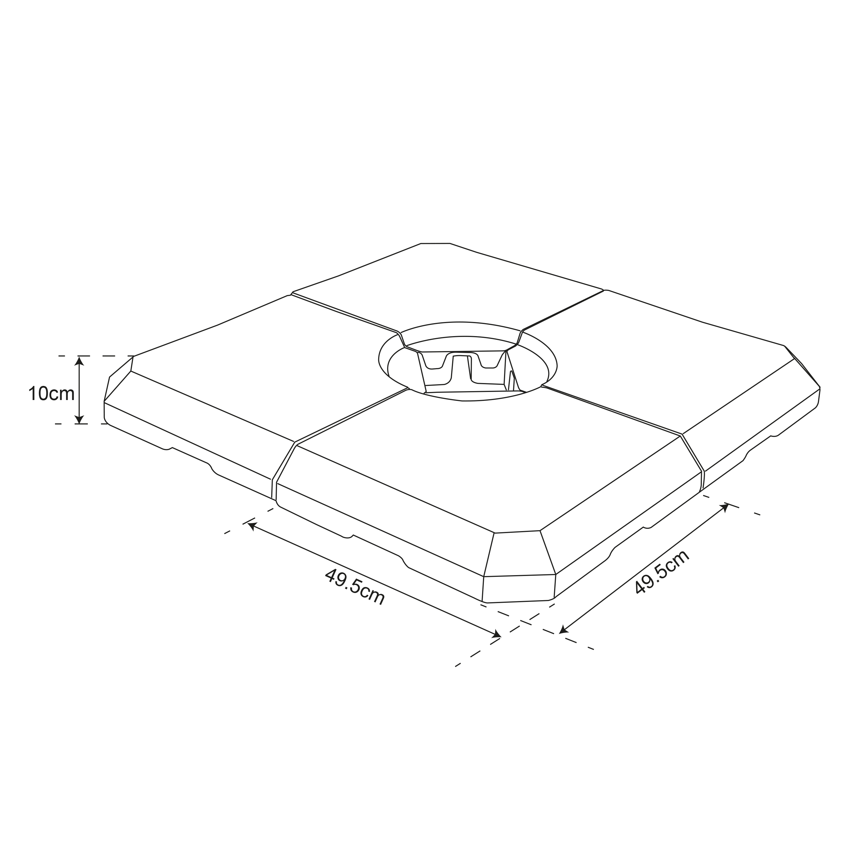 - Geschikt voor zweefparasols tot maximaal 2,5 x 2,5 meter of diameter 3 meter.