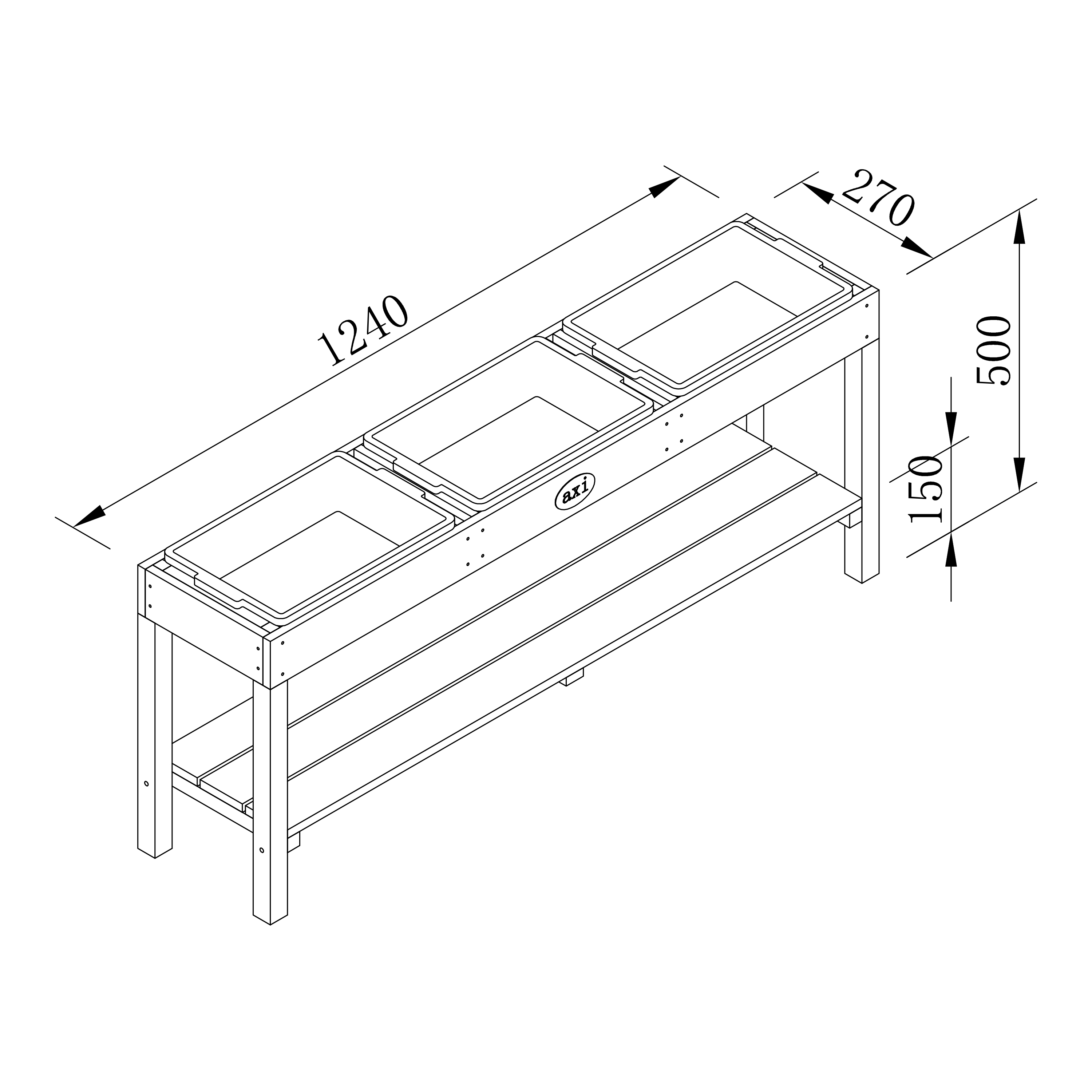 De AXI Activiteiten Tafel met 3 blauwe bakken Naturel Bruin is veelzijdig in te zetten. Kinderen kunnen de tafel ideaal gebruiken als leuke zand- en watertafel. Vul de kunststof bakjes met water, zand of klei en je kinderen kunnen zich helemaal uitleven! Knutselen, kliederen en kneden: het kan allemaal met deze tafel! De tafel is 50 cm hoog en dus ideaal om aan te staan en te spelen. Aan de onderkant is de tafel voorzien van een opbergplank. Zo ruim je los speelgoed makkelijk op en heeft je kind het altijd bij de hand!