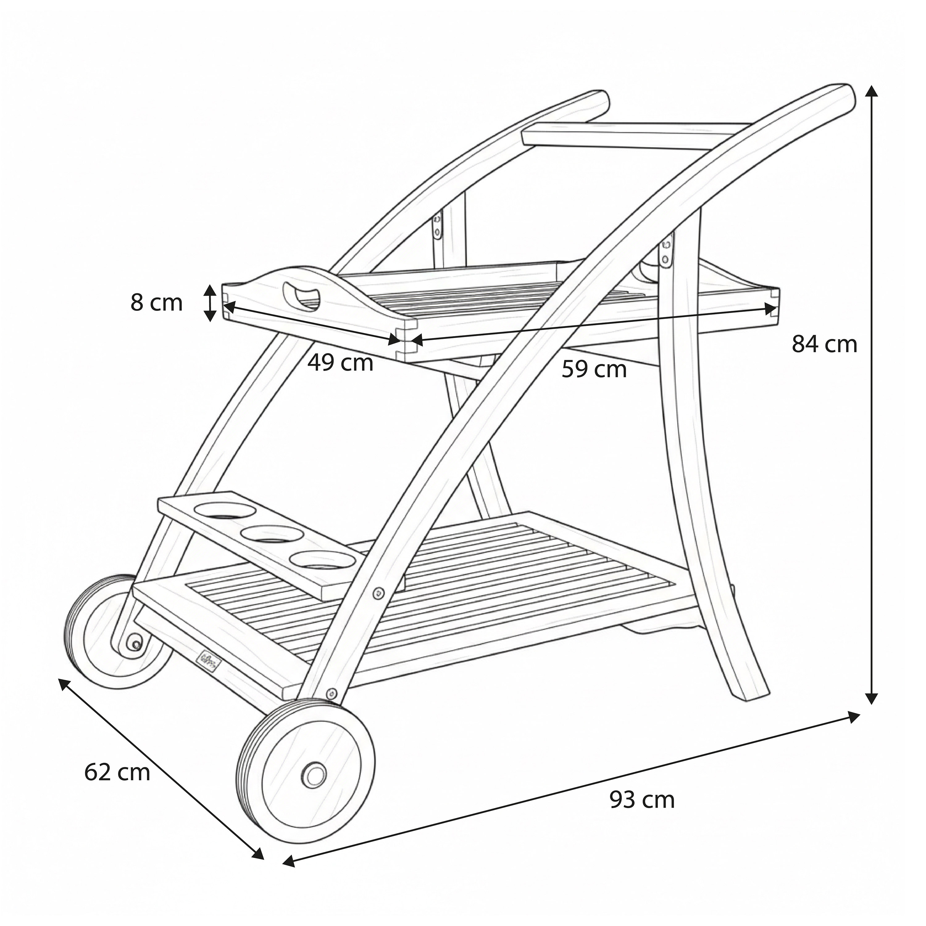 Serveertrolley (LxBxH): 93 x 62 x 84 cm.