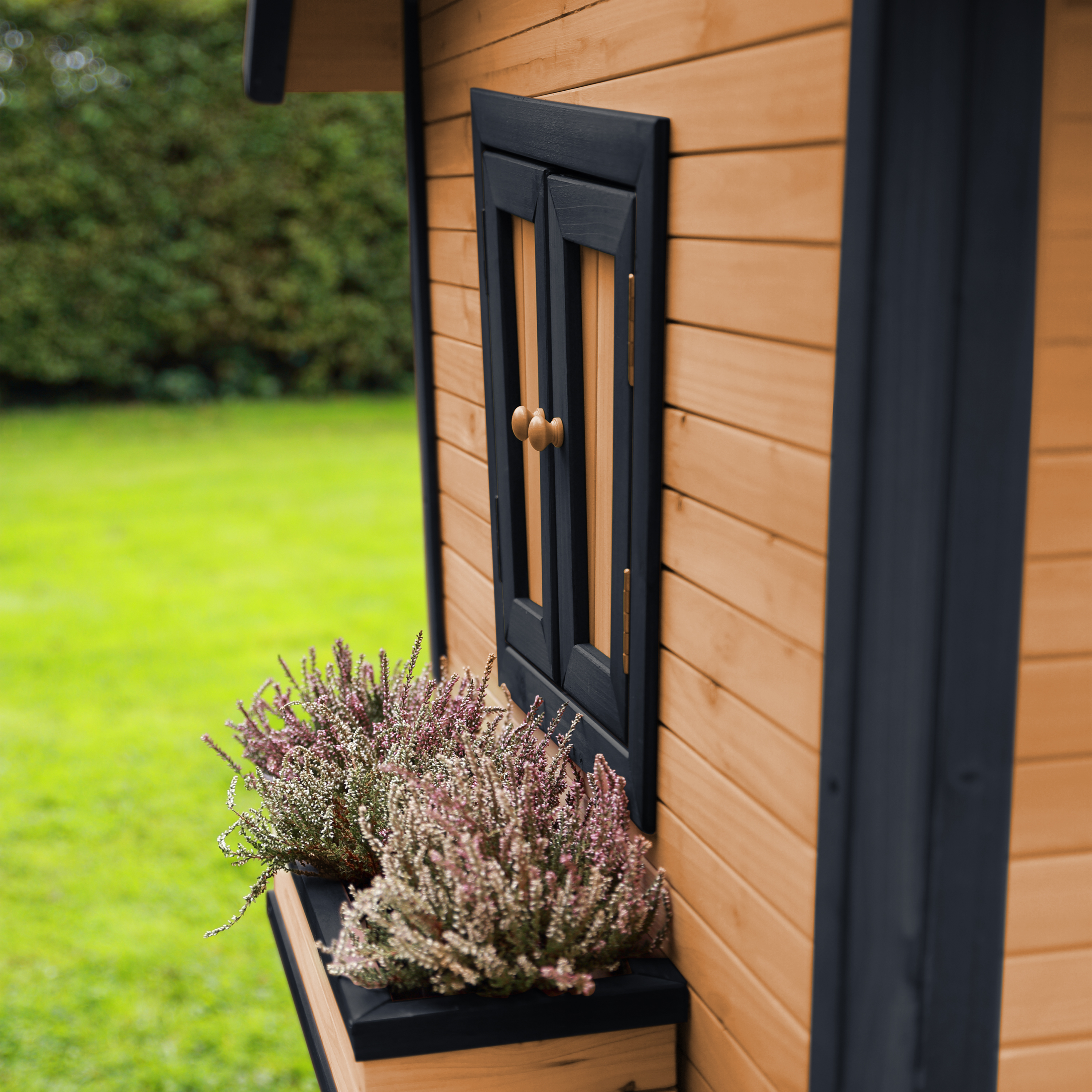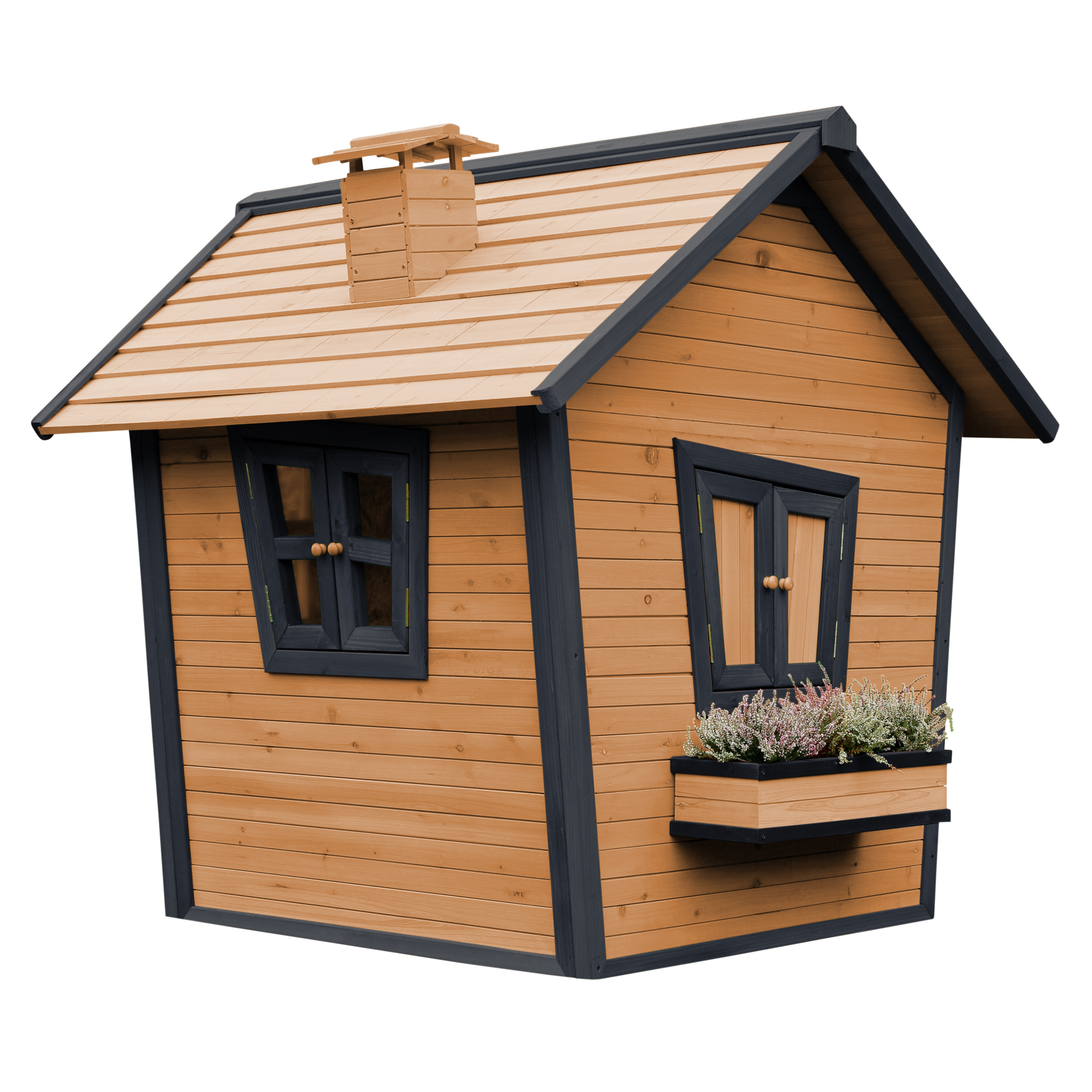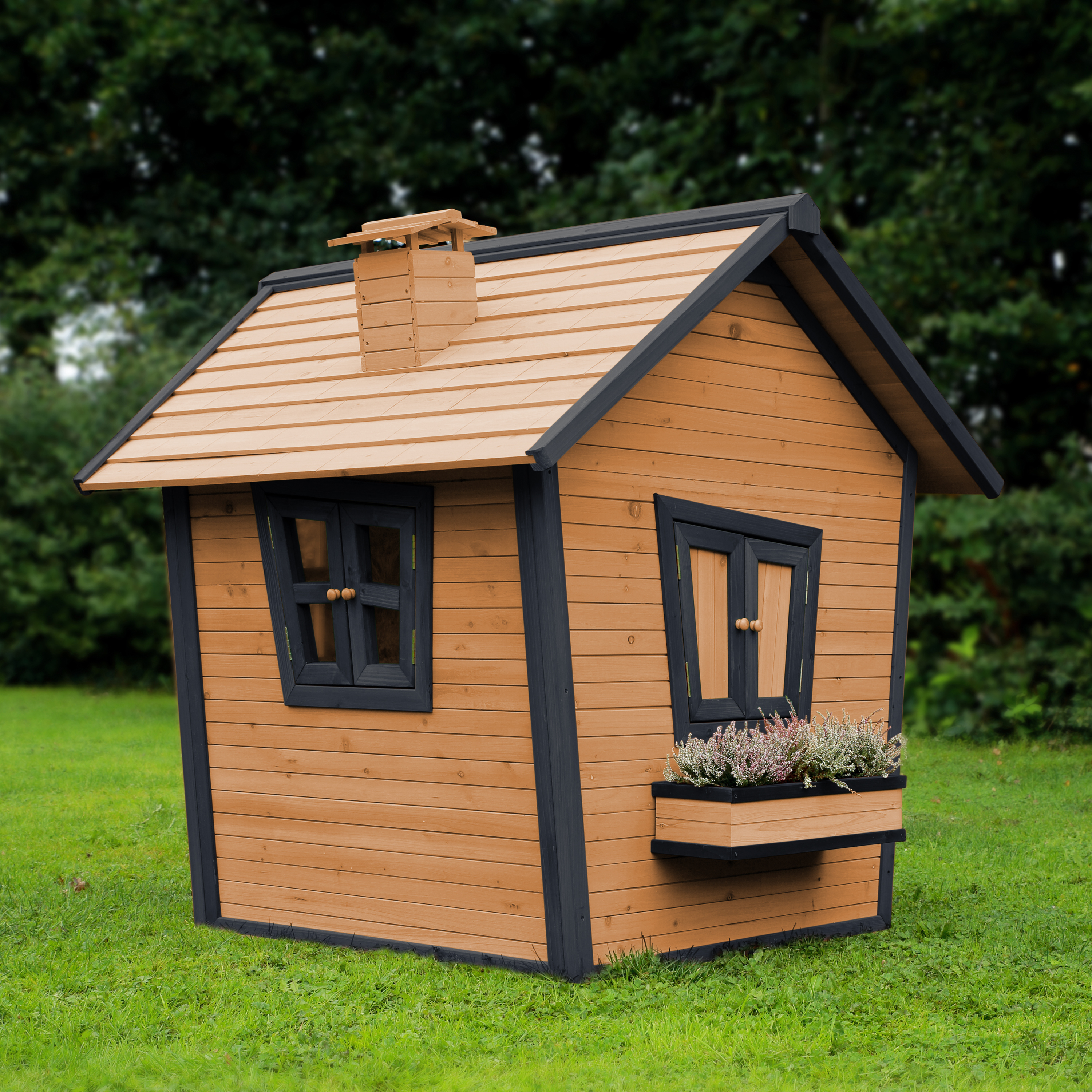 Kinderen kunnen gezellig in de tuin spelen in hun eigen AXI Alice Speelhuis Bruin/antraciet. Alice is een veelzijdig houten speelhuis uit de unieke Crooked serie van AXI. Het speelhuisje is uitgevoerd in moderne Bruin/antraciete kleuren welke perfect in iedere hedendaagse tuin passen. Alle speelhuisjes van het Crooked ontwerp hebben een schoorsteen op het dak en schuine ramen. De schuine deur heeft een klein raampje zodat kinderen kunnen zien wie er voor de deur staat zonder deze te openen. Bij mooi weer kunnen de kinderen de ramen eenvoudig openen en genieten van alles wat er buiten gebeurt. Laat ze snel de ramen dicht doen als het gaat regenen, zo zitten ze beschut en kunnen ze heerlijk doorspelen!