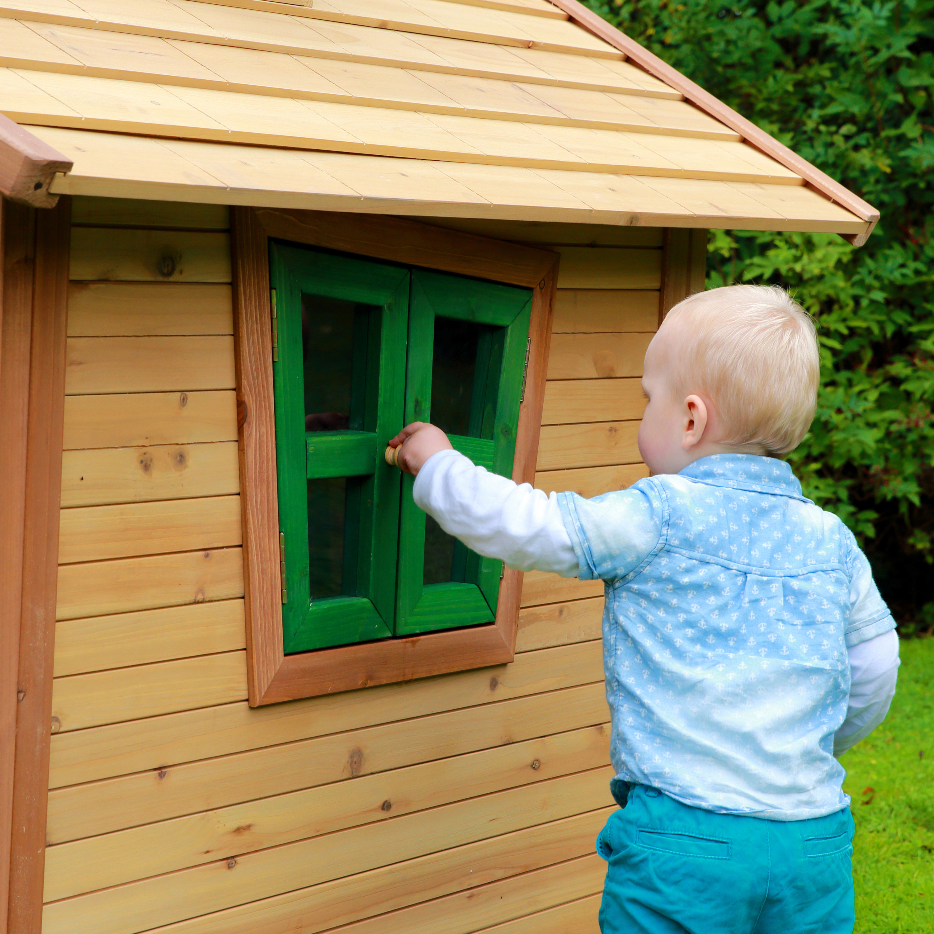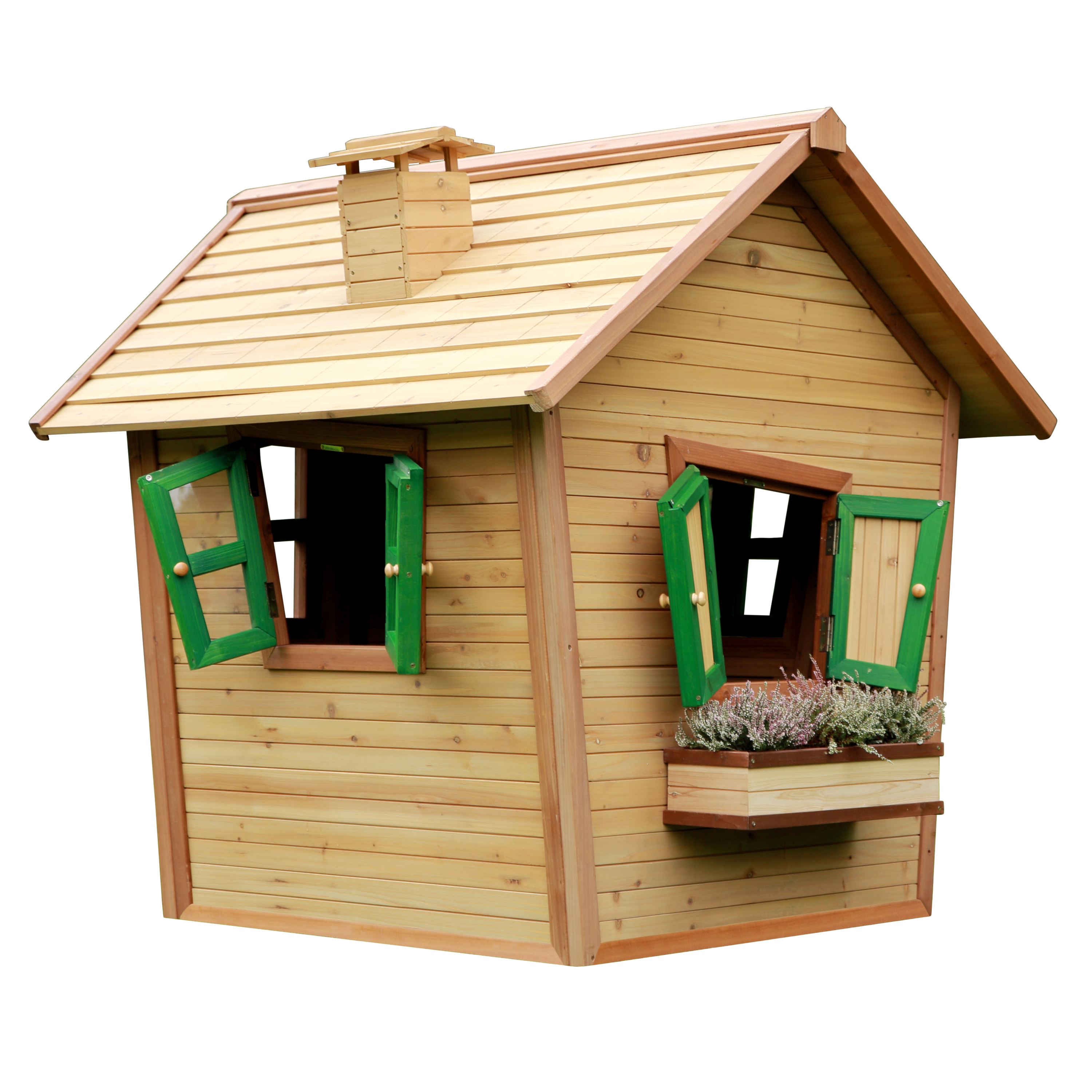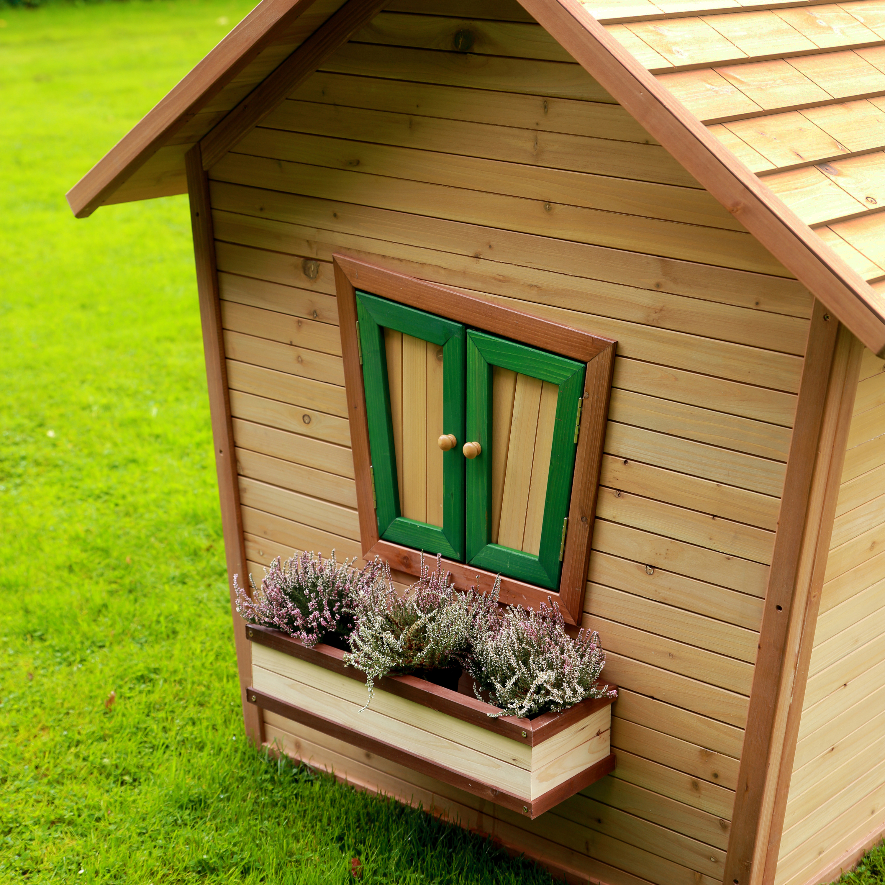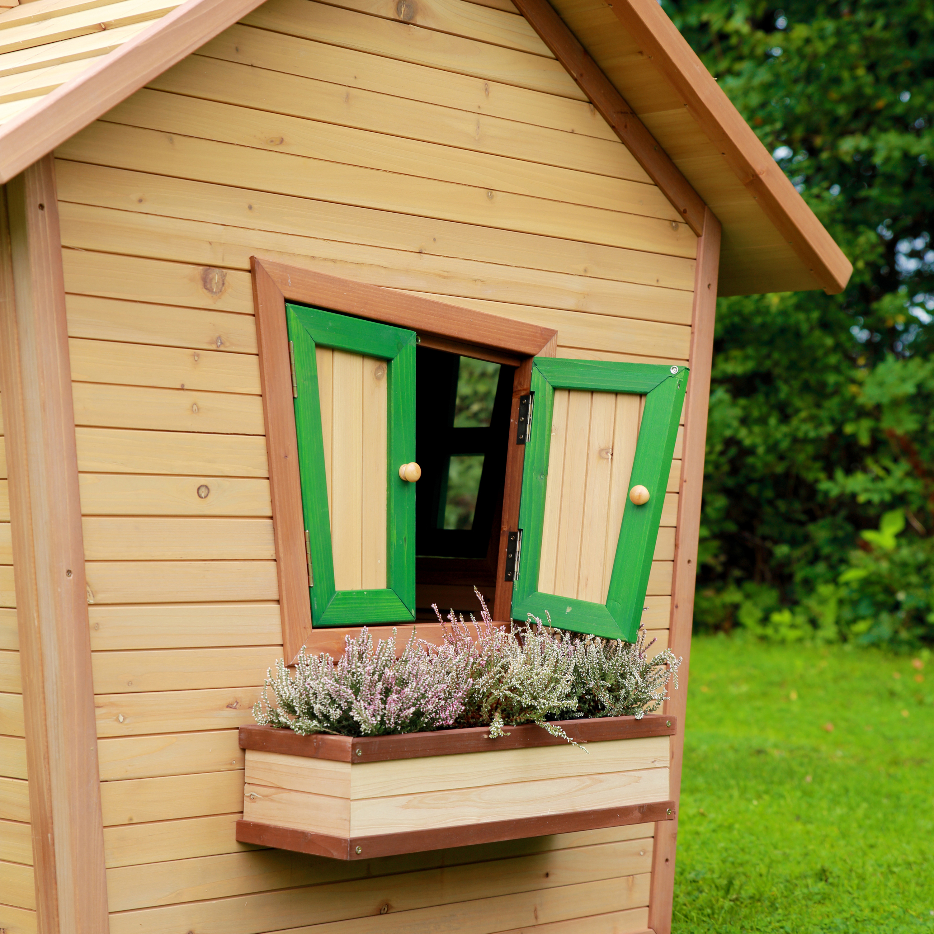 Alice Speelhuis is gemaakt van FSC 100% Hemlock hout en heeft een dak van FSC 100% Cipressen hout welke beide afkomstig zijn van duurzaam beheerde bossen. Hemlock en Cipressen hout splinteren niet en zijn van nature bestand tegen weersinvloeden zoals regen en dus resistent tegen houtrot. Het hout is behandeld met een watergedragen beits en is daardoor vrijwel onderhoudsvrij. Deze beits op natuurlijke basis is niet schadelijk voor het milieu en veilig voor kinderen (zonder chemicaliën). Met een garantietermijn van 10 jaar kunnen je kinderen en jij jarenlang onbezorgd genieten.