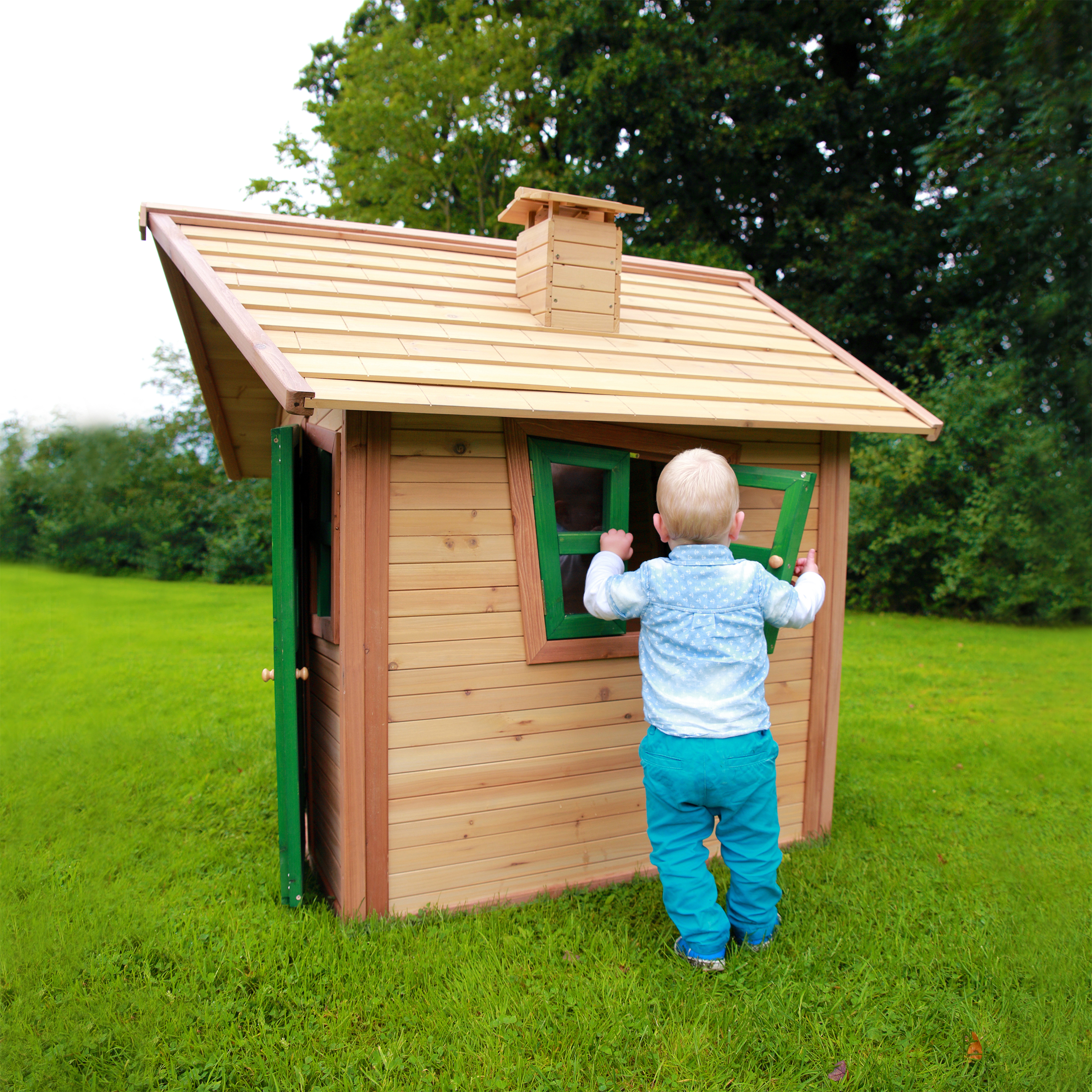 Kinderen kunnen gezellig in de tuin spelen in hun eigen AXI Alice Speelhuis Bruin/groen. Alice is een veelzijdig houten speelhuis uit de unieke Crooked serie van AXI. De bruin/groene kleuren zijn herkenbaar als de klassieke AXI producten welke al jaren enorm succesvol zijn voor jong en oud. Alle speelhuisjes van het Crooked ontwerp hebben een schoorsteen op het dak en schuine ramen. De schuine deur heeft een klein raampje zodat kinderen kunnen zien wie er voor de deur staat zonder deze te openen. Bij mooi weer kunnen de kinderen de ramen eenvoudig openen en genieten van alles wat er buiten gebeurt. Laat ze snel de ramen dicht doen als het gaat regenen, zo zitten ze beschut en kunnen ze heerlijk doorspelen!