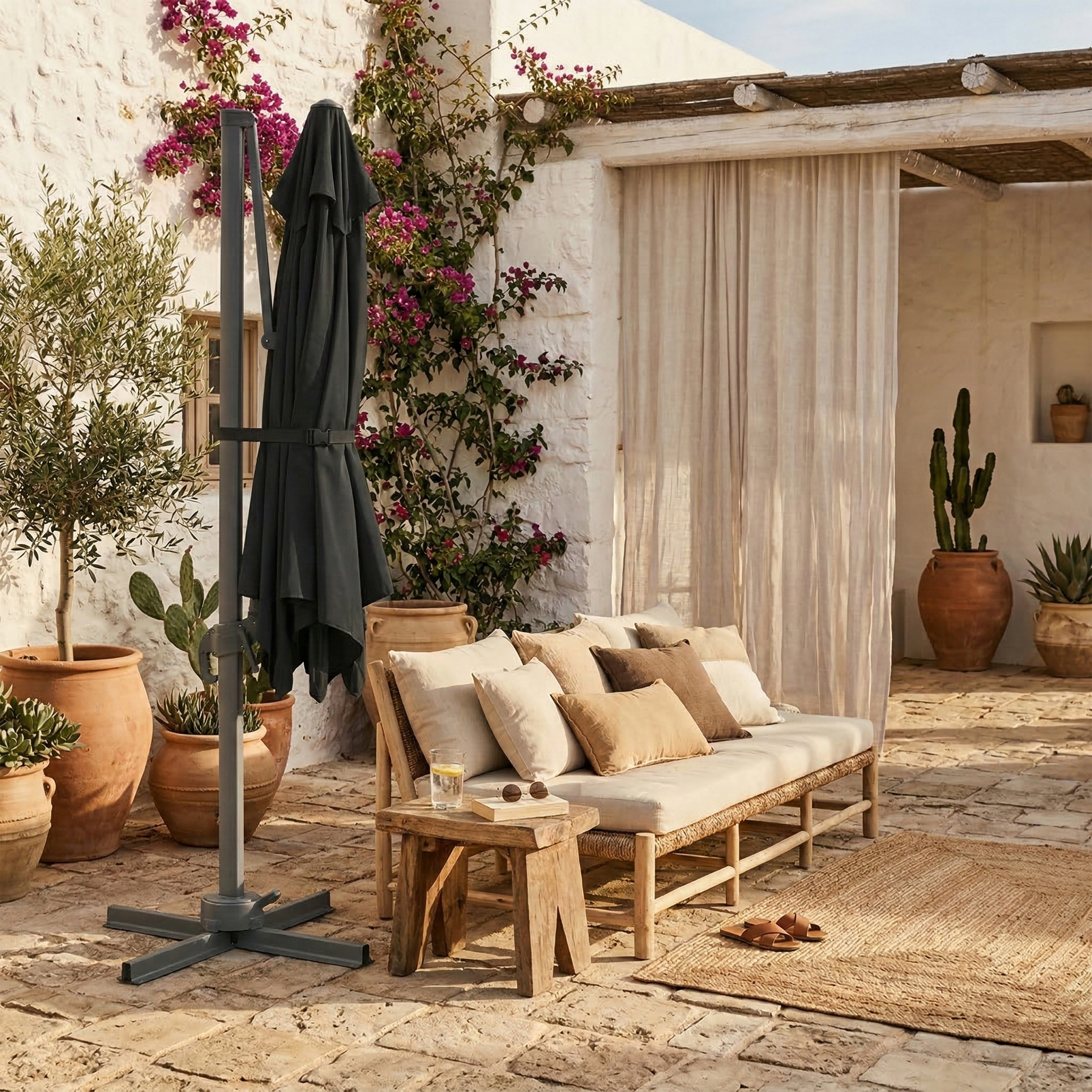 - Parasol van 300 x 300 cm voor een groot schaduwoppervlak.