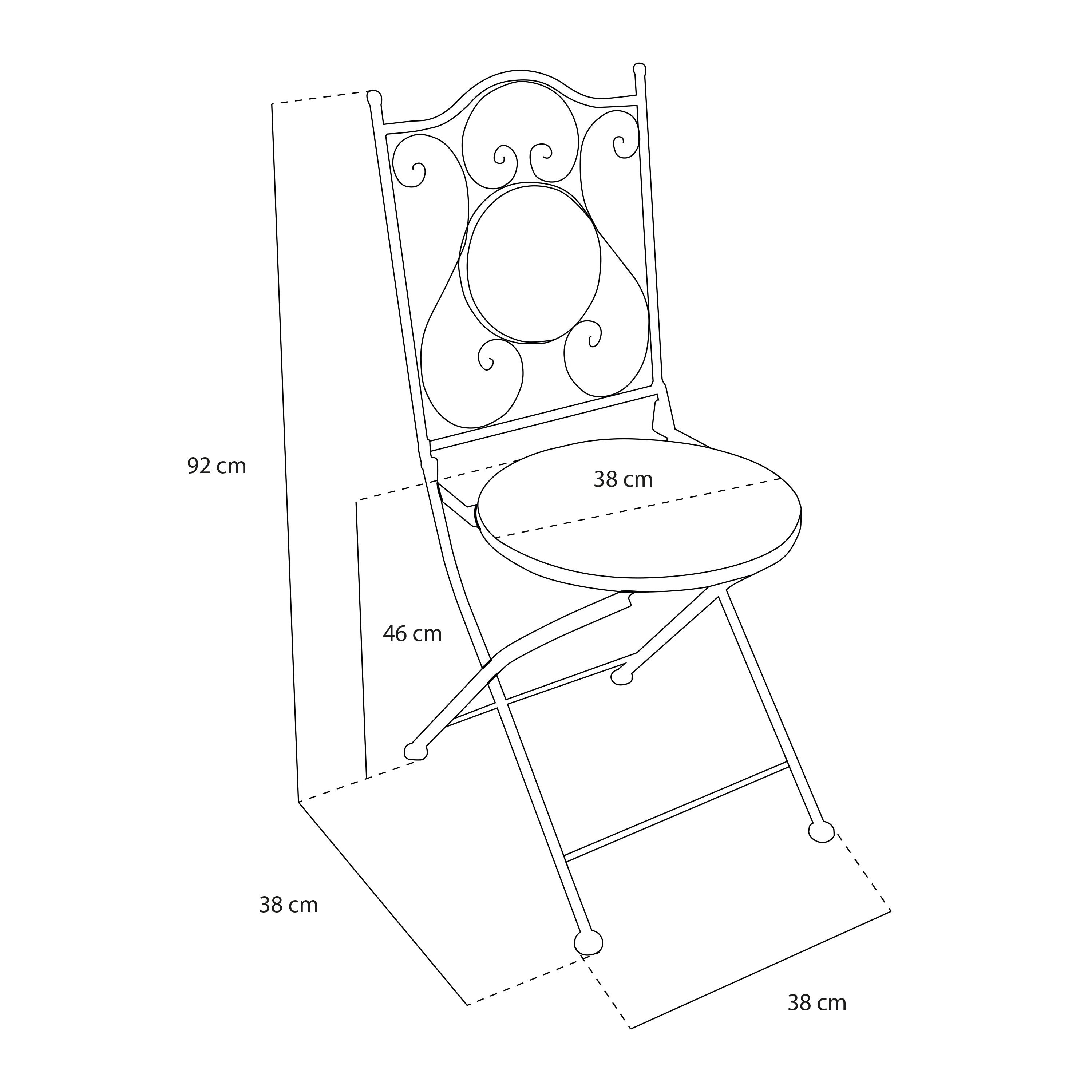 Stoel (LxBxH): 38,5 x 45 x 90 cm.