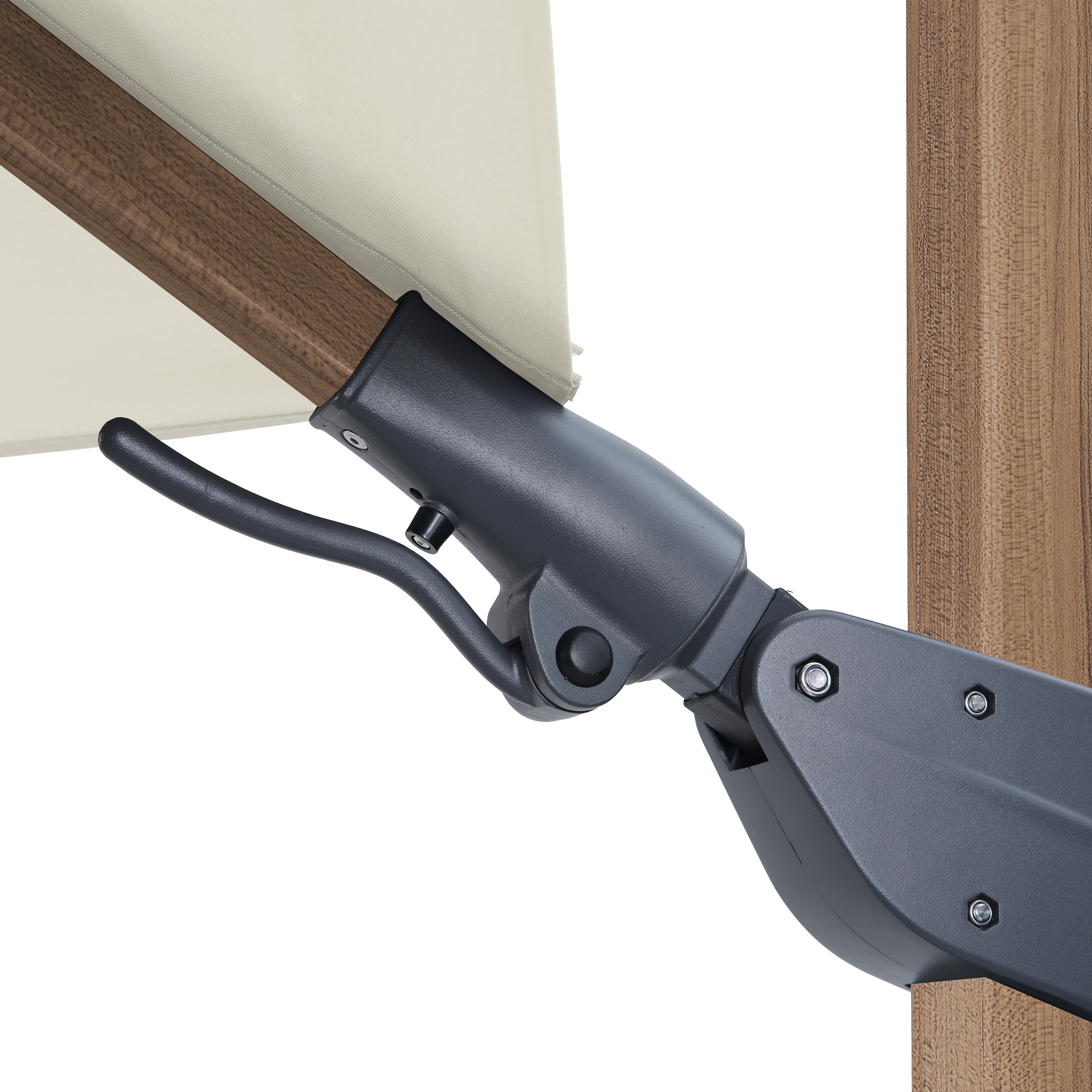 - Pas eenvoudig de achterwaartse en zijwaartse hoek van de parasol aan met het handige kantelmechanisme.