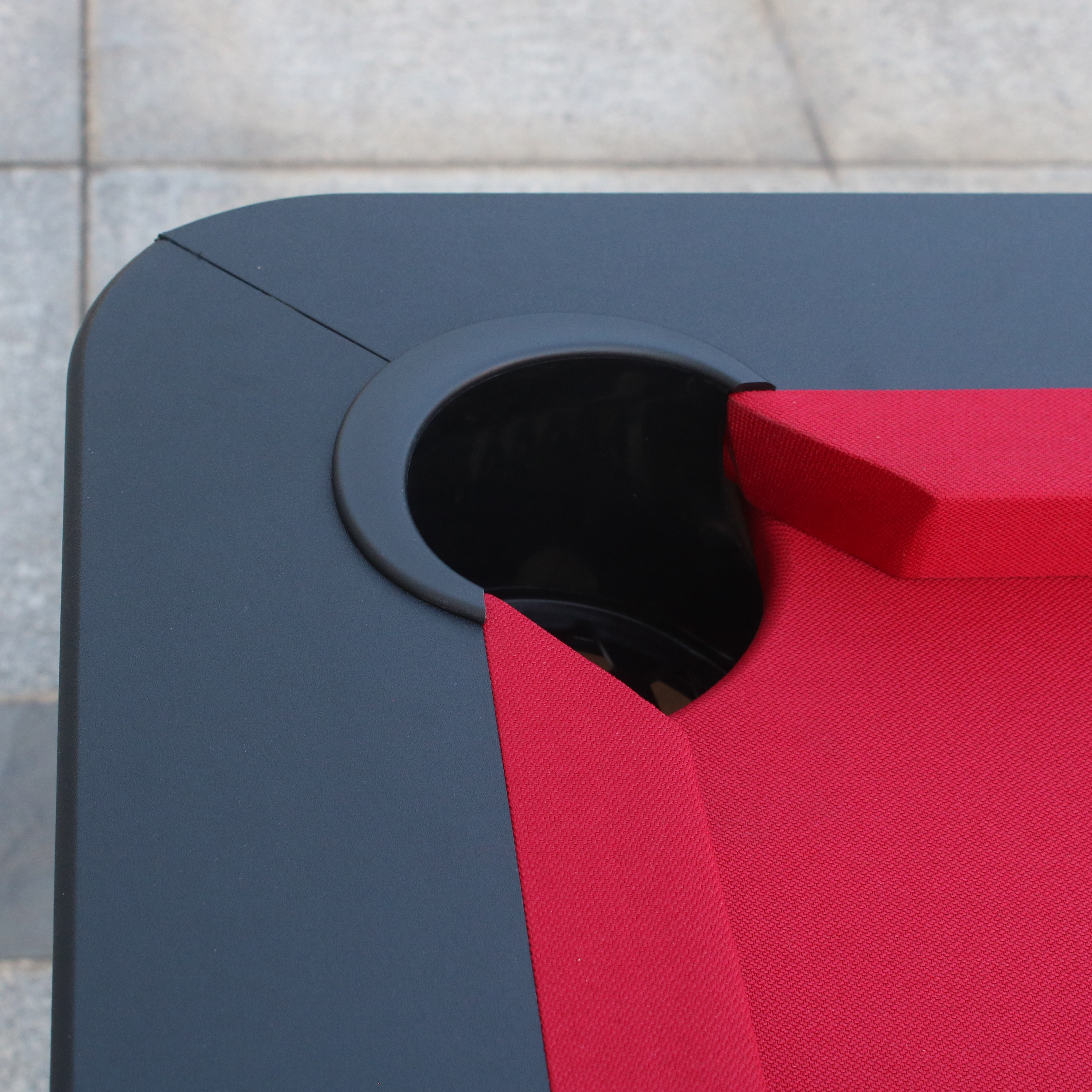 Het speelveld heeft een rode kleur en is maar liefst (LxBxH) 186 x 93 x 3,6 cm groot. Het veld is 18mm dik en is voorzien van een harde kunststof toplaag welke is overtrokken met een doek van 100% nylon zodat de ballen goed rollen.