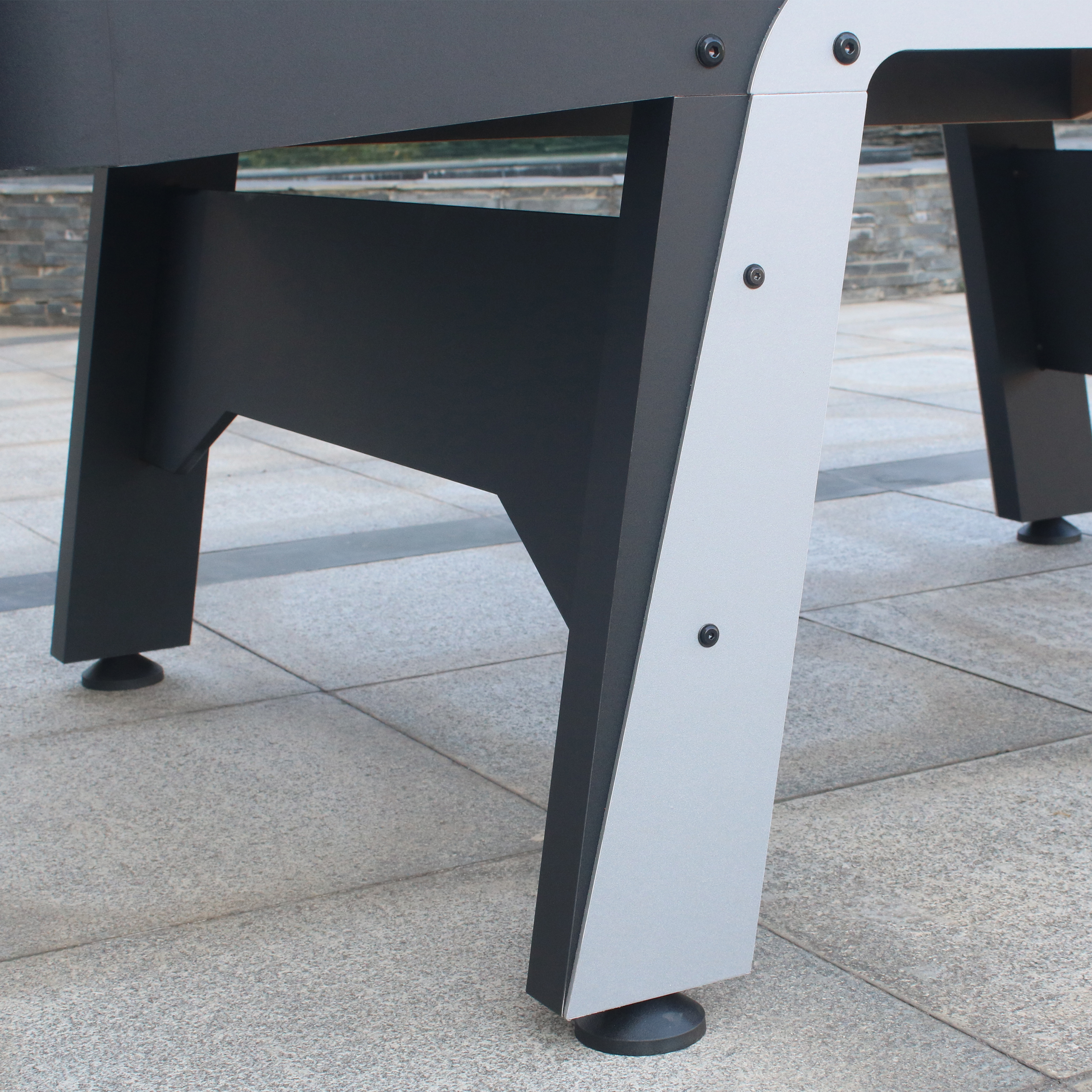 - Geïntegreerde verstelbare poten (leg levelers) zorgen ervoor dat de tafel kan worden versteld voor een stabiele plaatsing van de tafel.