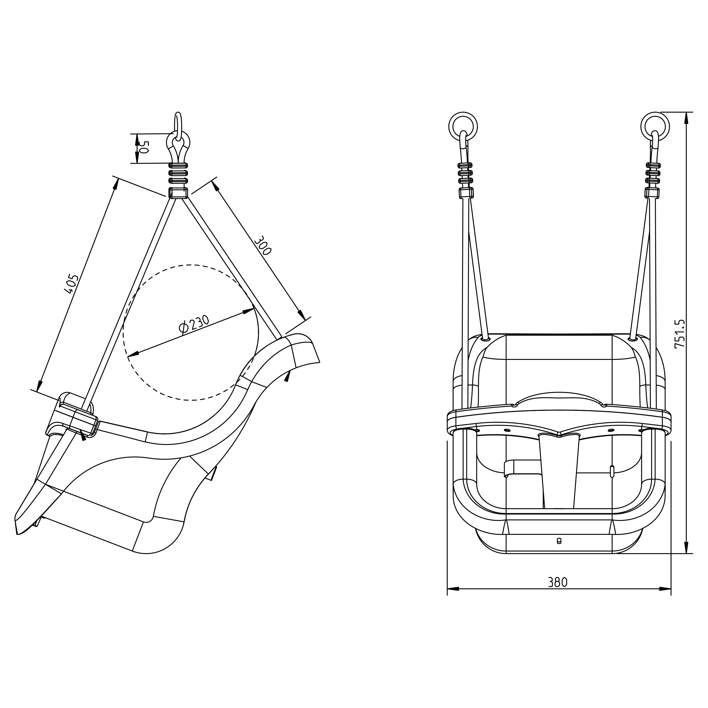 De baby schommel set bevat een luxe babyschommelzitje met een hoge rug voor extra comfort. T-bar met 3 steunpunten en een extra veiligheidsriem voor maximale veiligheid. De ringen en stelachten zijn vervaardigd in gegalvaniseerd staal. De lassen op de touwen bestaan uit PP. Het zitje is geschikt voor kinderen van 9 tot en met 36 maanden oud.