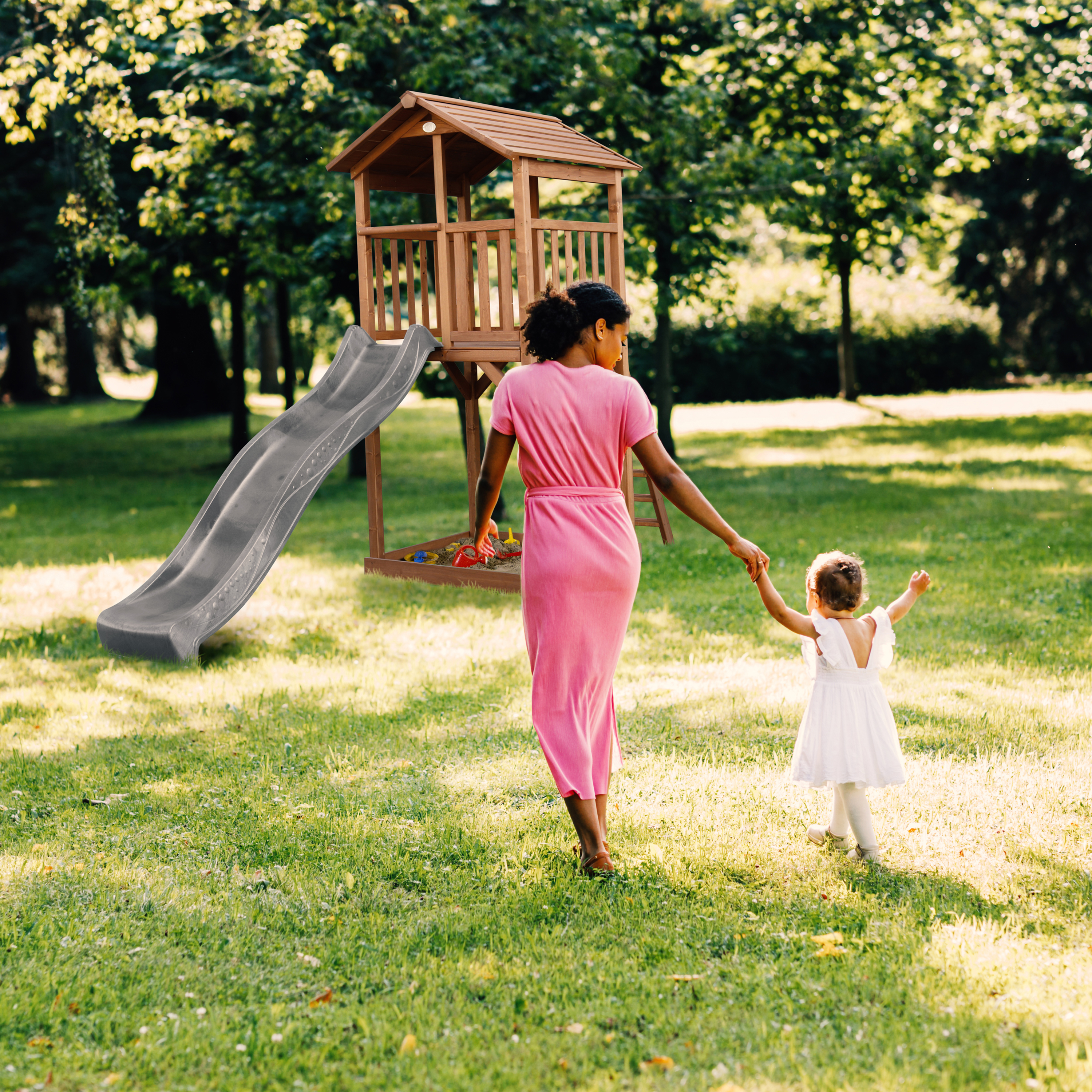 Productinformatie "Beach Tower Speeltoren Bruin - Grijze Glijbaan"