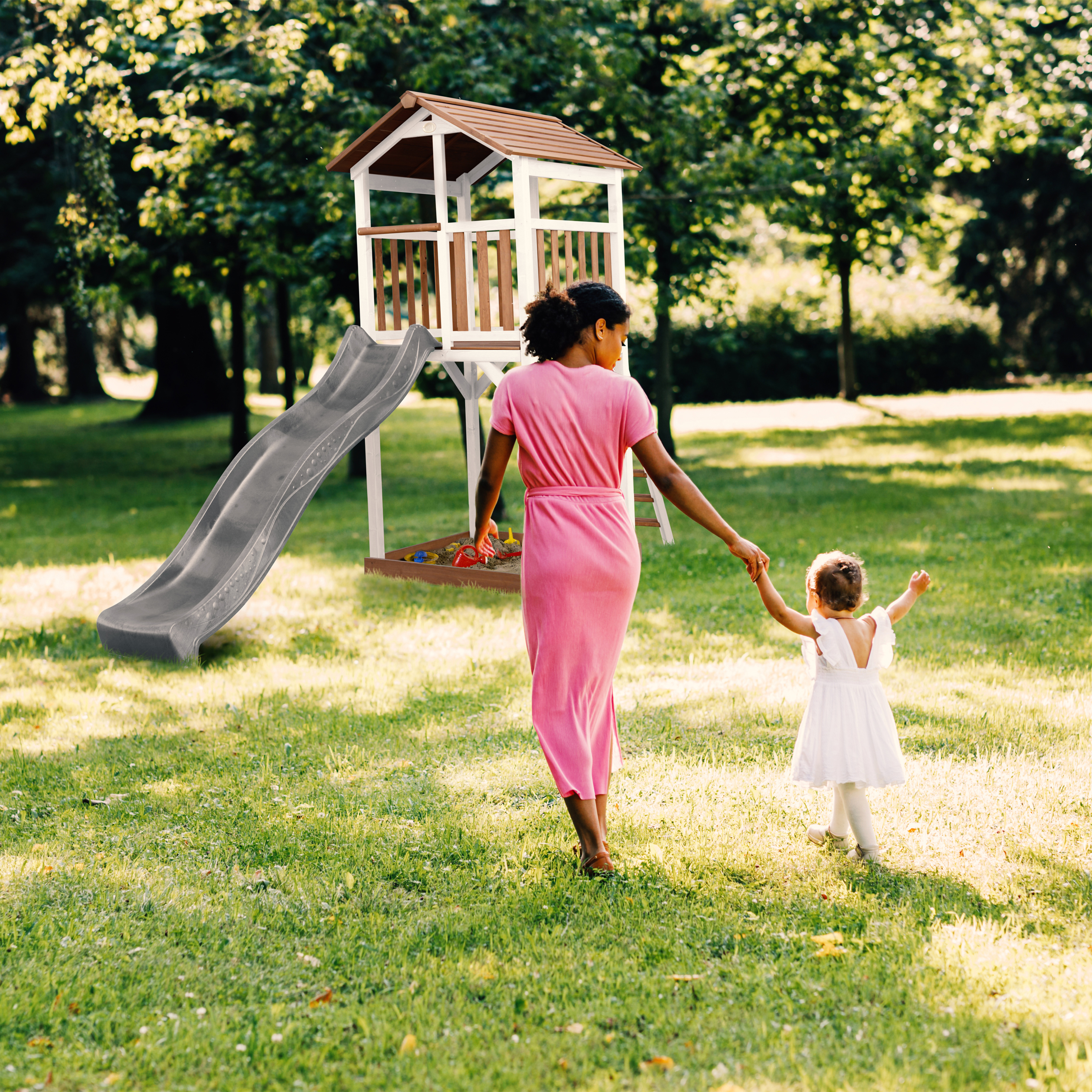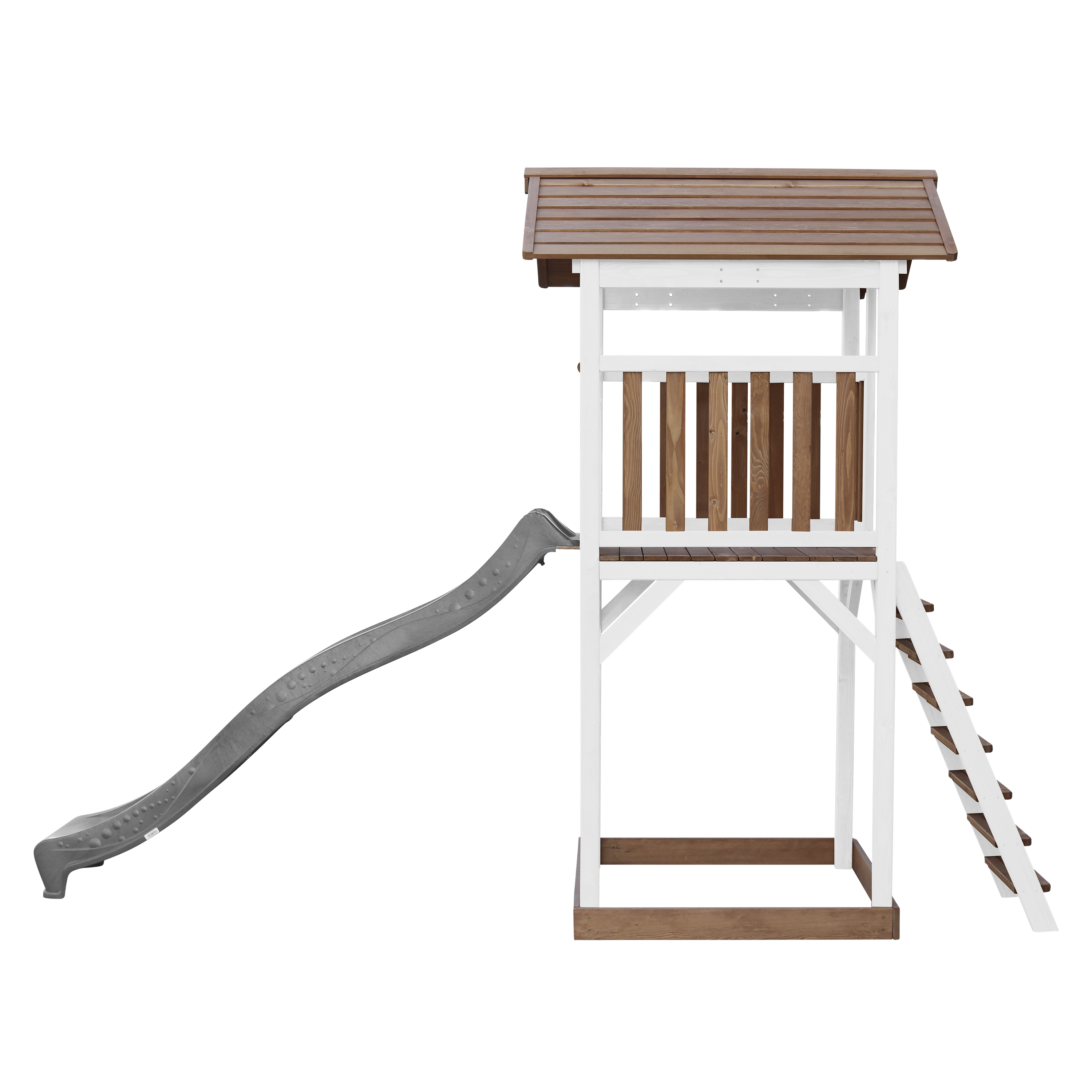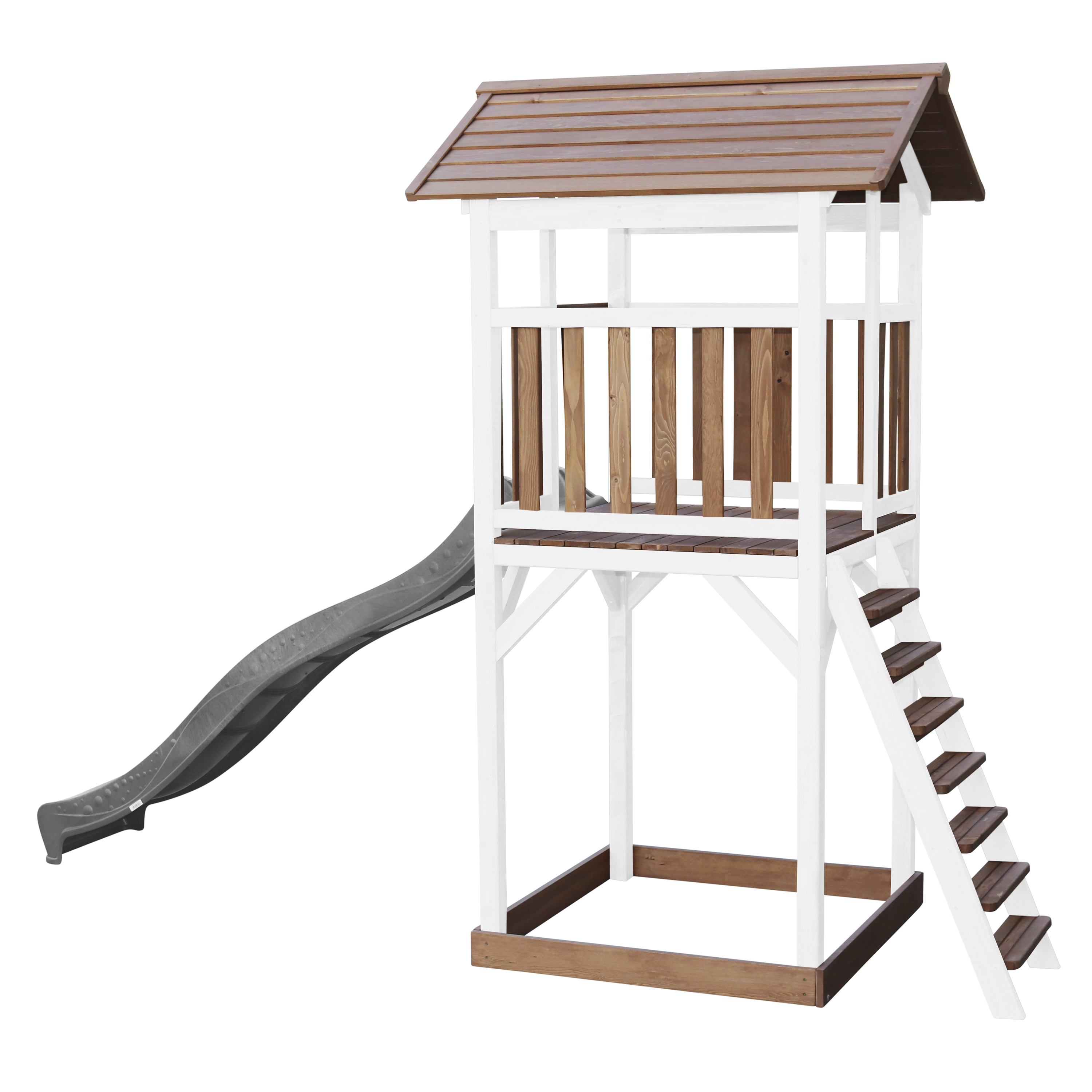 Productinformatie "Beach Tower Speeltoren Bruin/wit - Grijze Glijbaan"