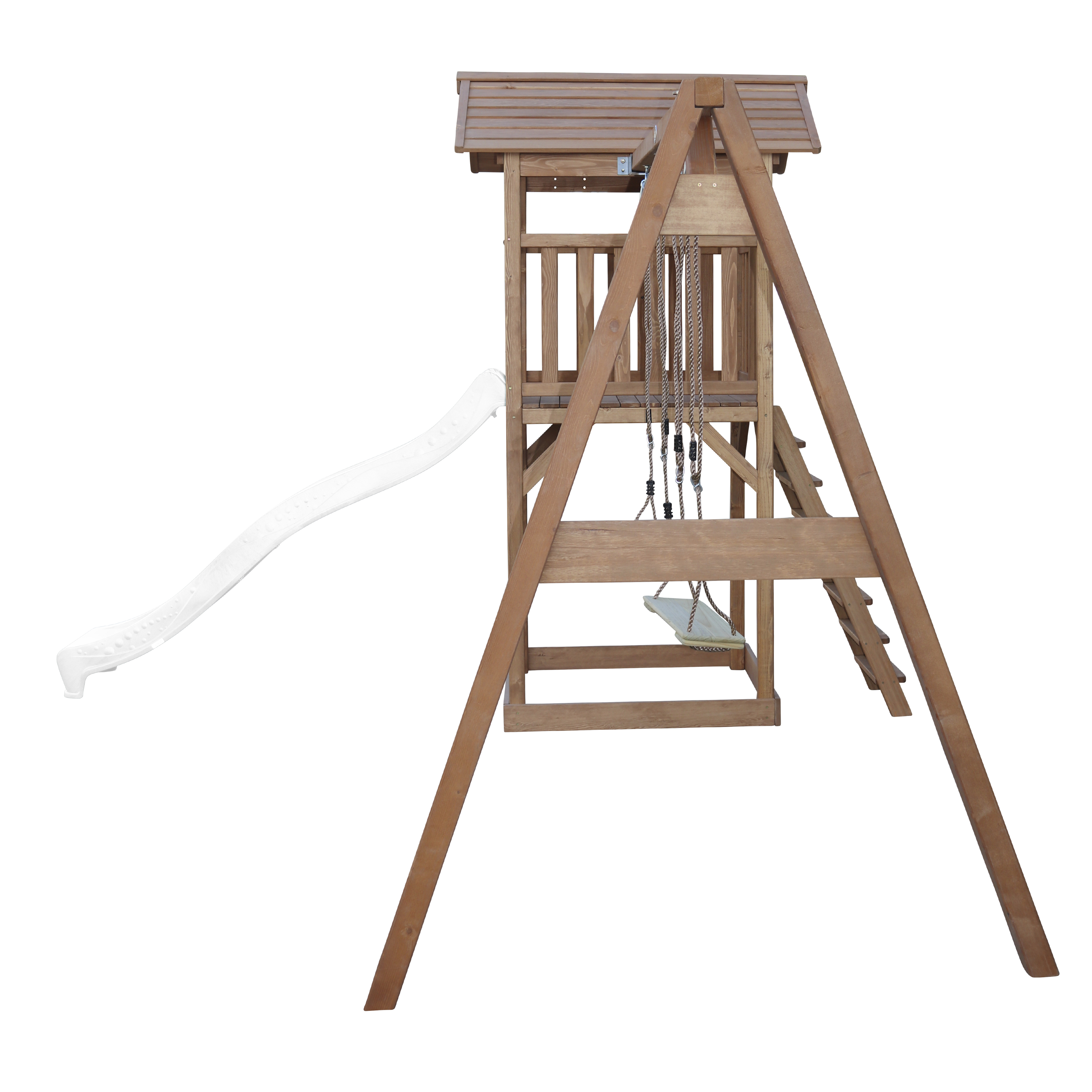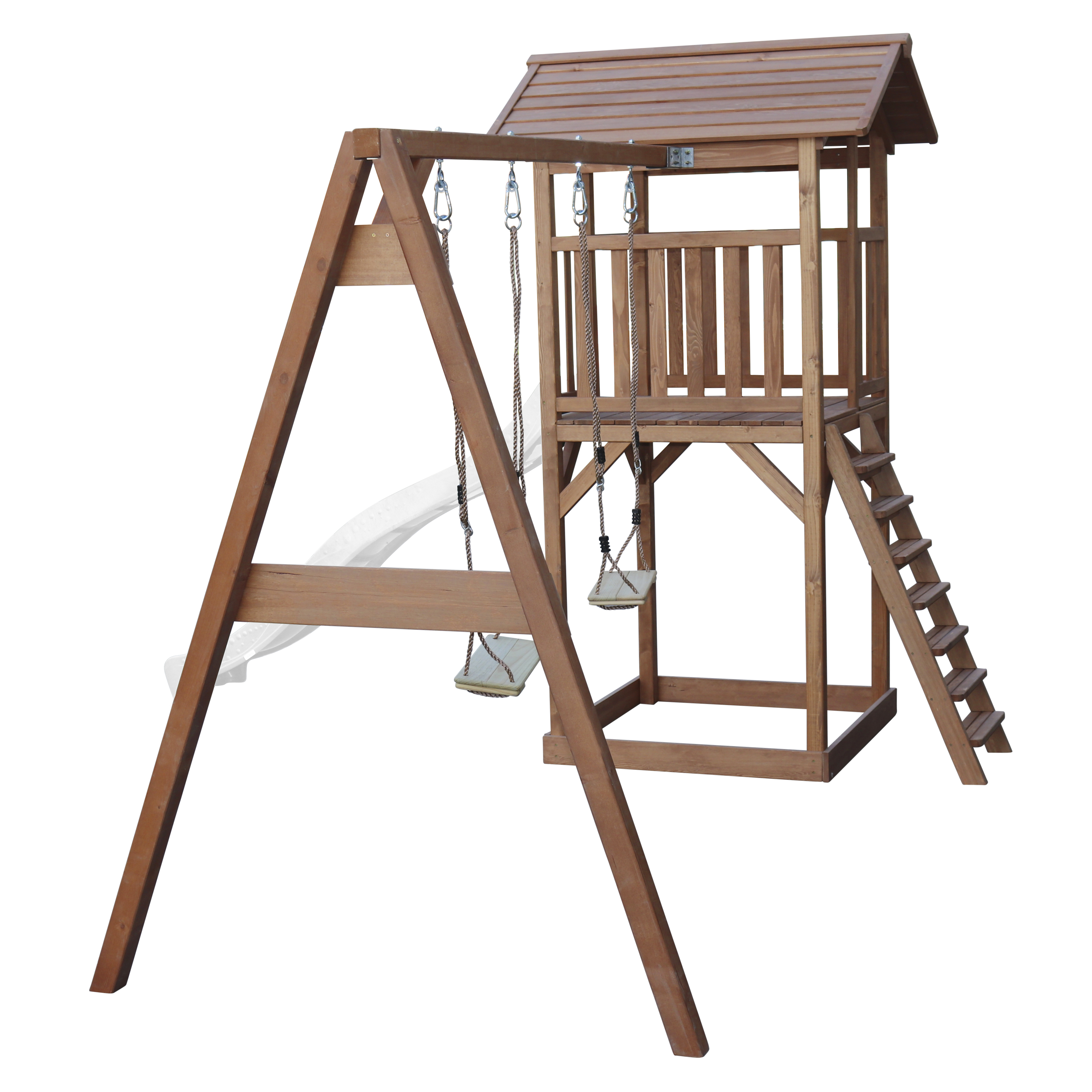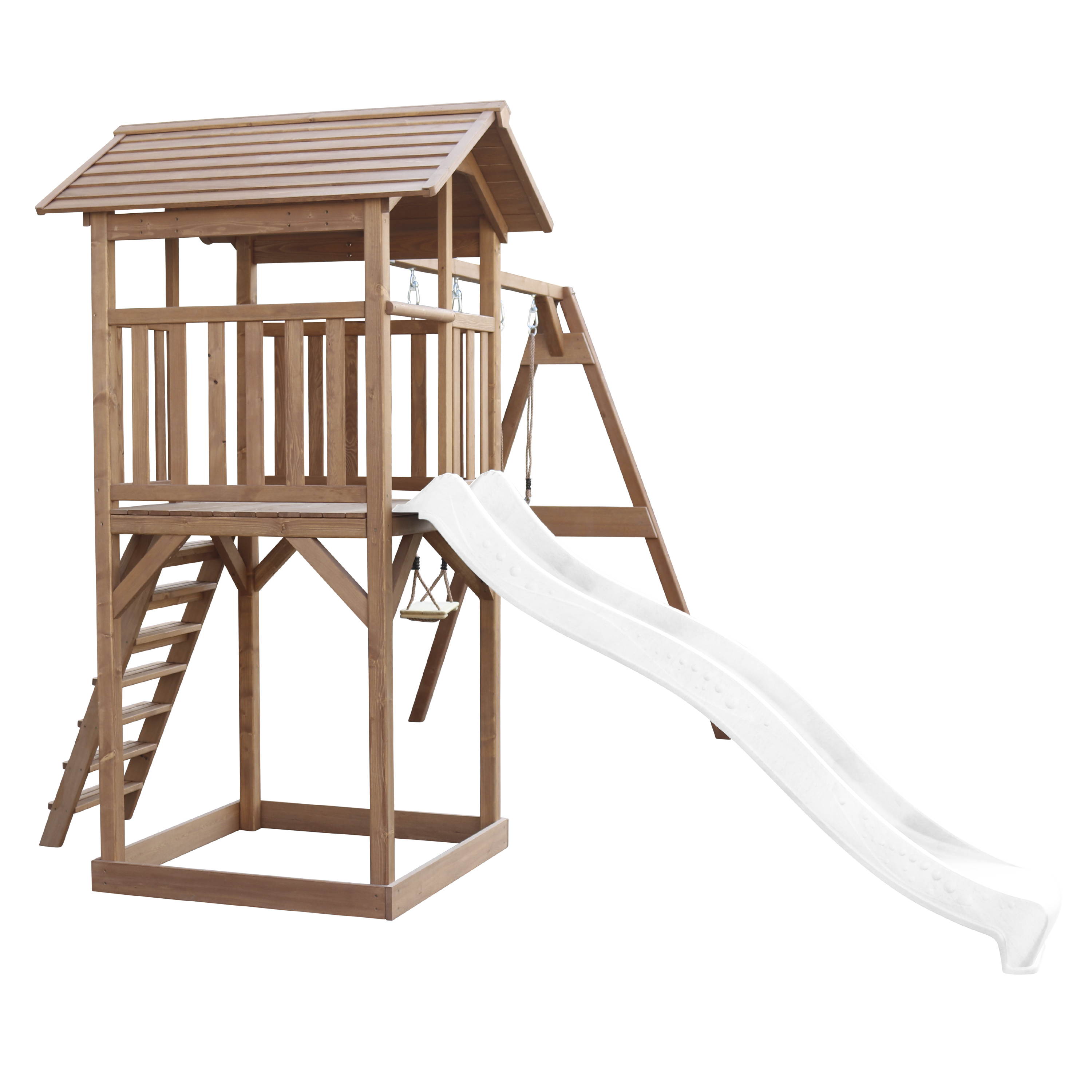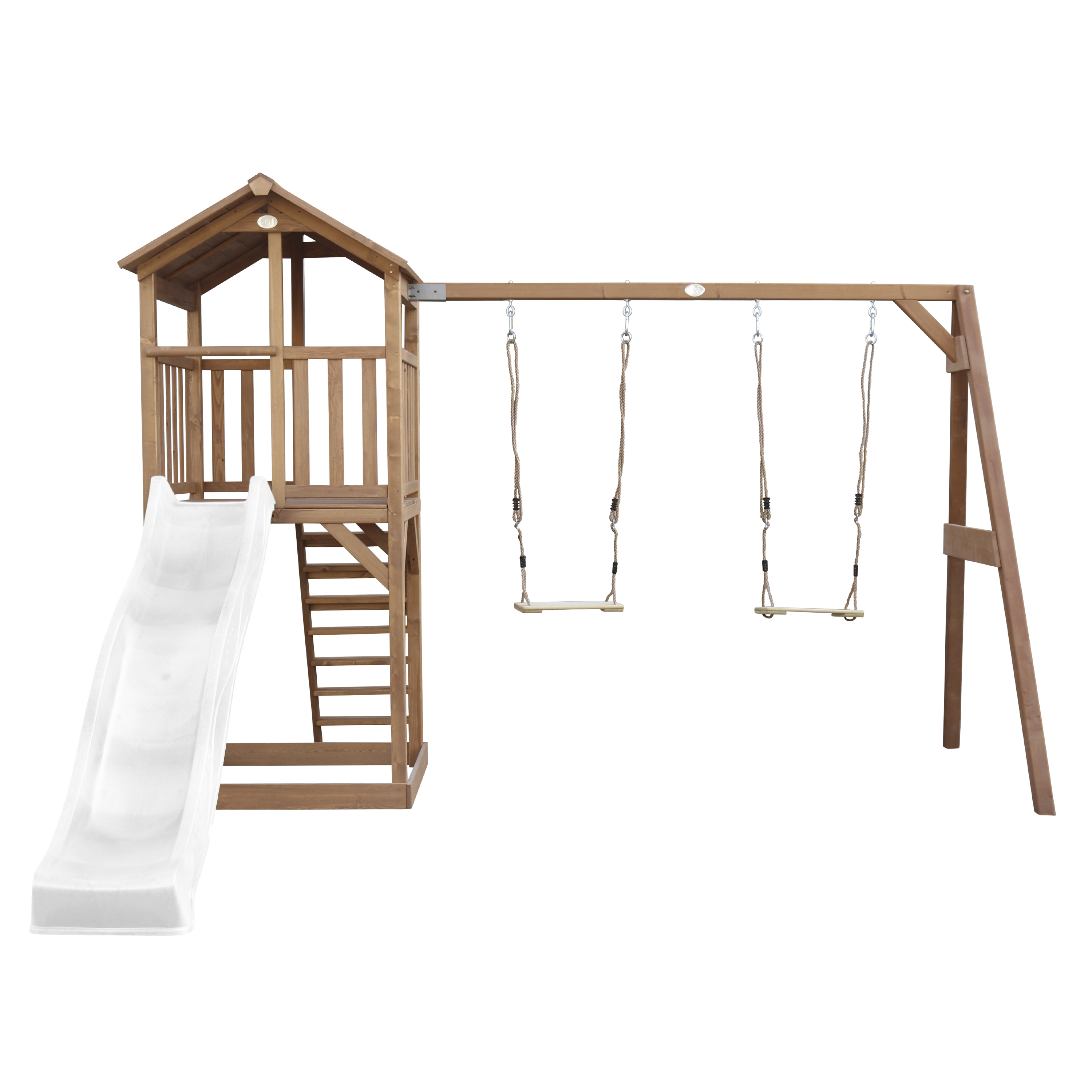 Productinformatie "Beach Tower Speeltoren met Dubbele Schommel Bruin - Witte Gl"