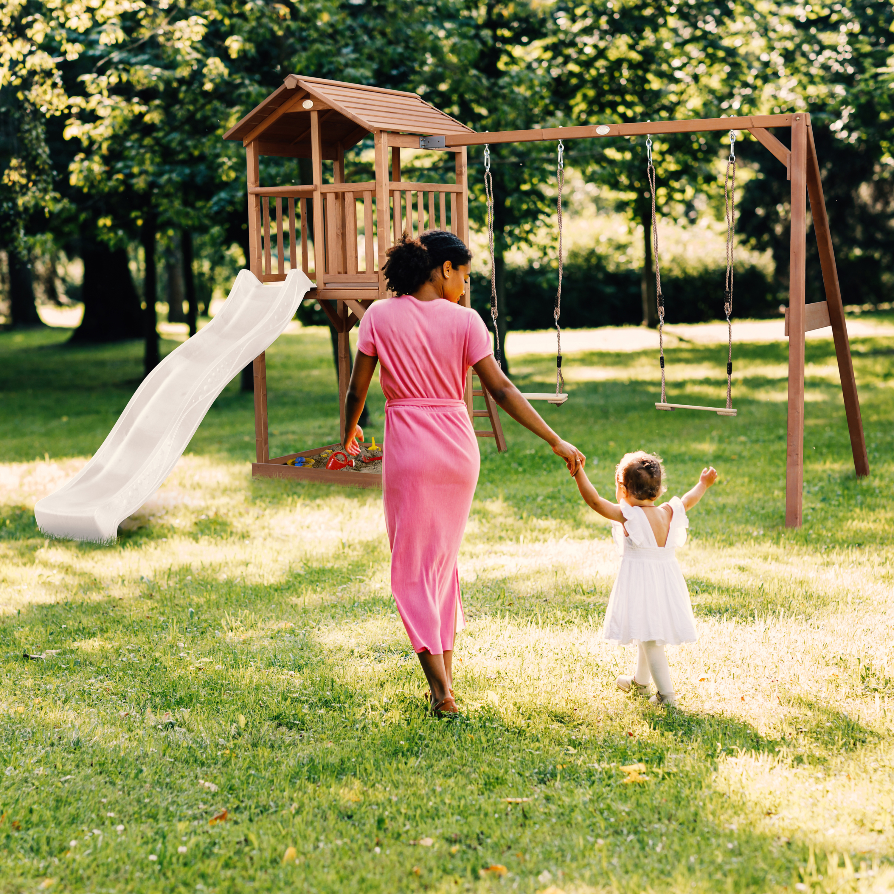 De AXI “Beach” serie bestaat uit diverse soorten torens met vele mogelijkheden. Zo zijn er speeltorens met of zonder klimrek en schommel(s). Ook zijn de speeltorens uit te breiden met diverse AXI accessoires zoals een krijtbord, brievenbus, verrekijker of bloembak.
