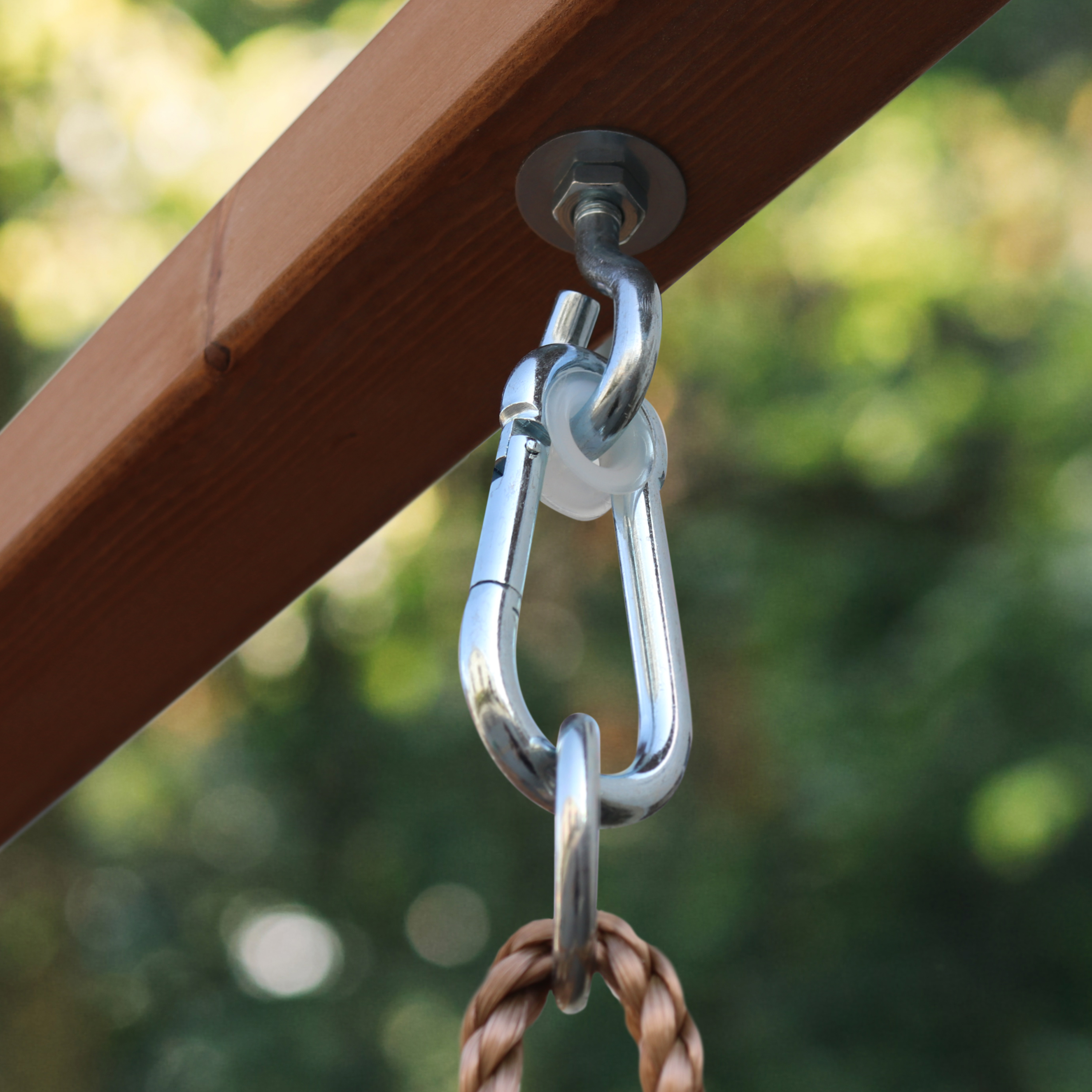 - Enkele schommel met één houten in hoogte verstelbare schommelzitje.