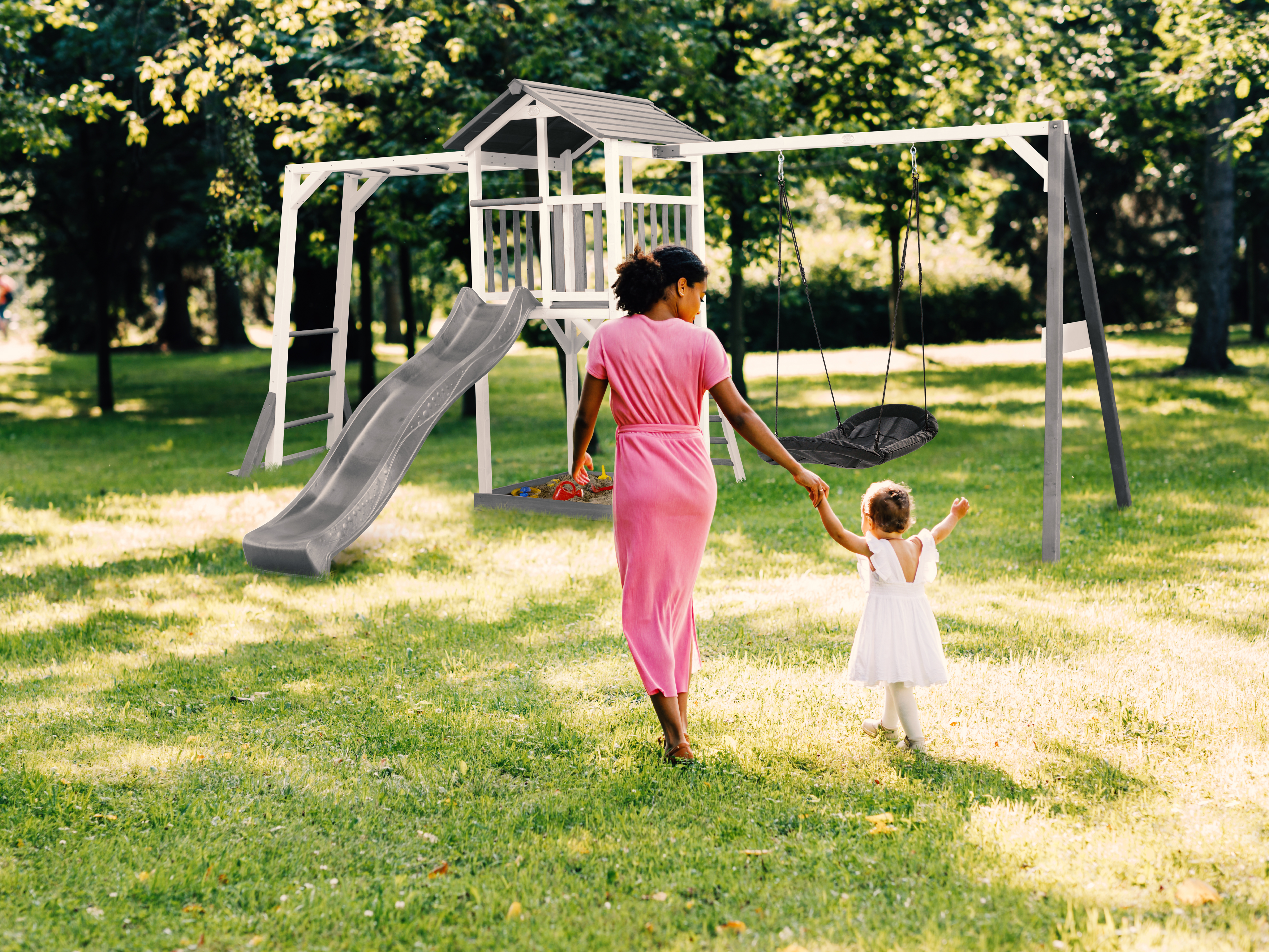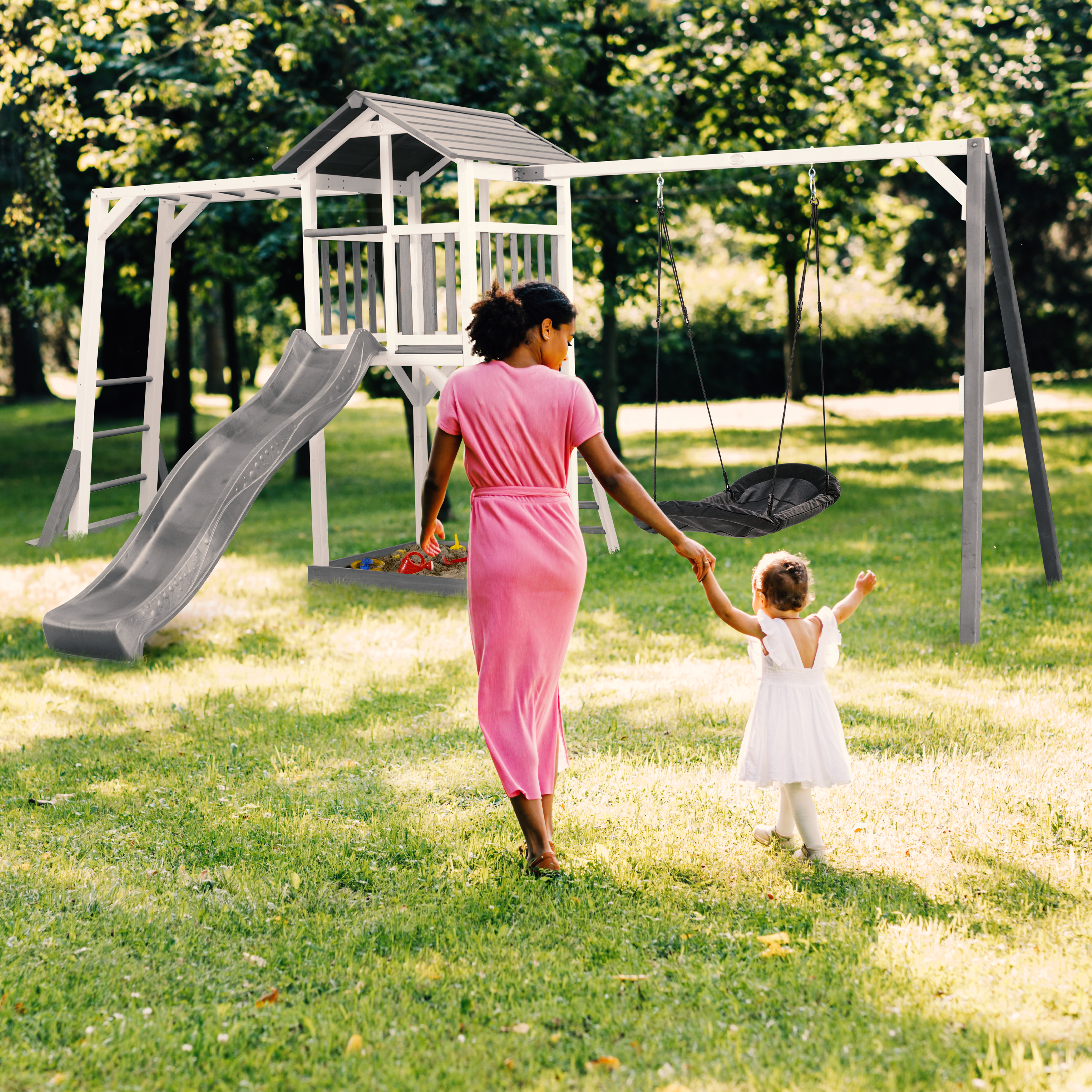 Beach Tower Speeltoren met Klimrek en Roxy Nestschommel Grij