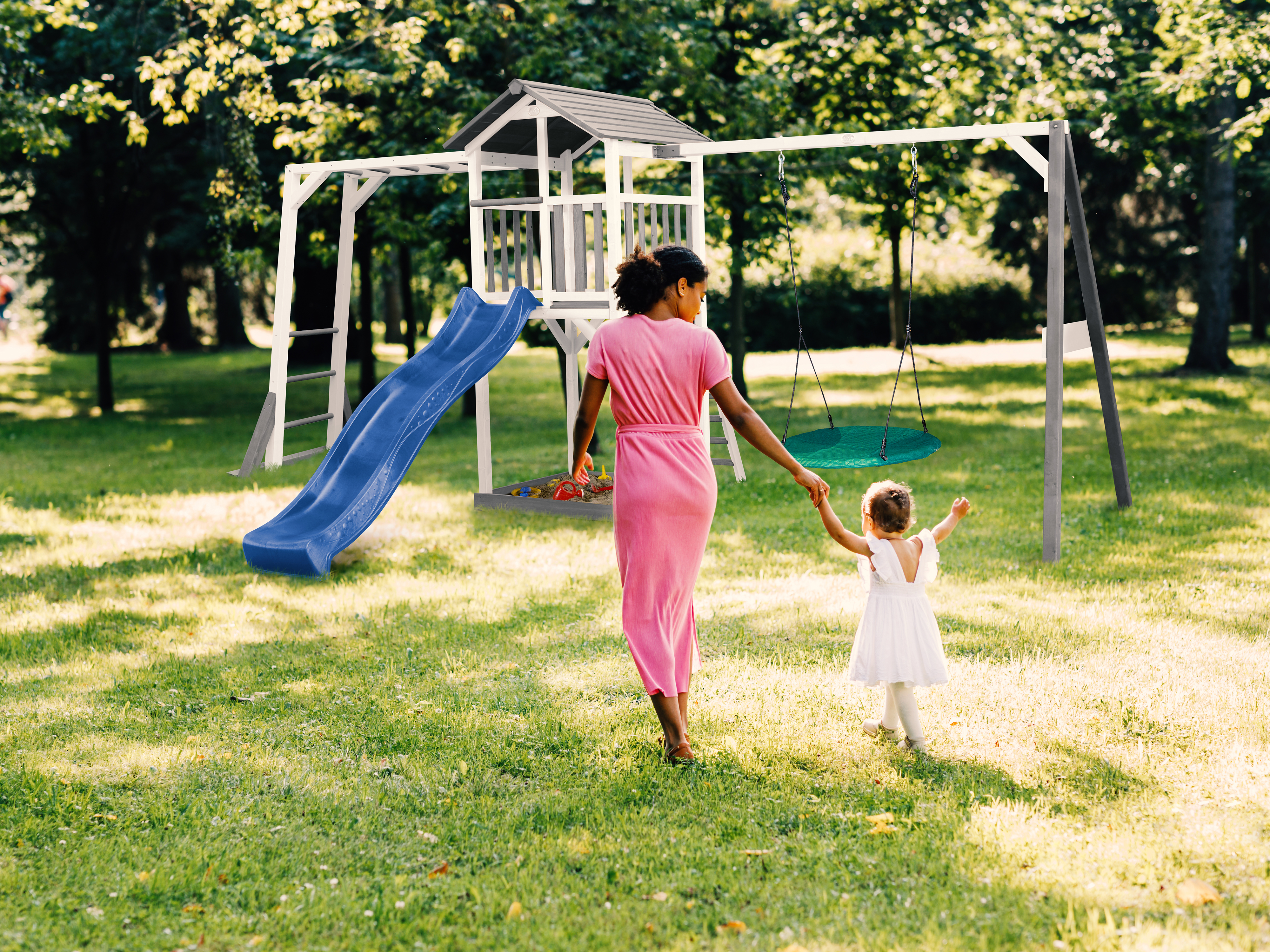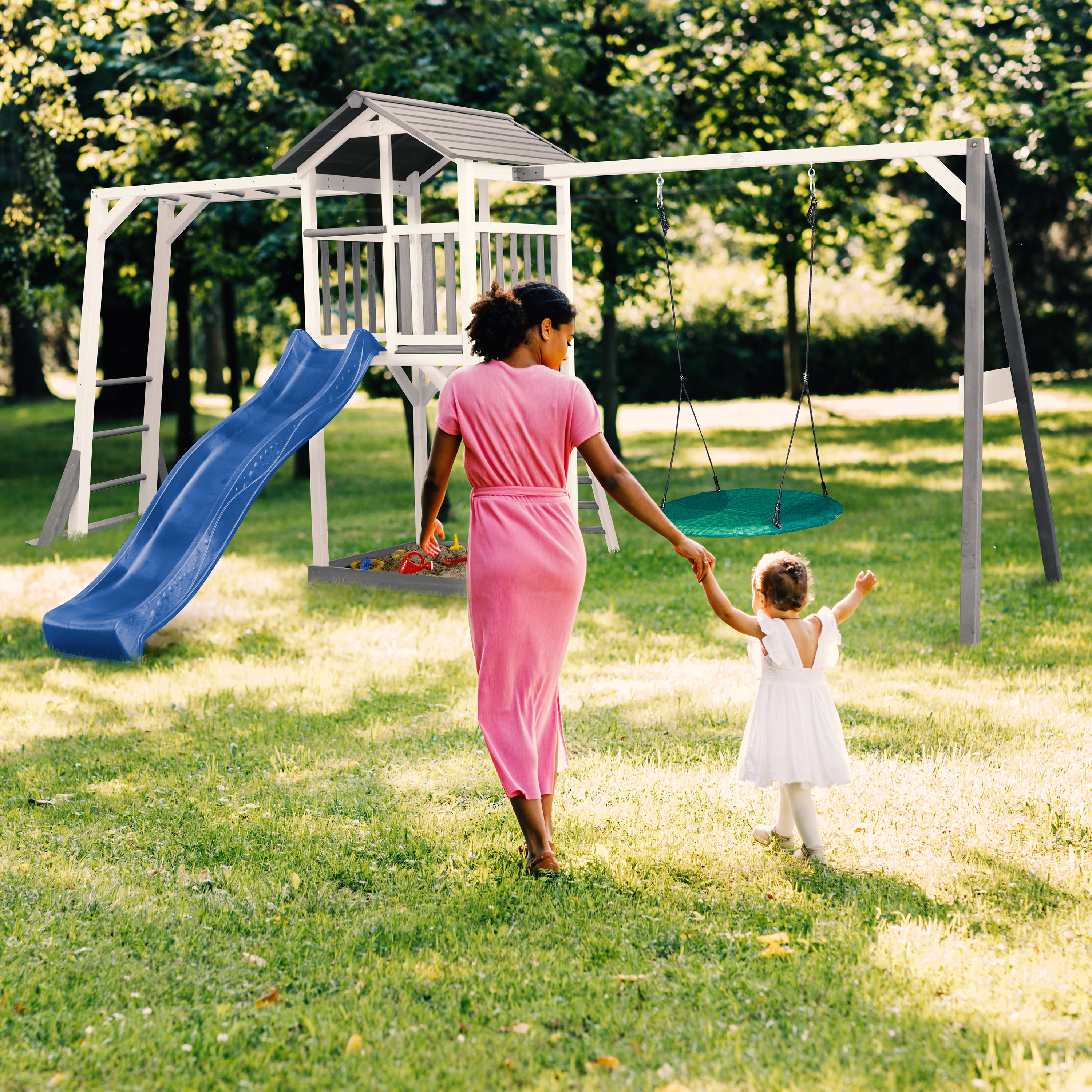 De AXI “Beach” serie bestaat uit diverse soorten torens met vele mogelijkheden. Zo zijn er speeltorens met of zonder klimrek en schommel(s). Ook zijn de speeltorens uit te breiden met diverse AXI accessoires zoals een krijtbord, brievenbus, verrekijker of bloembak.