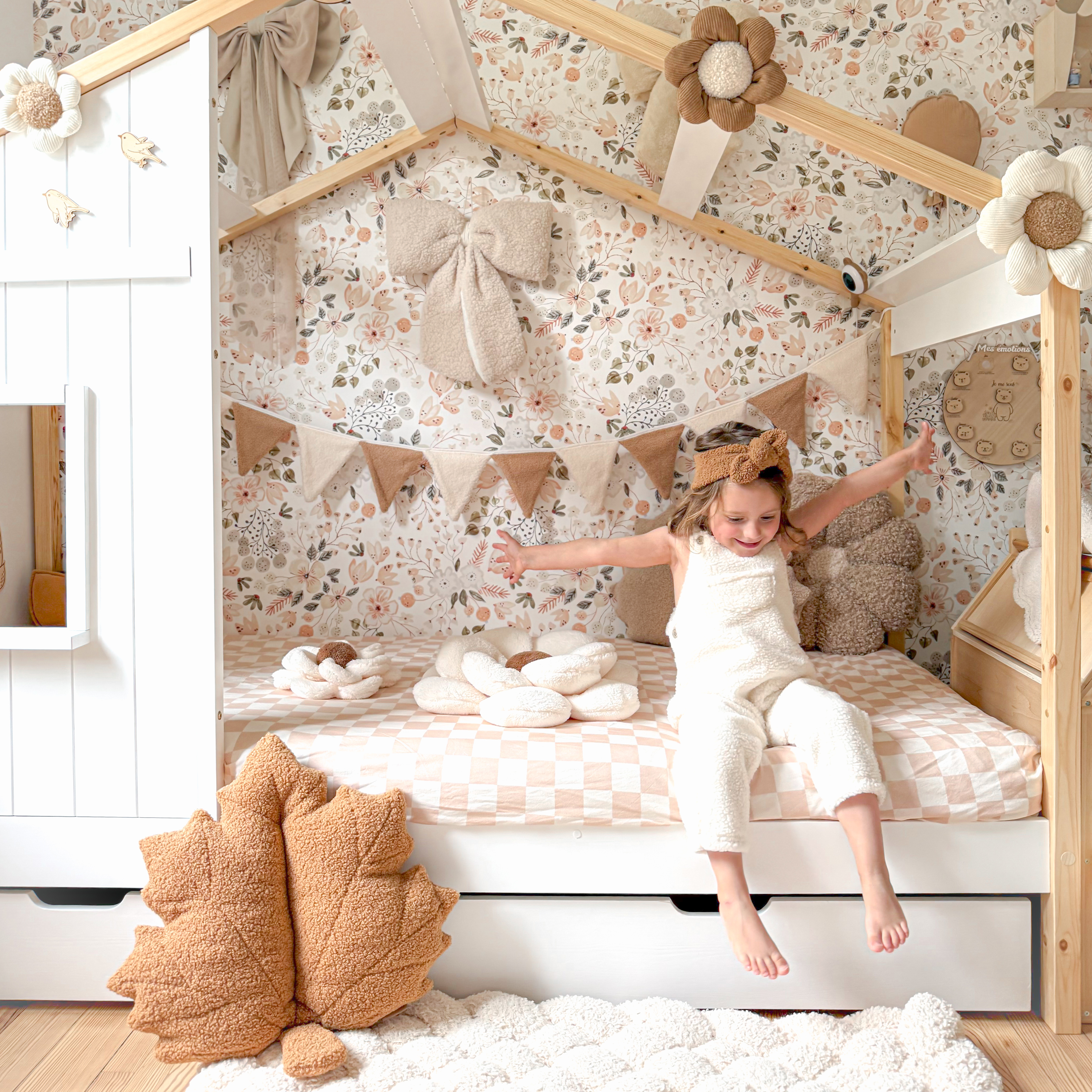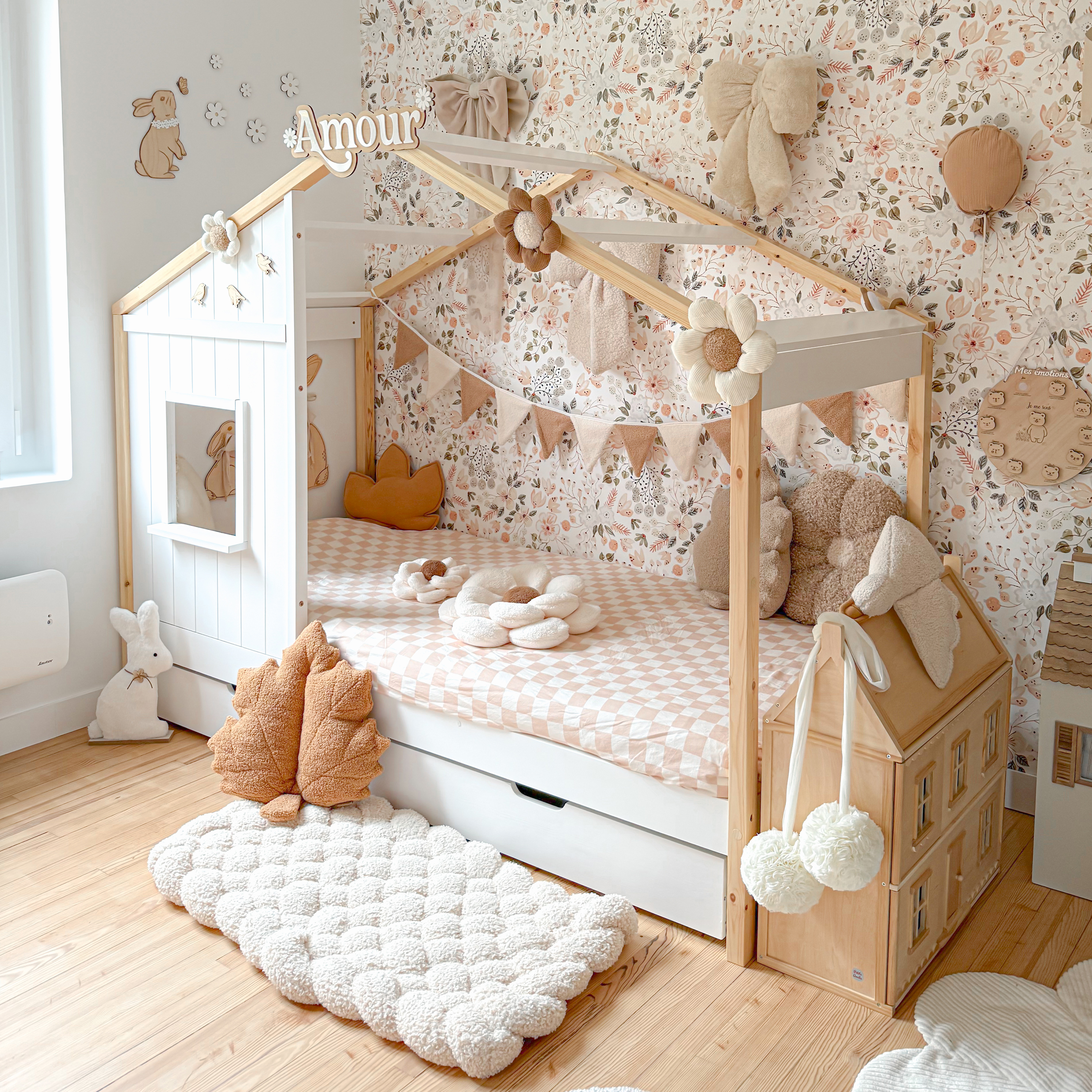 Met zijn neutrale en tijdloze design past het Sunny Beau huisbedje moeiteloos in elk interieur. Door te variëren met accessoires, verlichting en decoratie geef je het bed eenvoudig een persoonlijke touch die meegroeit met de smaak en leeftijd van je kindje.