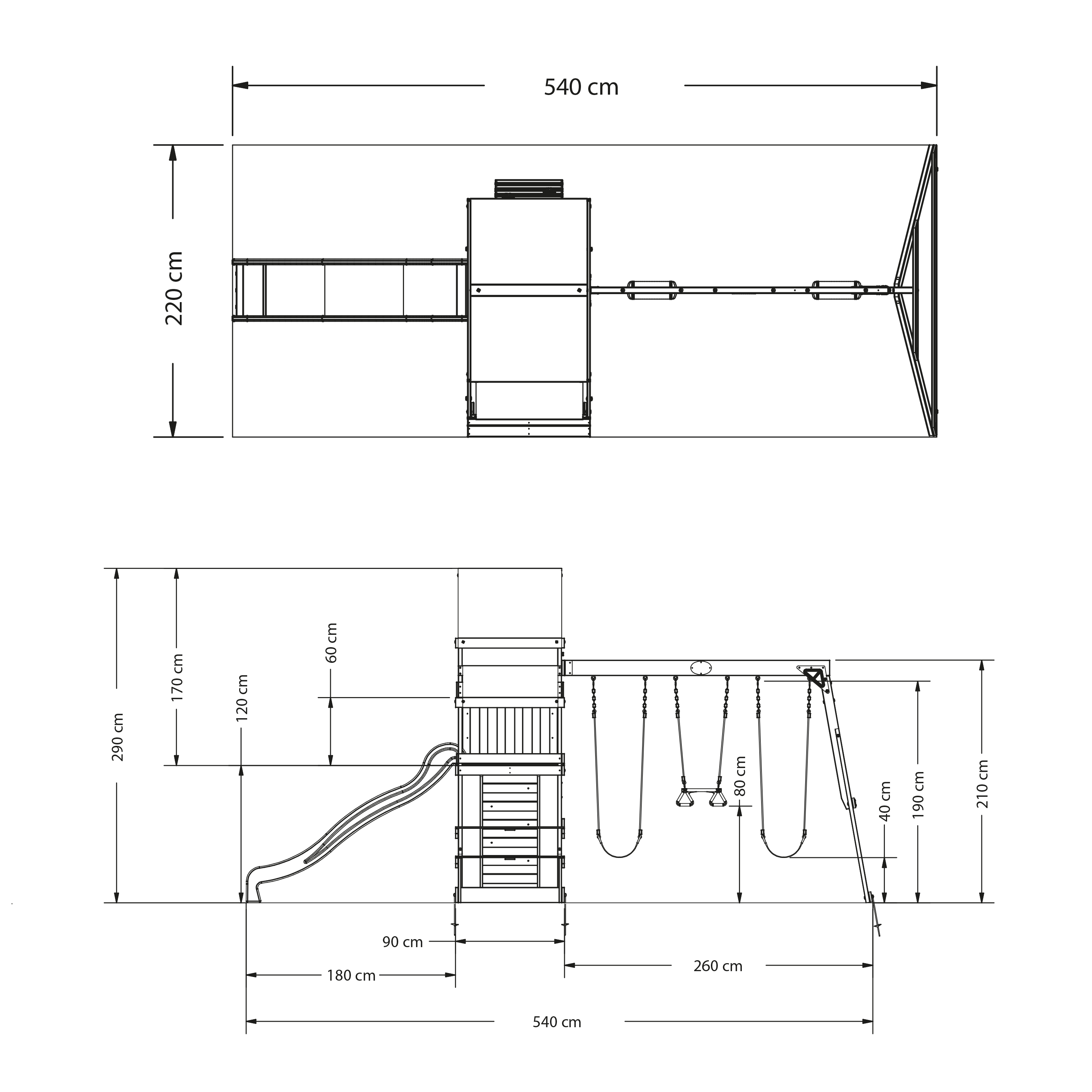 Speeltoren (LxBxH): 540 x 220 x 290 cm