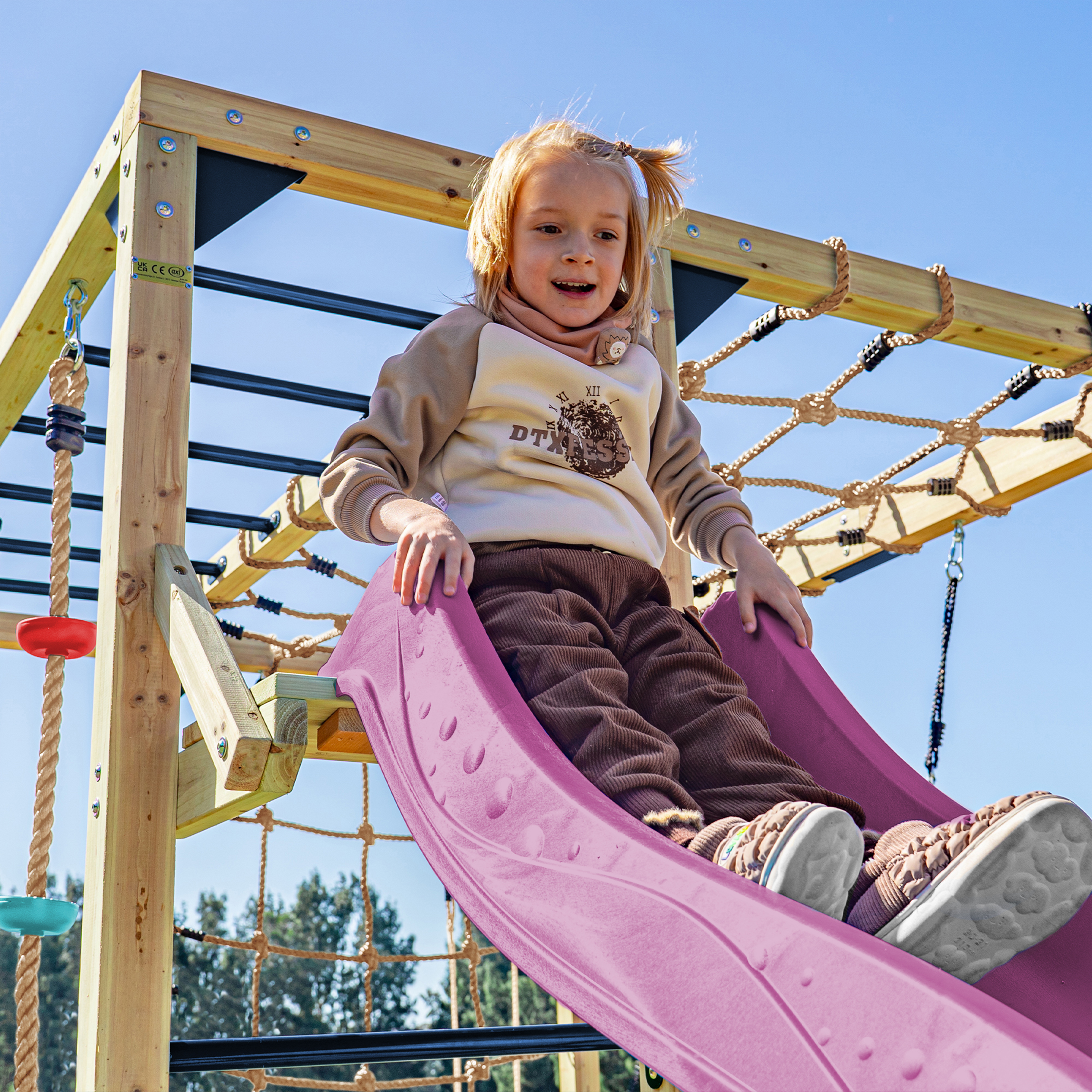De Speeltorens van AXI zijn voorzien van een CE keurmerk en zijn getest en geproduceerd volgens EN 71 veiligheidsnormen zodat veilig speelplezier gewaarborgd is.