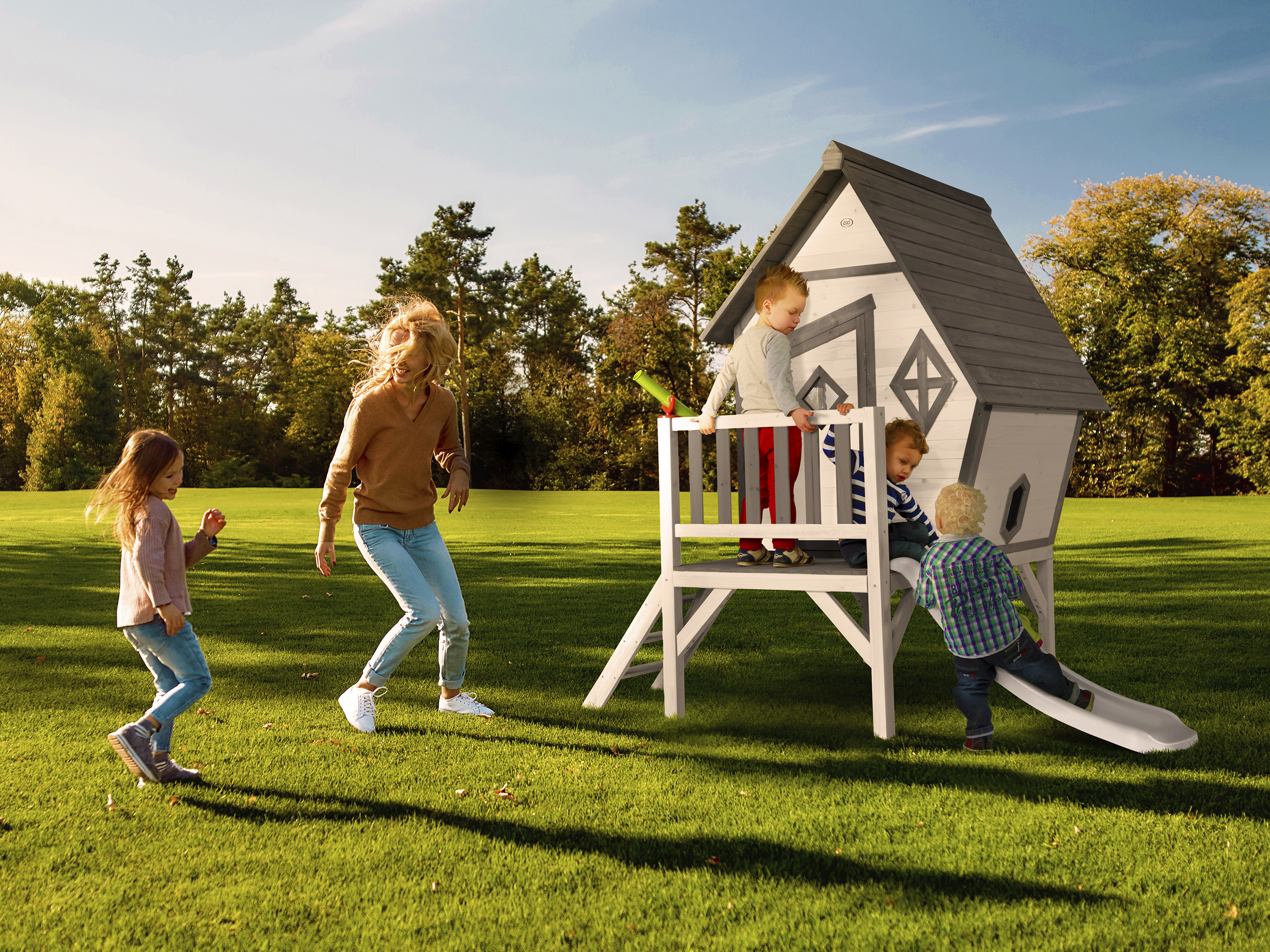 Cabin XL Speelhuis Grijs/wit - Witte Glijbaan