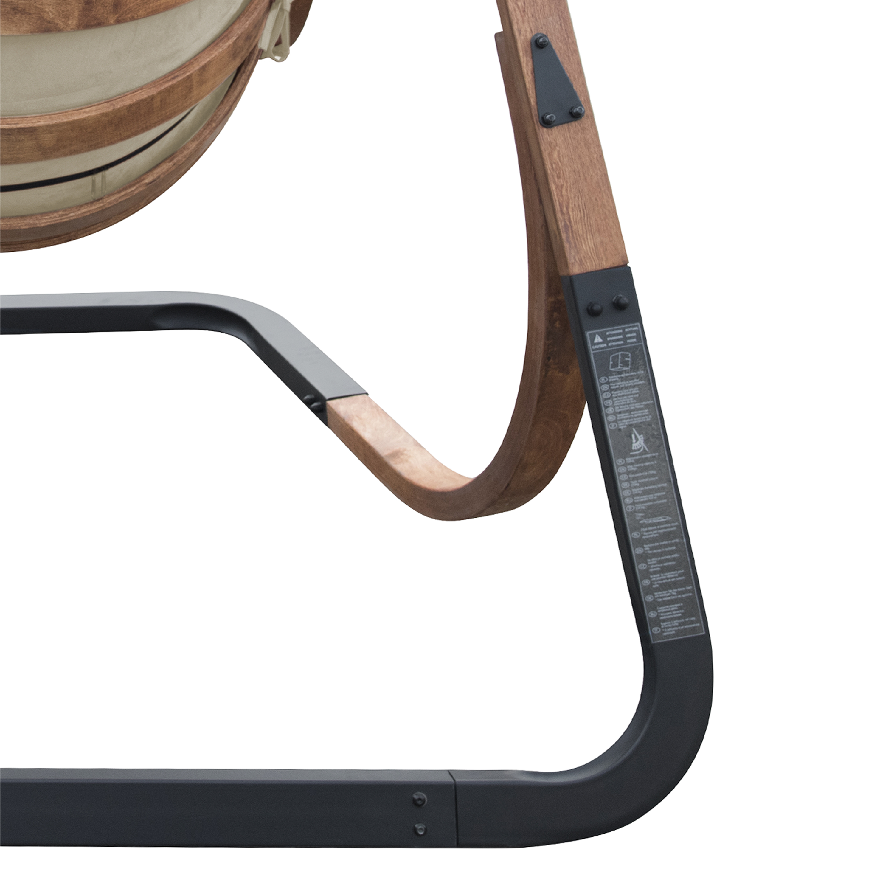 Je kunt de schommelstoel zowel binnen als buiten gebruiken. We raden wel aan om de suède zitting bij regen te beschermen. Zet de stoel bijvoorbeeld onder een overkapping of bescherm hem met een waterdichte hoes. Zo kun je ieder jaar opnieuw van de schommelstoel genieten!
