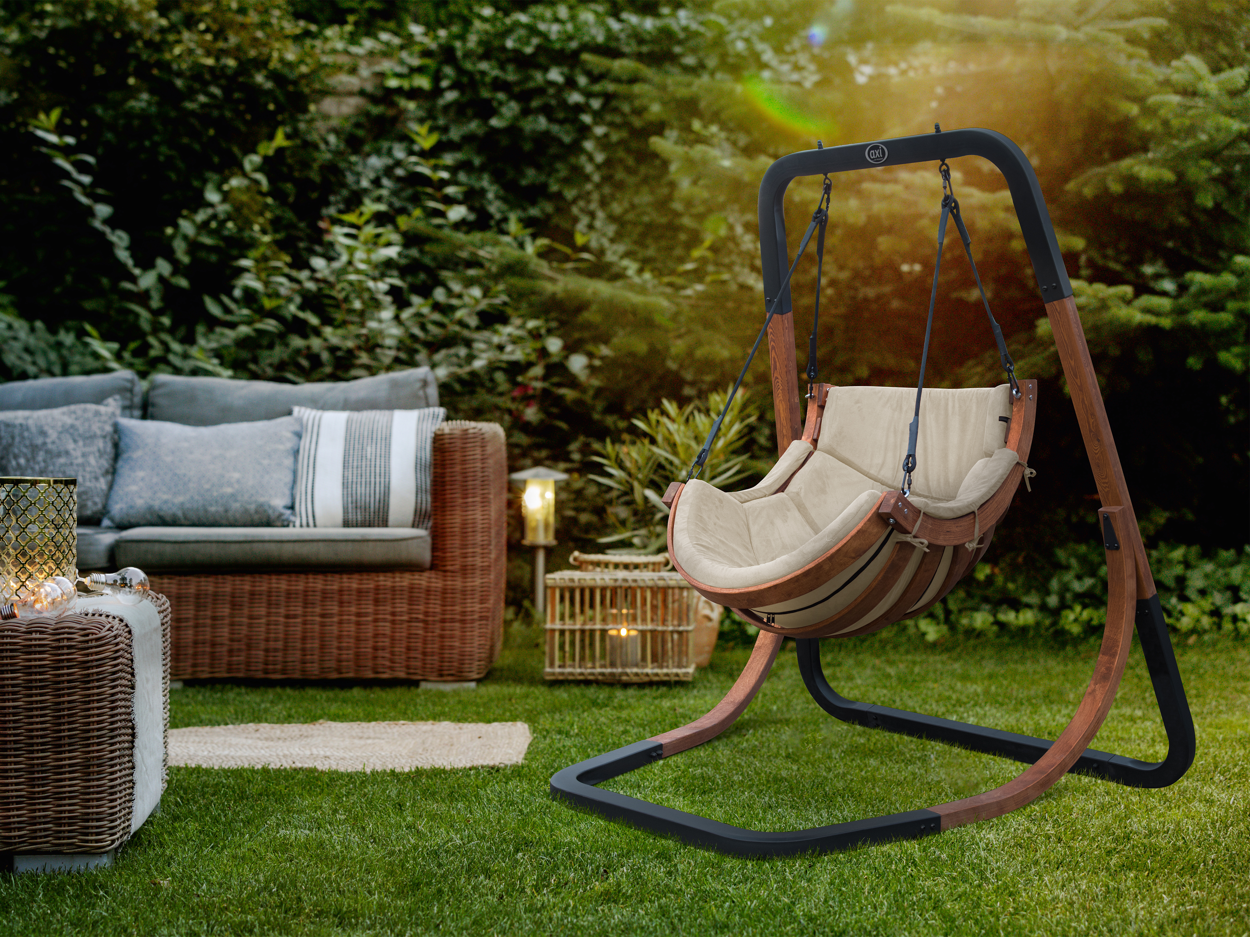 Met de AXI Capri Enkele Schommelstoel Beige kom je de zomer heerlijk ontspannen door! Lekker loungen en genieten van de zon; in deze comfortabele schommelstoel kom je helemaal tot rust. Dankzij het luxe design is deze schommelstoel de nieuwe eyecatcher in jouw tuin! De Capri schommelstoel is gemaakt van echt suède en hangt aan twee ophangpunten aan het stabiele frame. Zo zit en schommel je met het hoogste comfort. De stoere standaard is gemaakt van larikshout en staal.