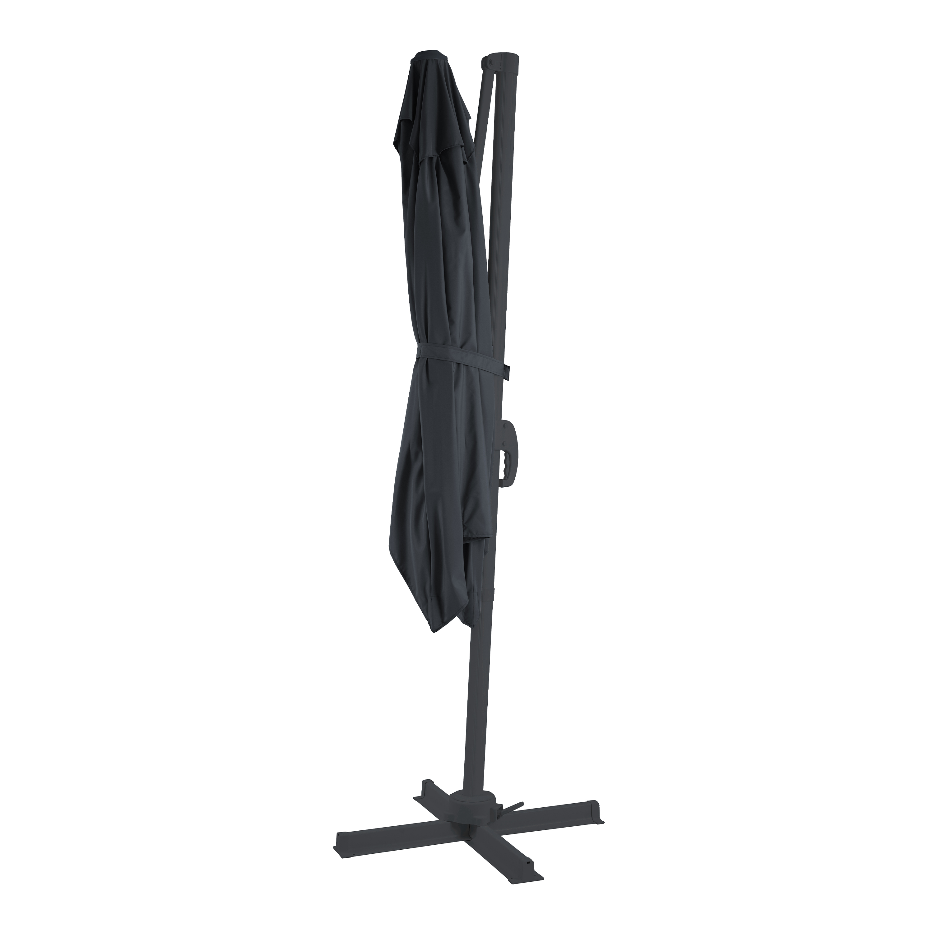 Bij de parasol wordt een praktische kruisvoet meegeleverd. Verzwaar de kruisvoet met zware tuintegels om ervoor te zorgen dat de zweefparasol stabiel blijft staan op je terras. We adviseren het gebruik van 4 zware tegels, elk met een gewicht van minimaal 20 kg. Met de bijpassende parasolhoes kan je de parasol extra beschermen tegen verschillende weersinvloeden. Om de levensduur te verlengen is het aan te raden om de parasol in extreme weersomstandigheden binnen op te slaan.