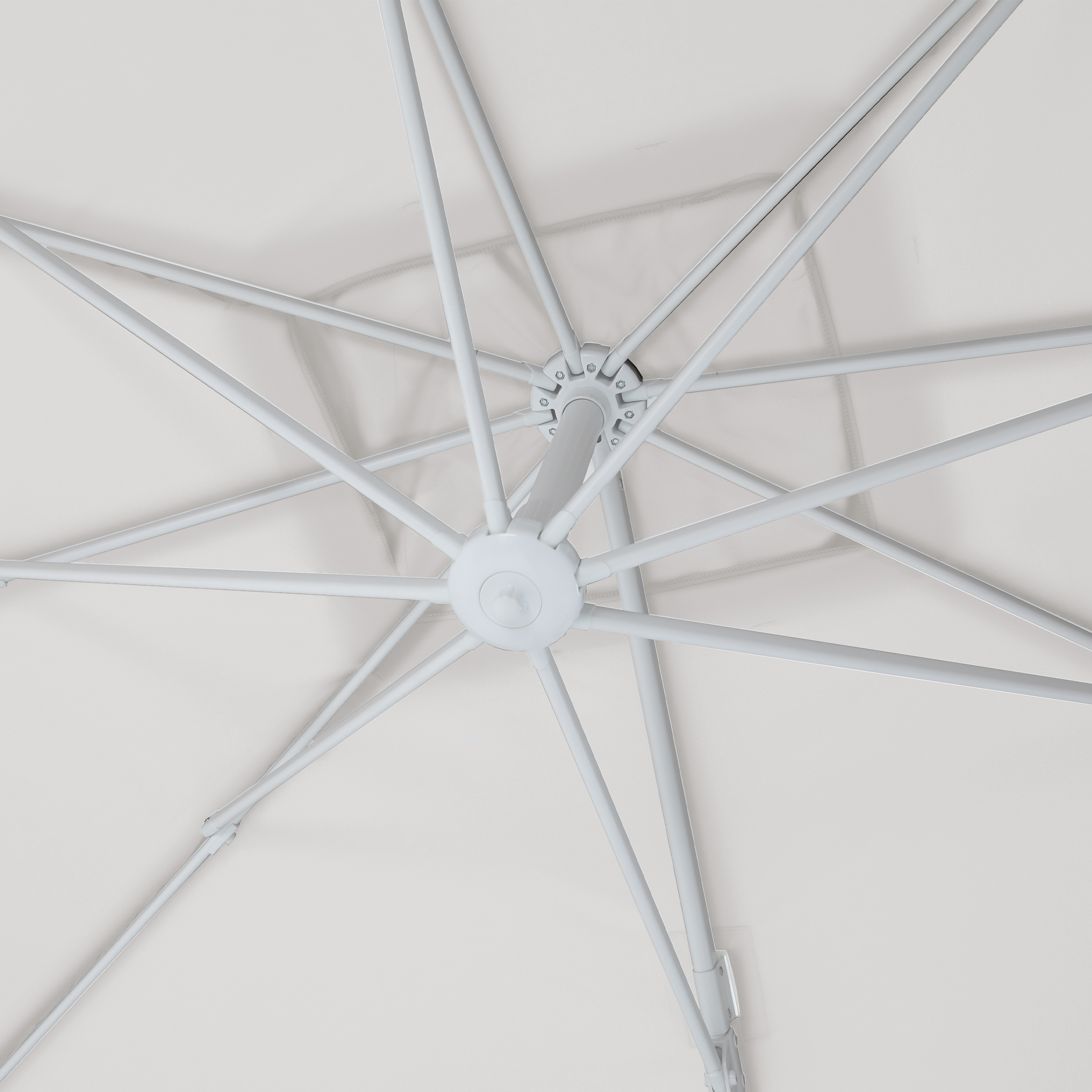 Het robuuste frame van de zweefparasol is vervaardigd van duurzaam gepoedercoat aluminium, waardoor het immuun is voor roestvorming. De Coco zweefparasol is voorzien van een dik frame waardoor deze veel stevigheid biedt, ideaal voor plaatsing in tuinen waar doorgaans meer wind voorkomt. Deze zwevende parasol biedt een volledige 360 graden draaibaarheid, is kantelbaar en kan moeiteloos worden opengedraaid dankzij het opdraaimechanisme.