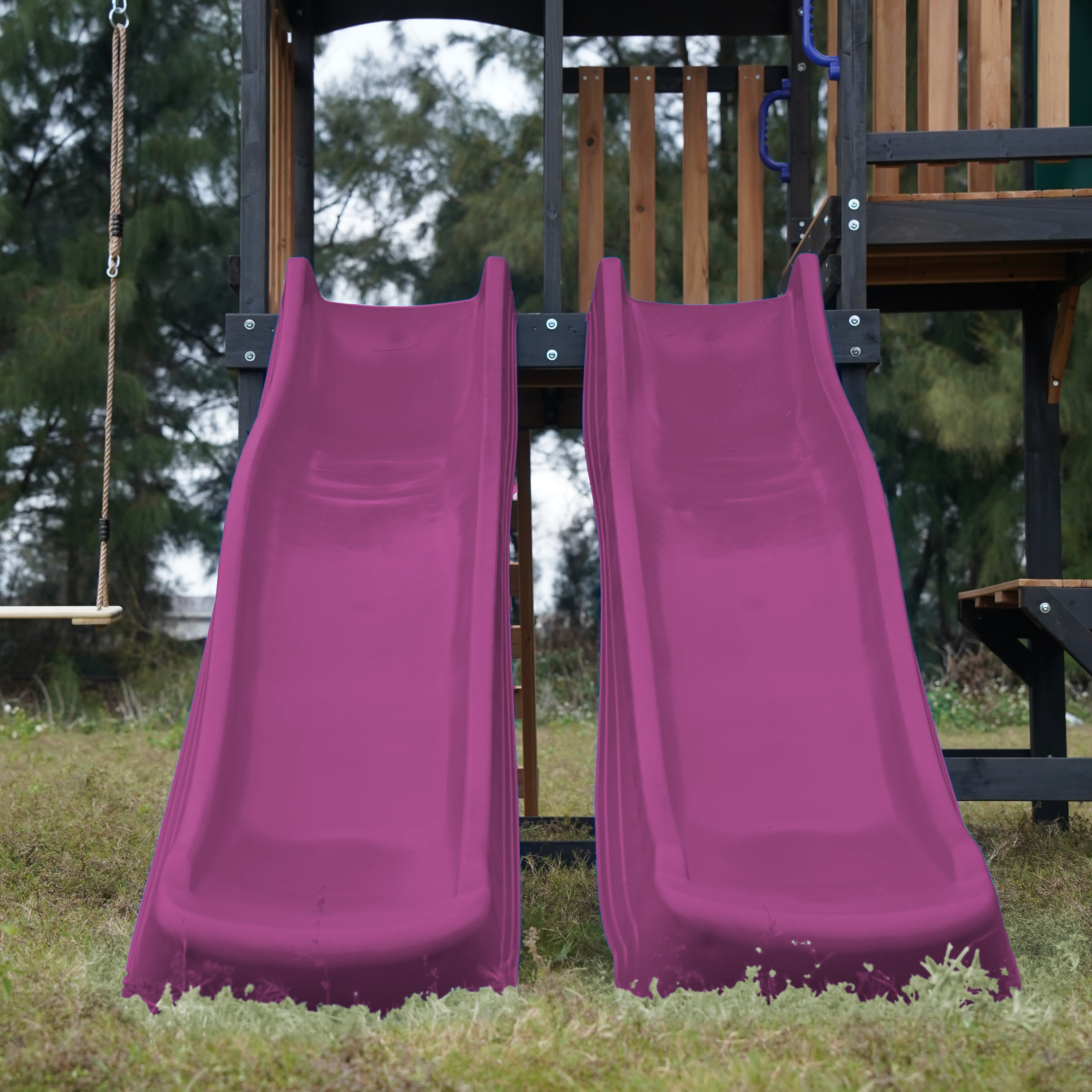 - Twee golvende glijbanen van 220 cm met wateraansluiting voor extra speelplezier.