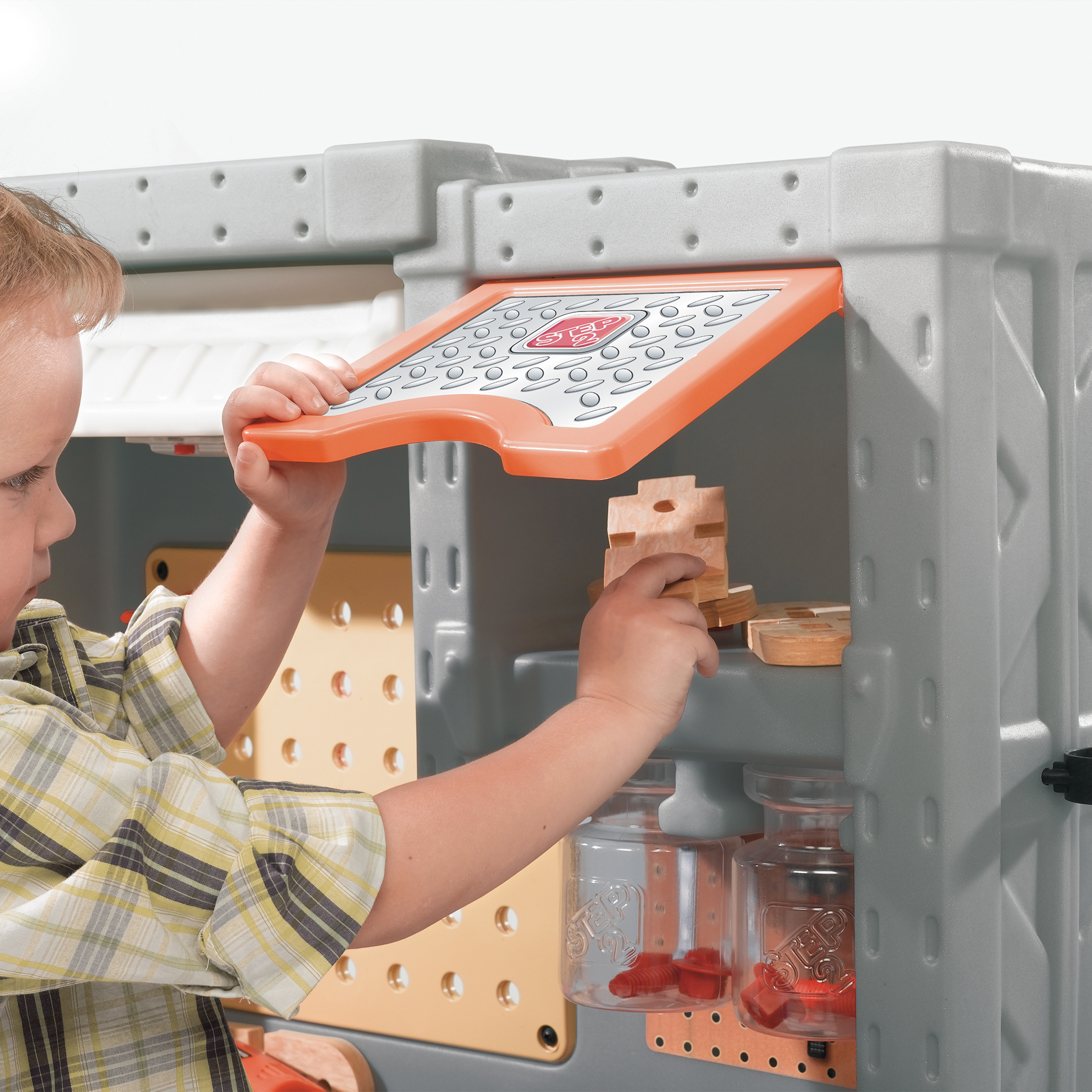 Met de Step2 Deluxe Workshop wanen kleine kinderen zich een echte timmerman of ontwerper door houten meesterwerken te maken met Durafoam™. Kinderen kunnen doen alsof ze een klusjesman of -vrouw zijn terwijl ze hun speelgoedgereedschap gebruiken. Deze gereedschapswerkplaats voor kinderen is groot en biedt veel ruimte en accessoires om met meerdere kinderen te spelen.