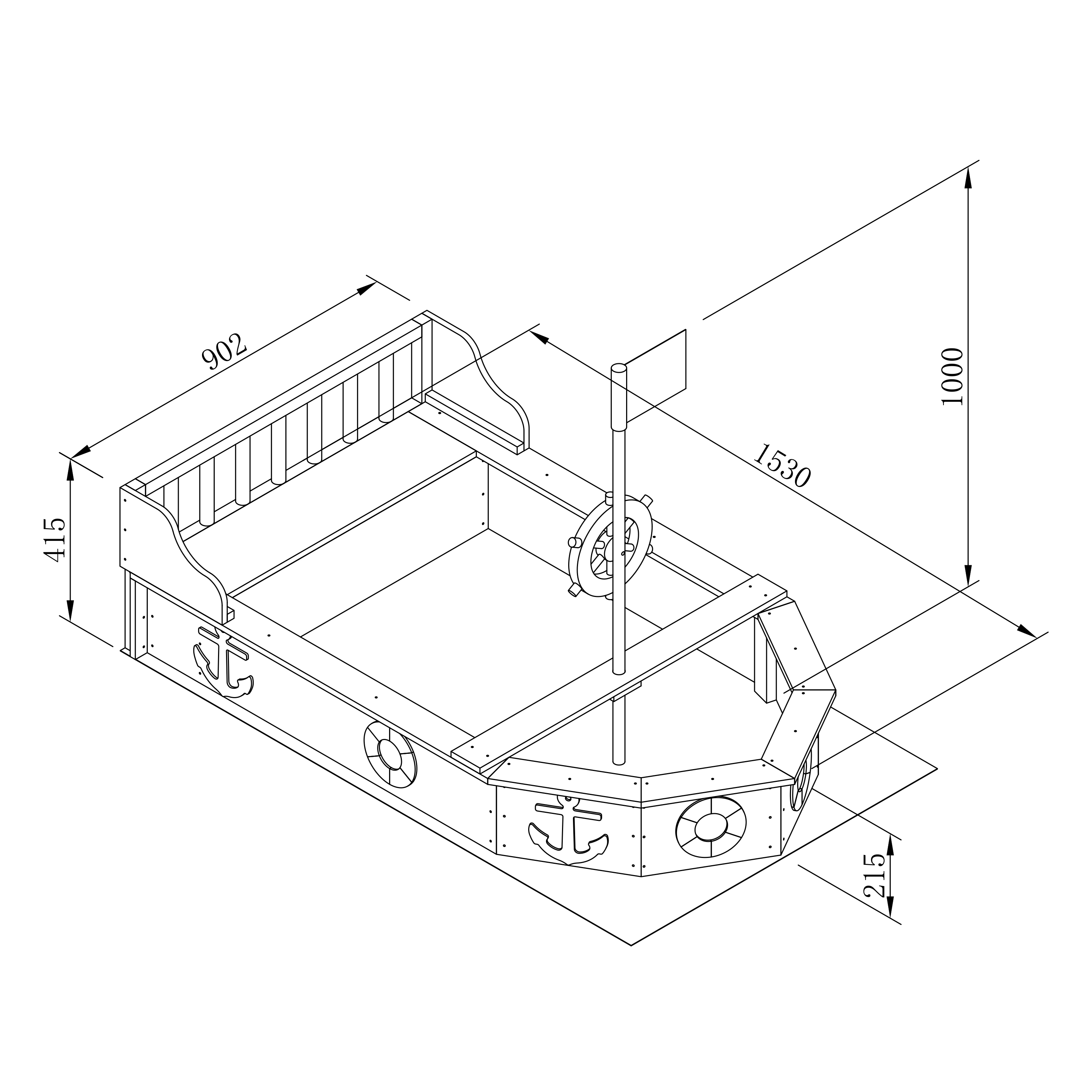 - Grote houten Boot zandbak met een inhoud voor ca. 180 kg speelzand.