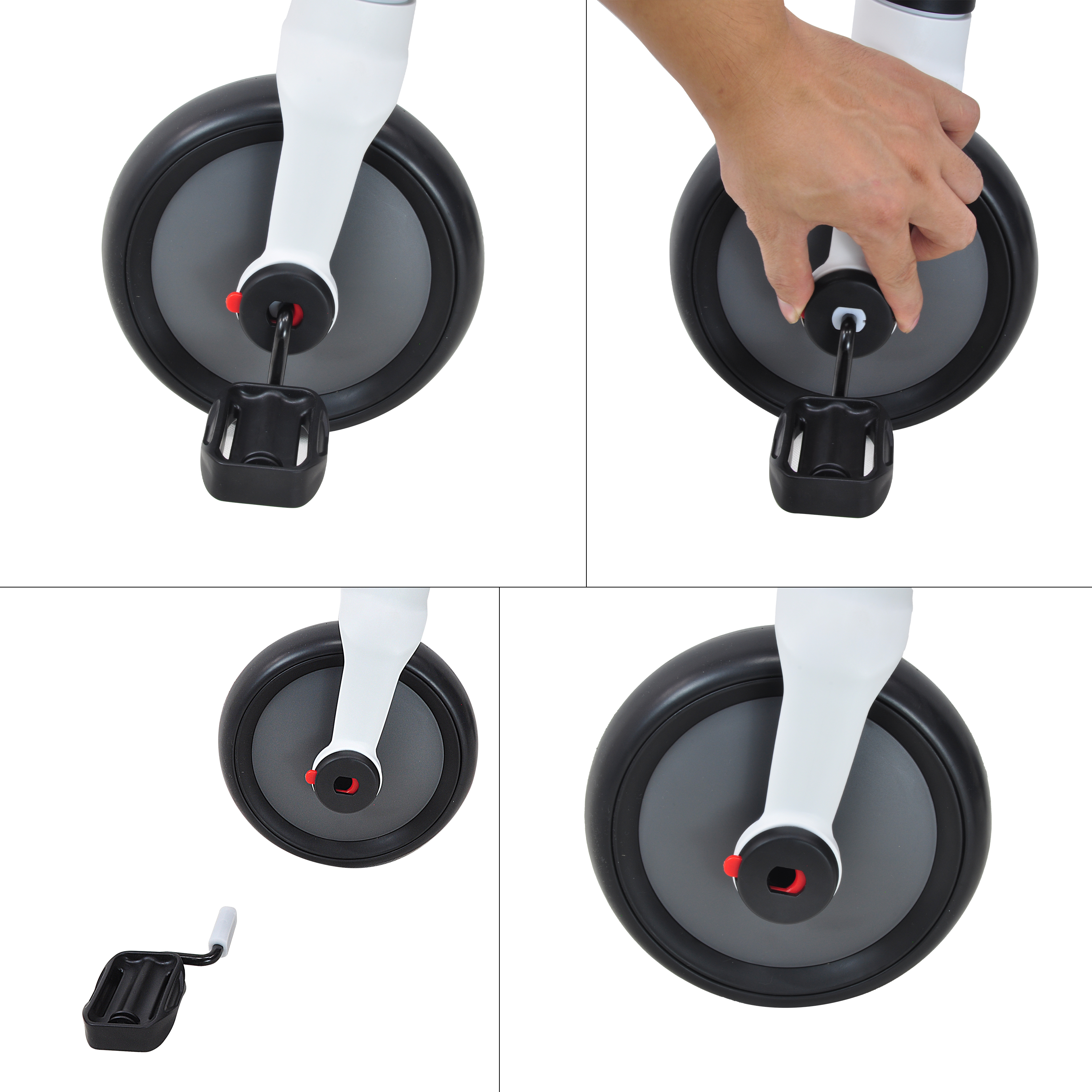 De driewieler is uitgerust met een snelkoppelingssysteem, waardoor aanpassingen en demontage eenvoudig zijn. Het zitje is verstelbaar, zodat je kindje altijd comfortabel zit, en de trappers zijn gemakkelijk te verwijderen. Als kers op de taart is de driewieler voorzien van een handig opbergmandje aan de achterkant, waarin alle bijzondere vondsten kunnen worden verzameld.