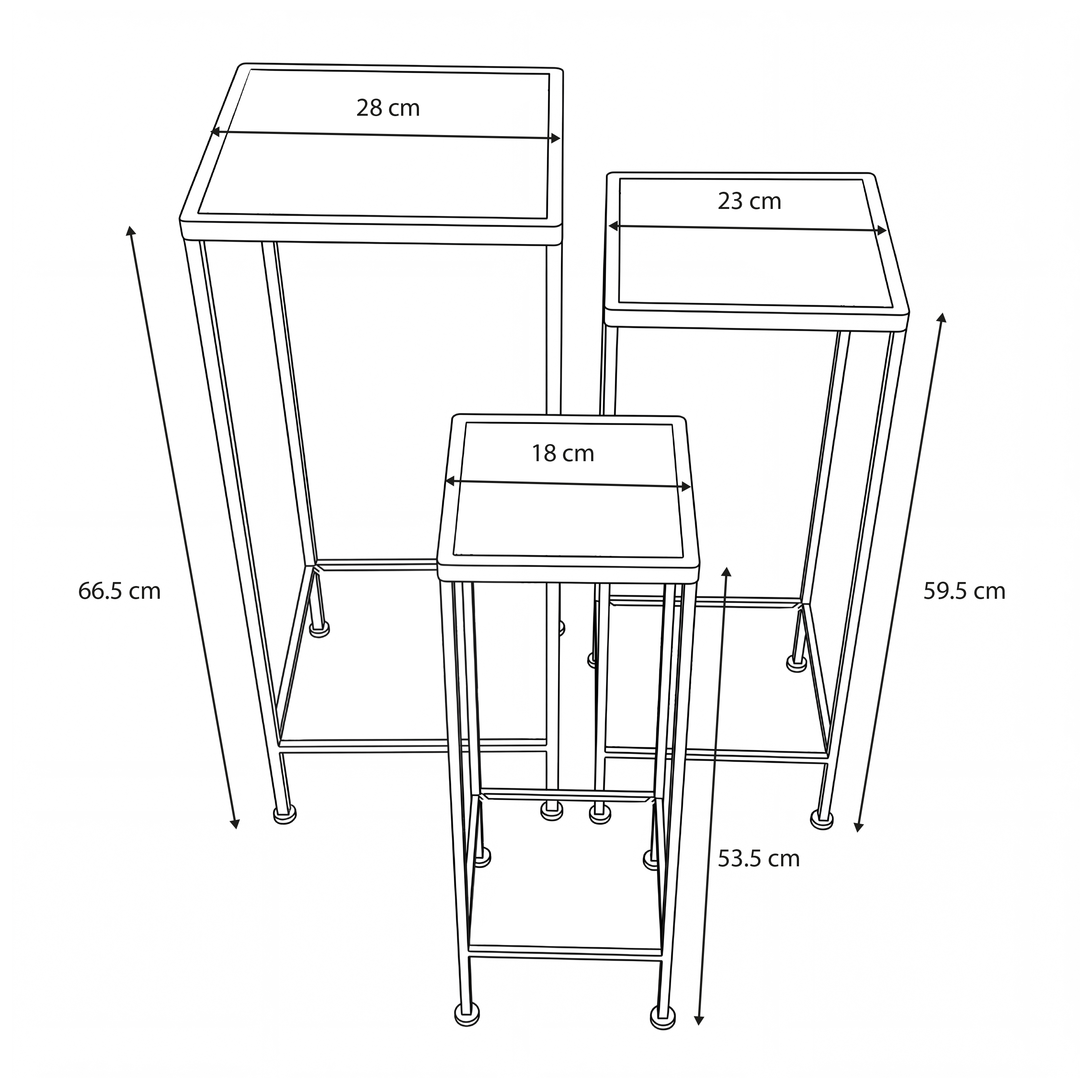 De set bestaat uit drie vierkante bijzettafels in verschillende hoogtes, waardoor je eindeloos kunt variëren. Gebruik ze samen als plantenhoek, los als bijzettafeltje of combineer ze met decoratie voor een speels effect. Dankzij de compacte formaten passen ze gemakkelijk in elke ruimte.