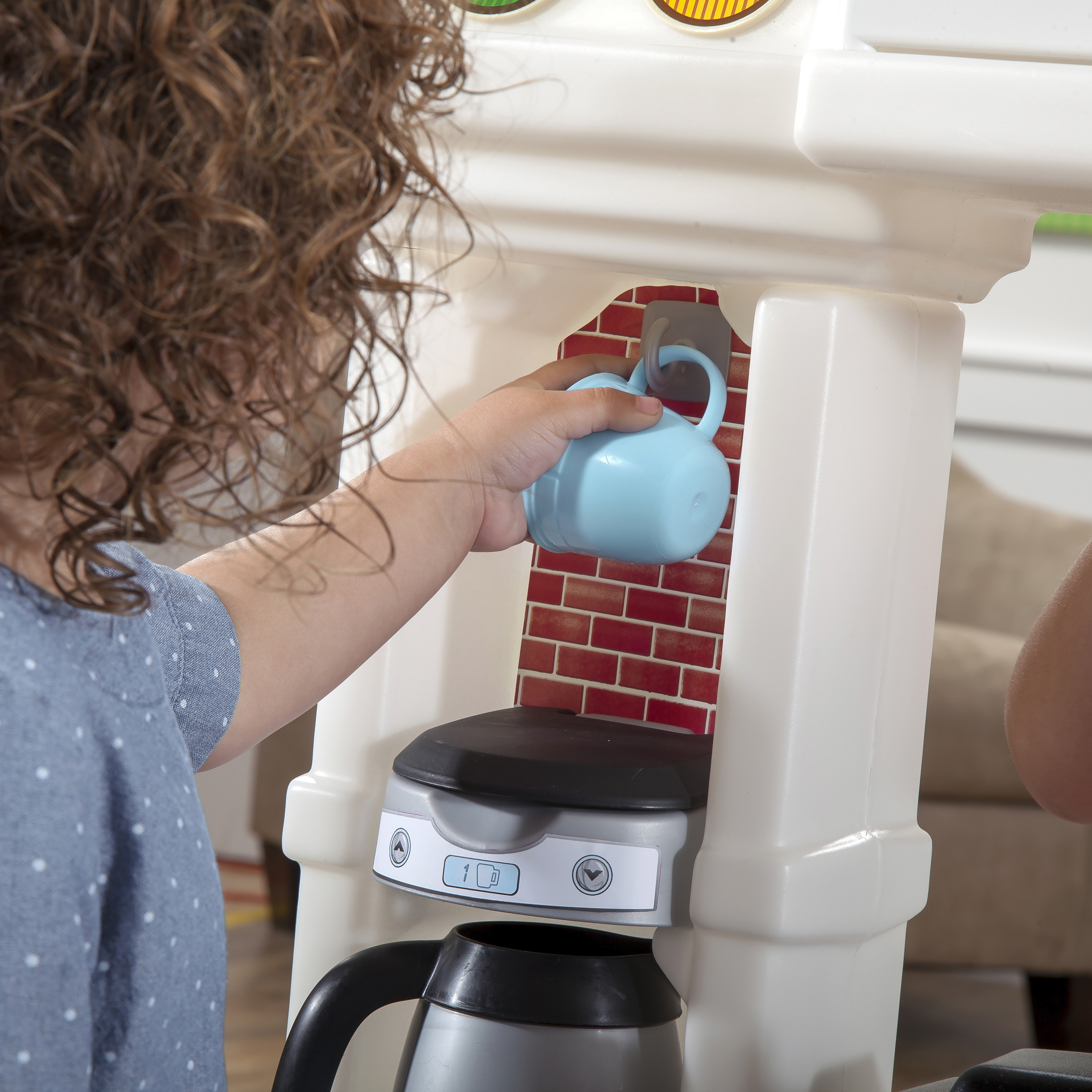 De speelkeuken heeft een krijtbord voor de kleintjes om hun boodschappenlijst bij te houden