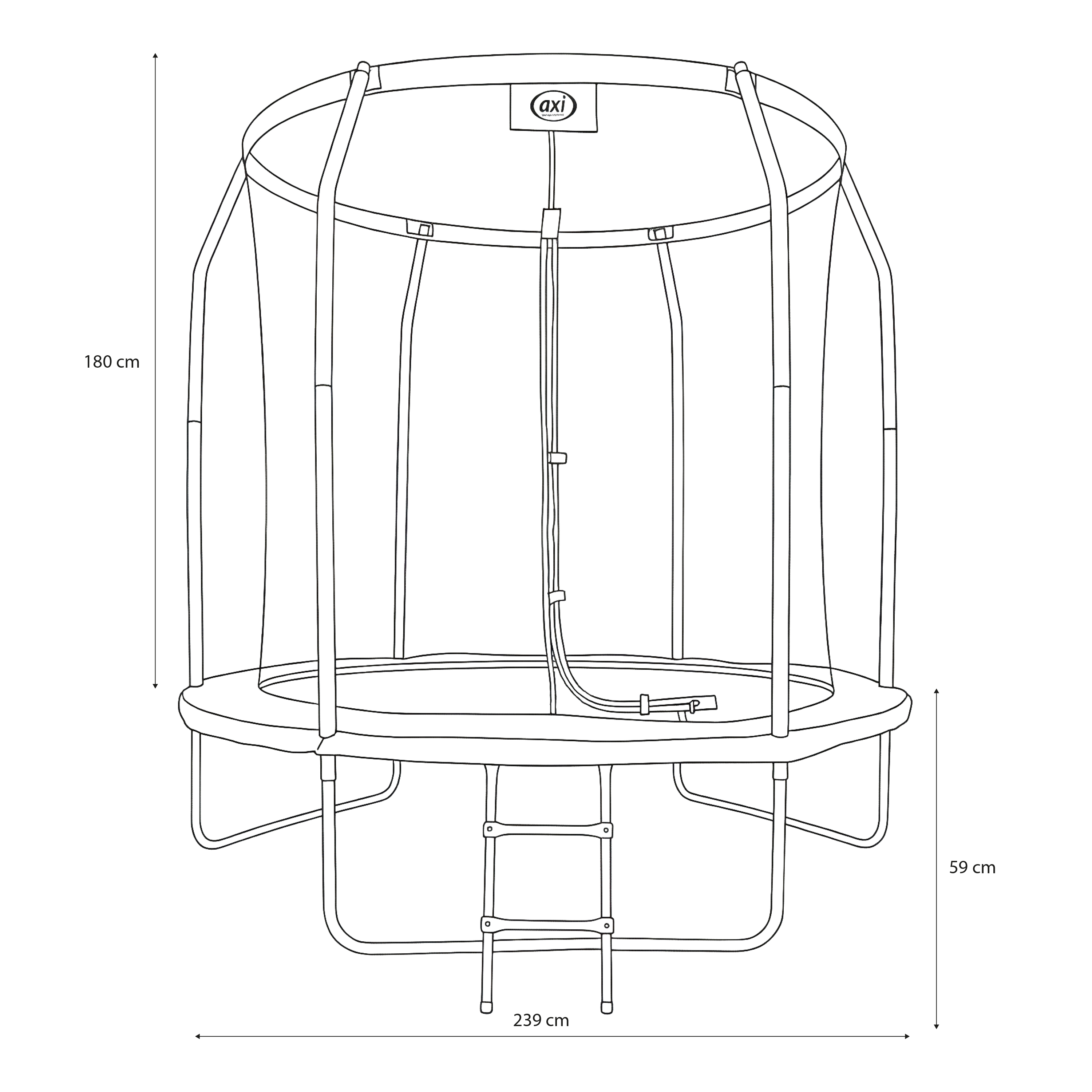Met zijn totale afmeting van 244 x 244 x 239 cm en een springdiameter van Ø 201 cm biedt deze trampoline volop ruimte voor gecontroleerd en veilig springplezier. Perfect voor kinderen die zichzelf willen uitdagen.