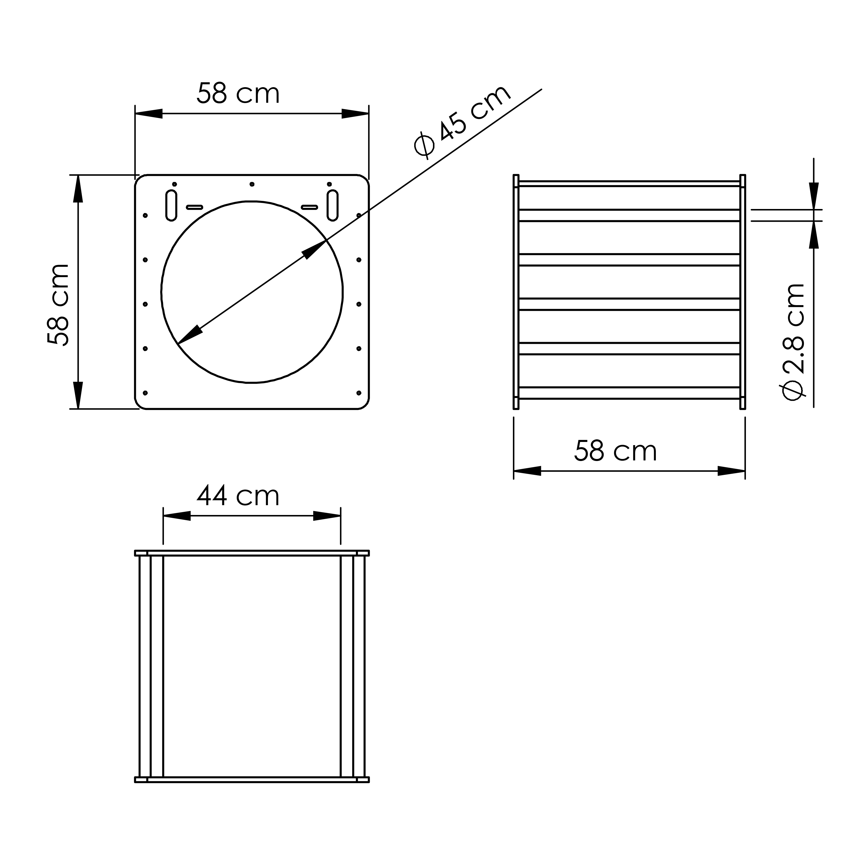 LxBxH: 175 x 58 x 58 cm.