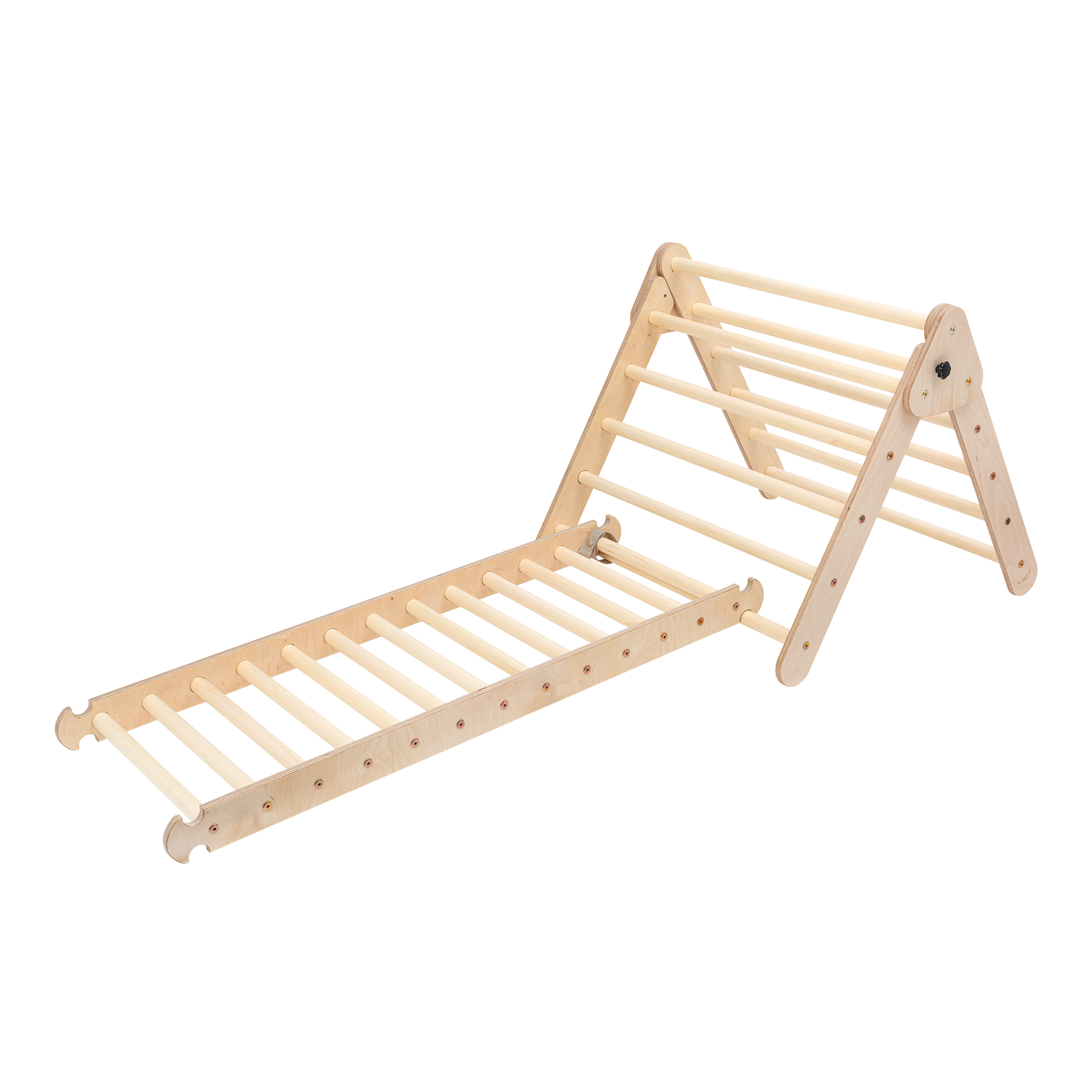 Houten Klimdriehoek met Ladder en Klimwand Naturel