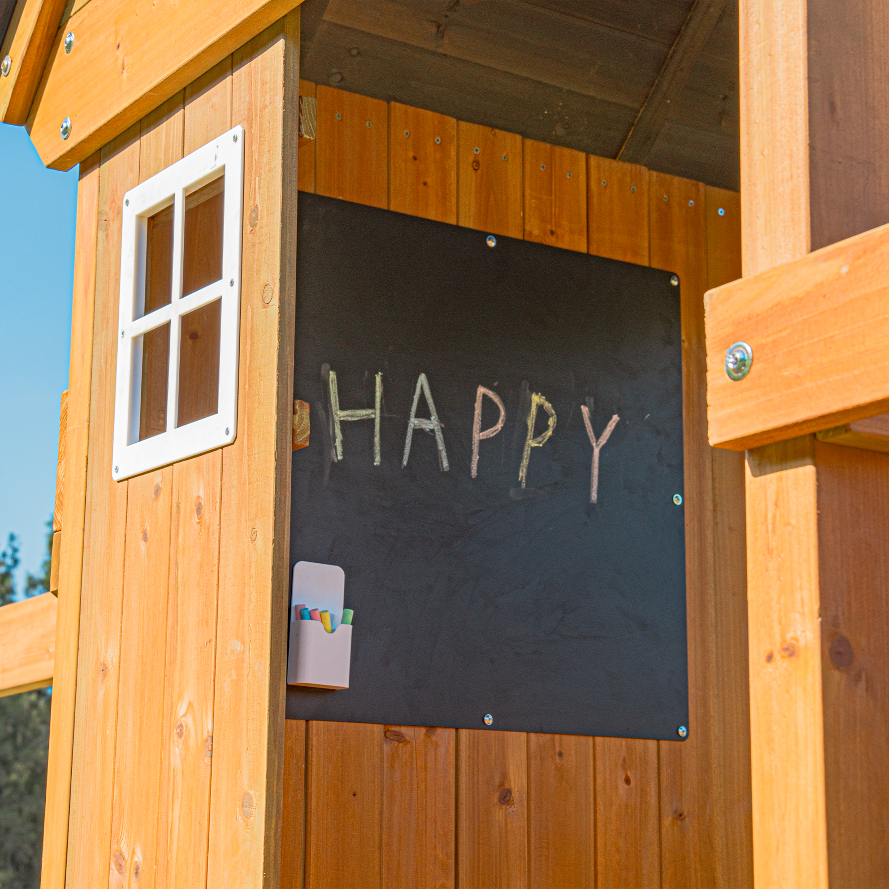 - Inclusief leuke extra’s zoals een krijtbord, picknicktafel, speelkeuken en het spel boter kaas en eieren.