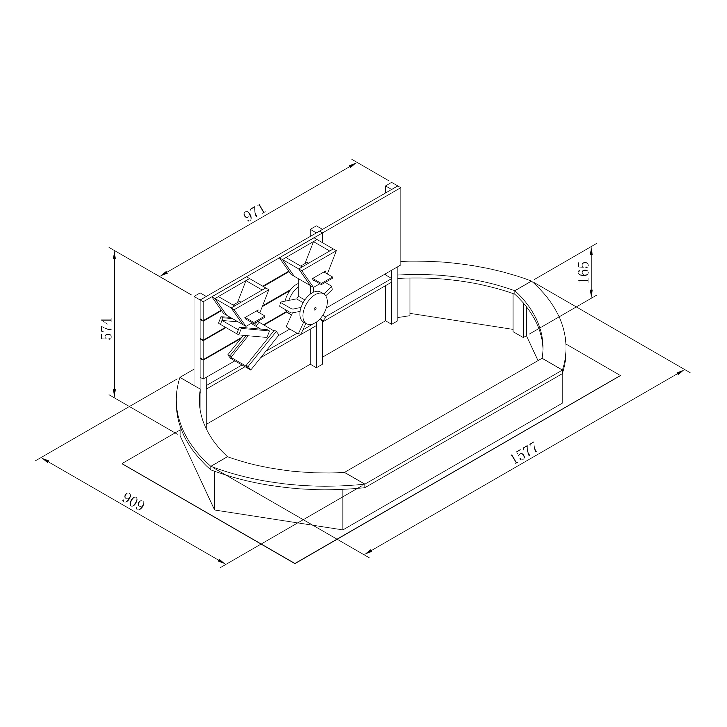 De ovale zandbak heeft een fijn, overzichtelijk formaat en biedt genoeg ruimte voor twee kinderen om samen comfortabel te spelen. Er is voldoende ruimte om te graven, bouwen en spelen, terwijl het ontwerp compact genoeg blijft voor de meeste tuinen. Met een capaciteit van circa 110 kg zand kunnen kinderen volop hun gang gaan.