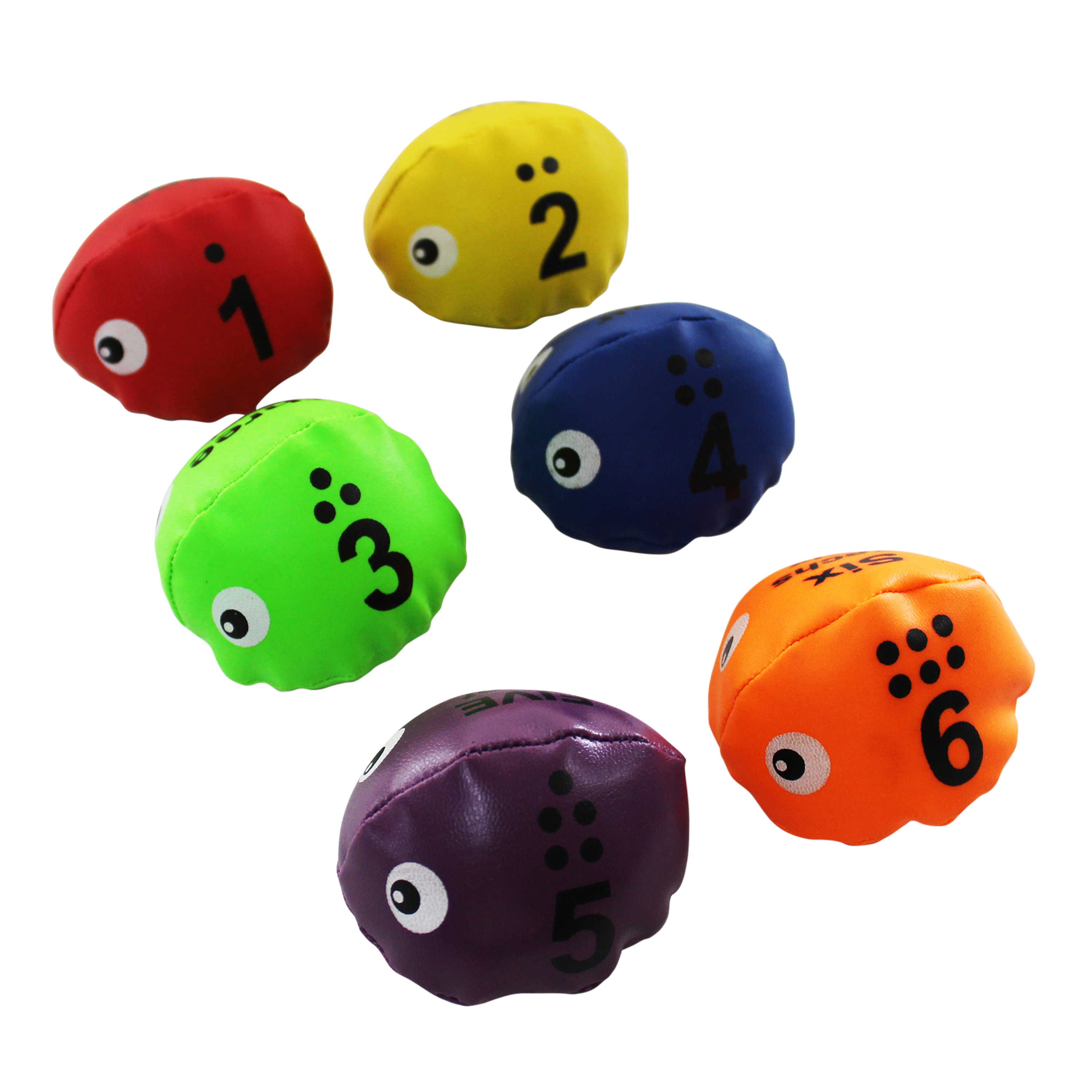 Set van 6 pittenzakjes in de vorm van een kever, die genummerd zijn van 1 tot en met 6 en voorzien zijn van overeenkomstig aantal stippen. Op ieder zakje staan 3 verschillende talen (Engels, Duits en Frans), zodat je kindje al vroeg kennis kan maken met andere talen. De pittenzakjes zijn er in 6 verschillende kleuren (rood, blauw, groen, geel, oranje, paars). De pittenzakken zijn vanwege de vorm zeer geschikt voor kinderen om te leren gooien, vangen en jongleren. Ideaal om actief kleuren, getallen en zelfs talen te leren!