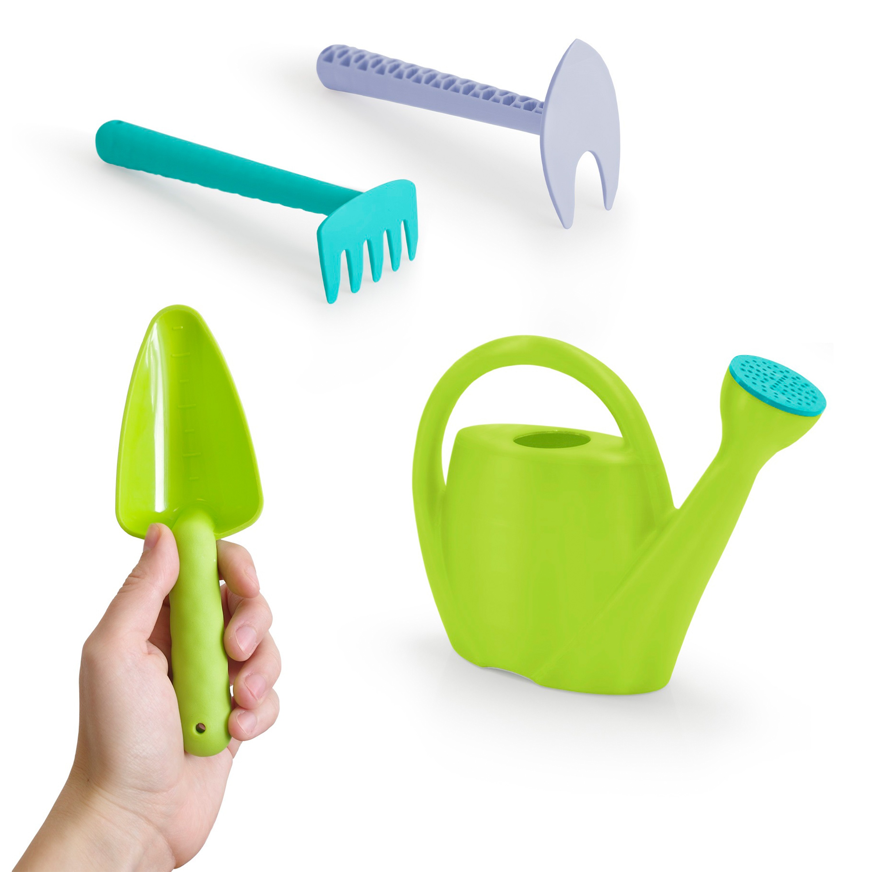 De kweektafel wordt geleverd met 4 toffe accessoires. Met het meegeleverde harkje, schoffeltje, schepje en gietertje kunnen kinderen hun moestuin perfect onderhouden! Het “tuingereedschap” kan netjes worden opgehangen aan het rekje aan de rand van de kweektafel. De accessoires zijn ook leuk om te gebruiken in een zandbak.