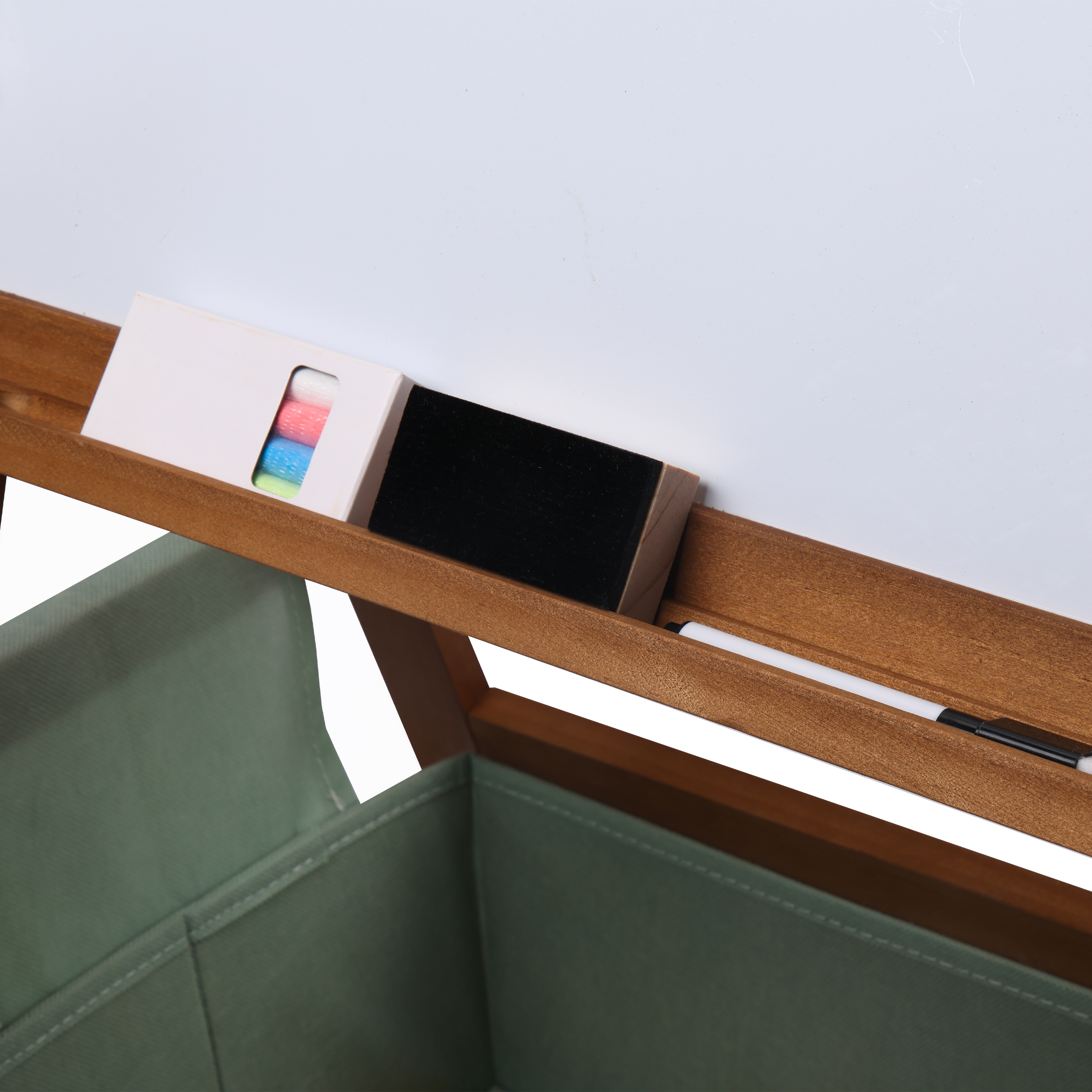 Handig: de ezel is in hoogte verstelbaar! Zo groeit de Lara mee en blijft hij jarenlang leuk. Onder de ezel vind je een stevig stoffen opbergvak waar al het teken- en schrijfmateriaal netjes in opgeborgen kan worden. Alles binnen handbereik én geen rondslingerende stiften meer in de kamer.