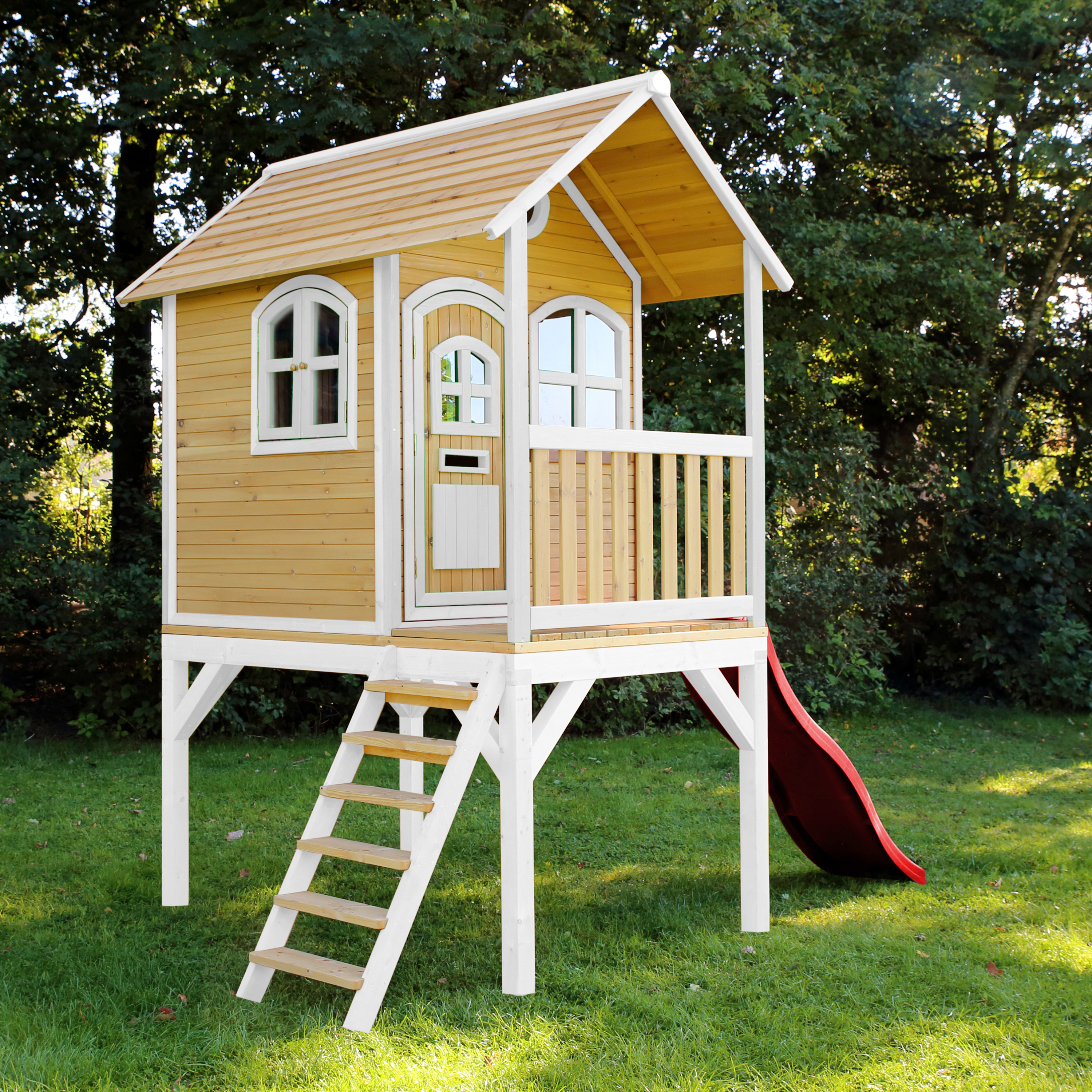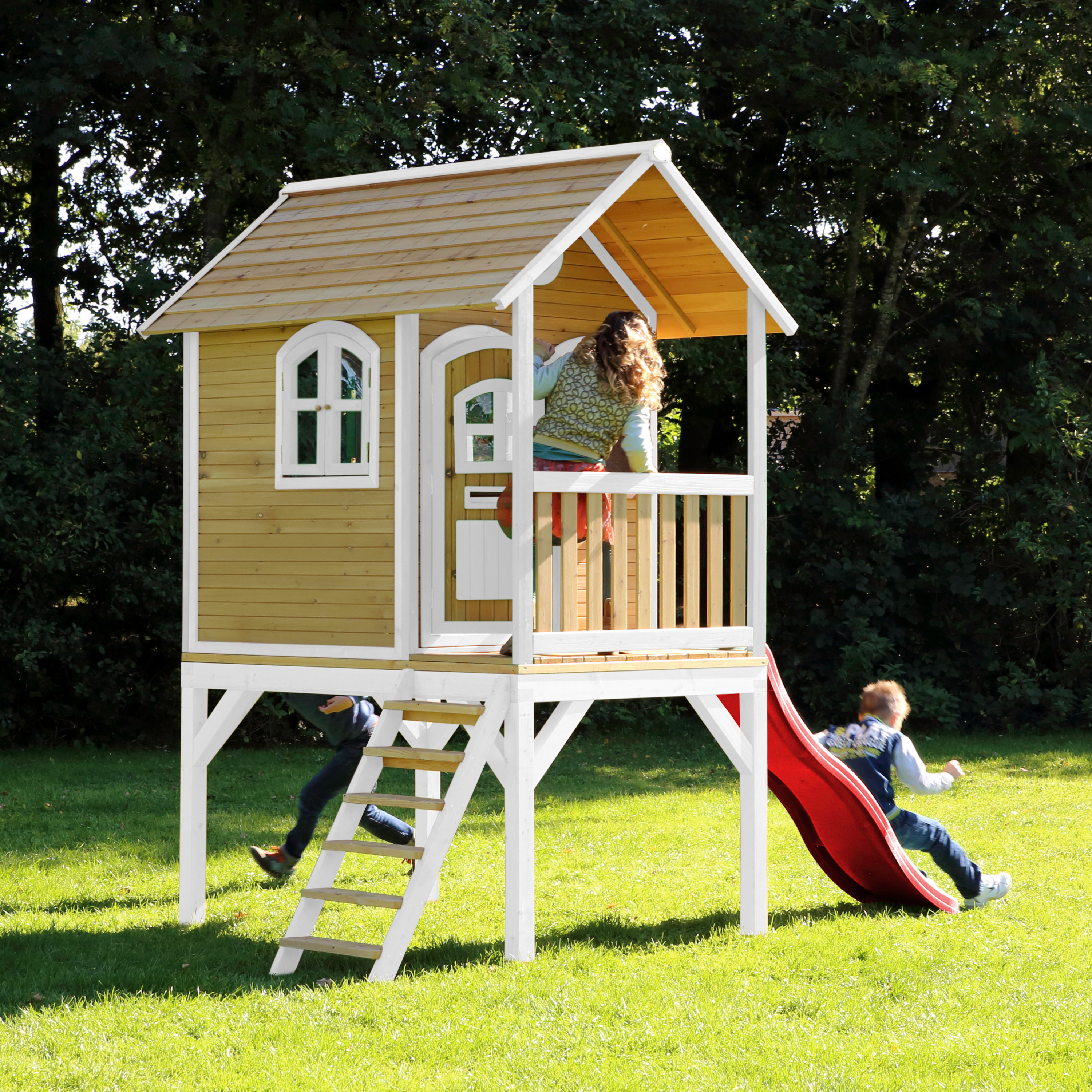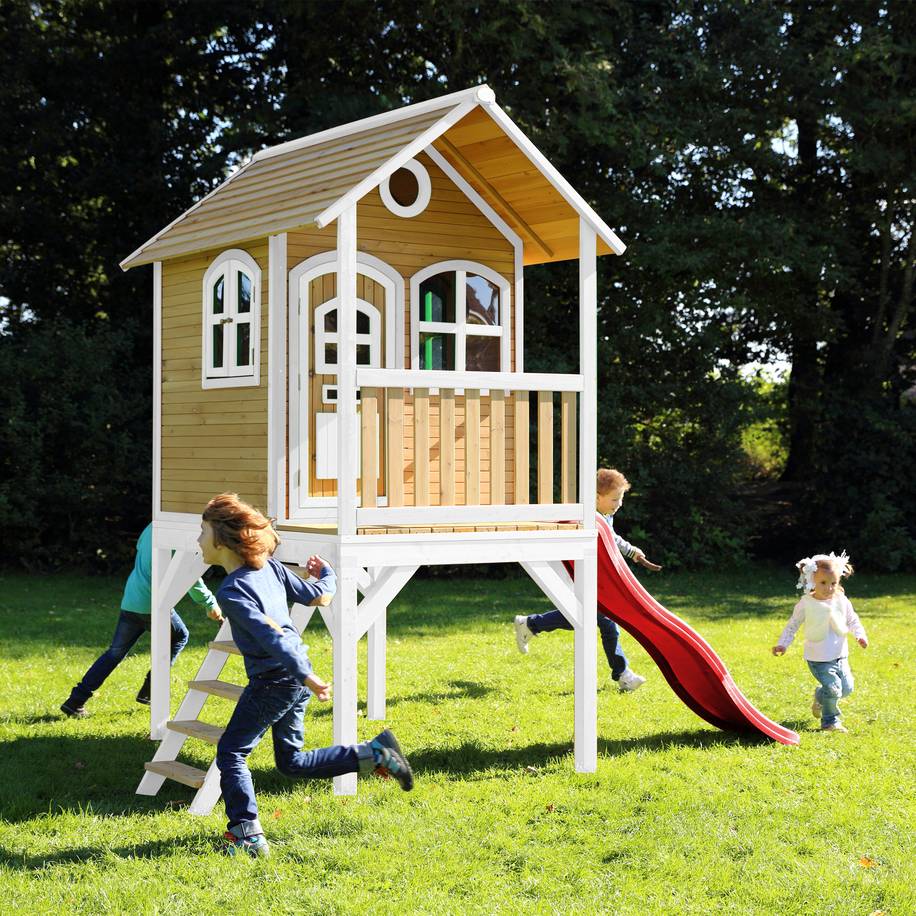 Productinformatie "Laura Speelhuis Bruin/wit - Rode Glijbaan"