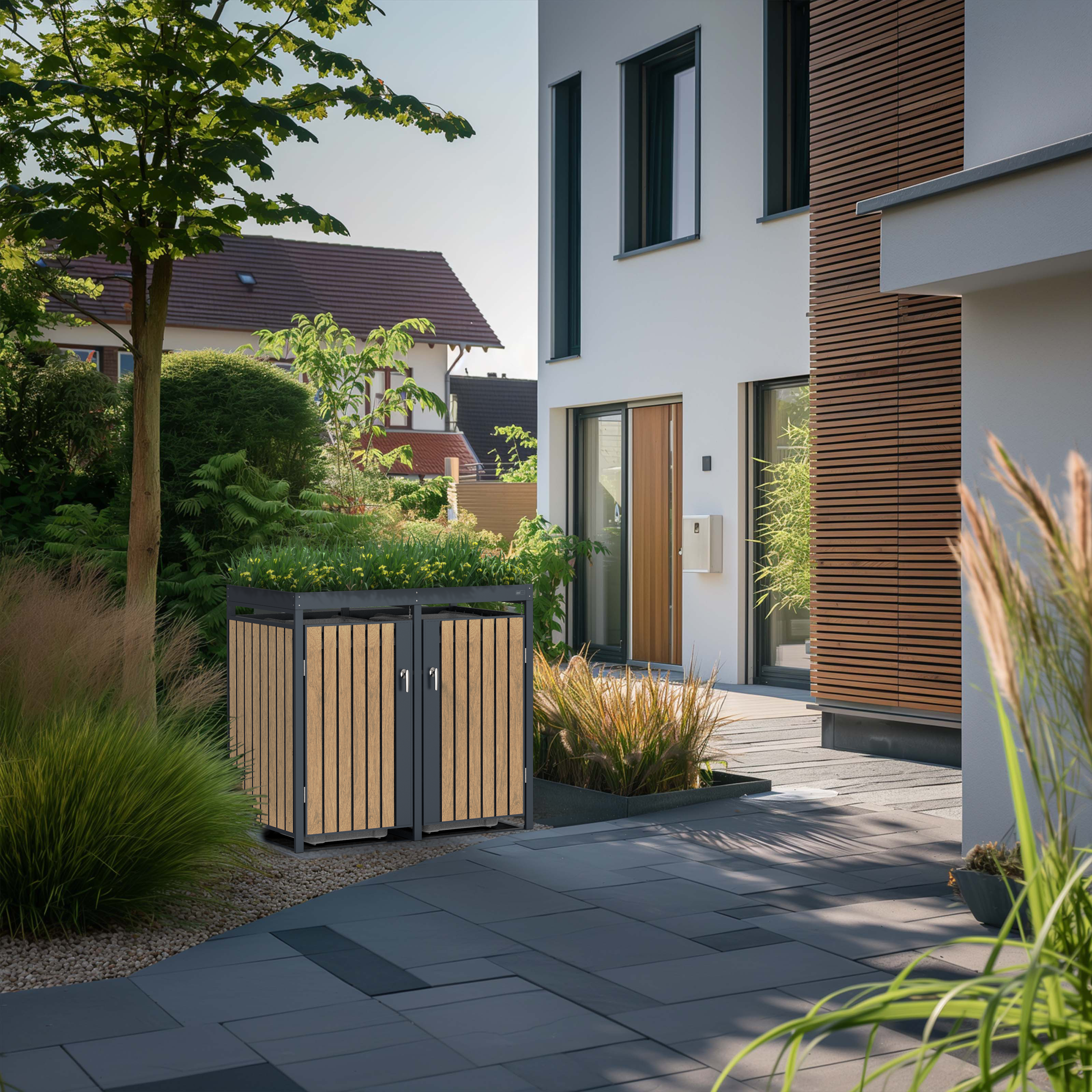 Leon Metalen Containerbak - Antraciet/Houtlook 2x 240L