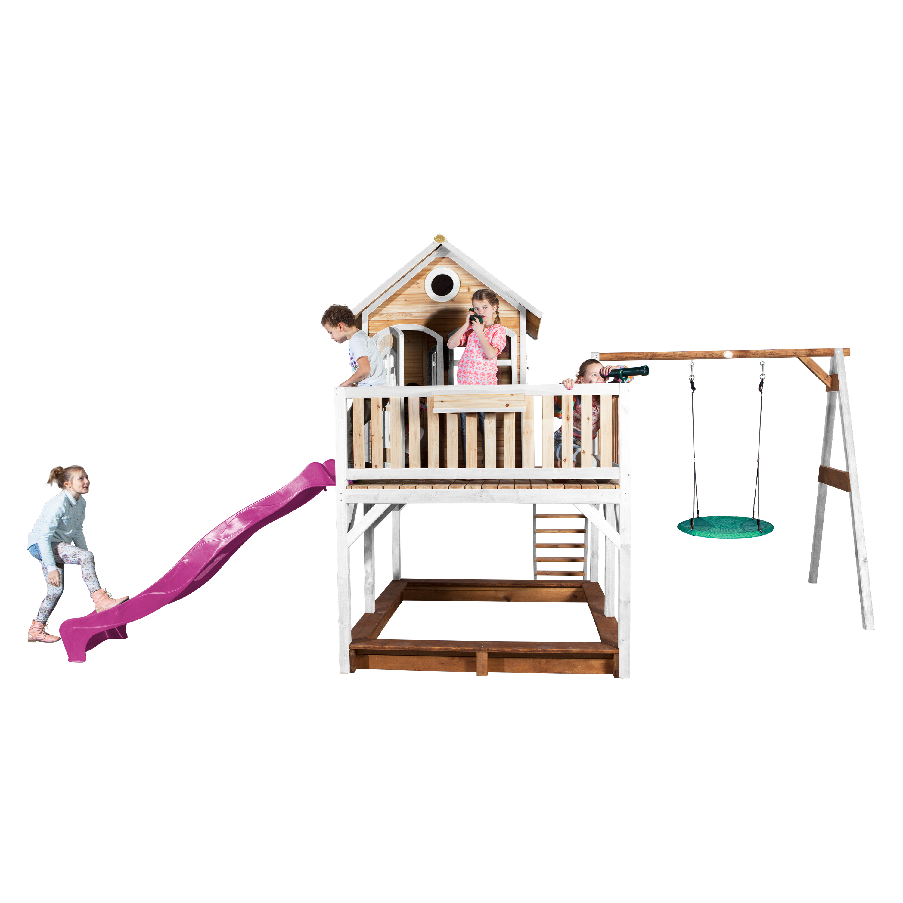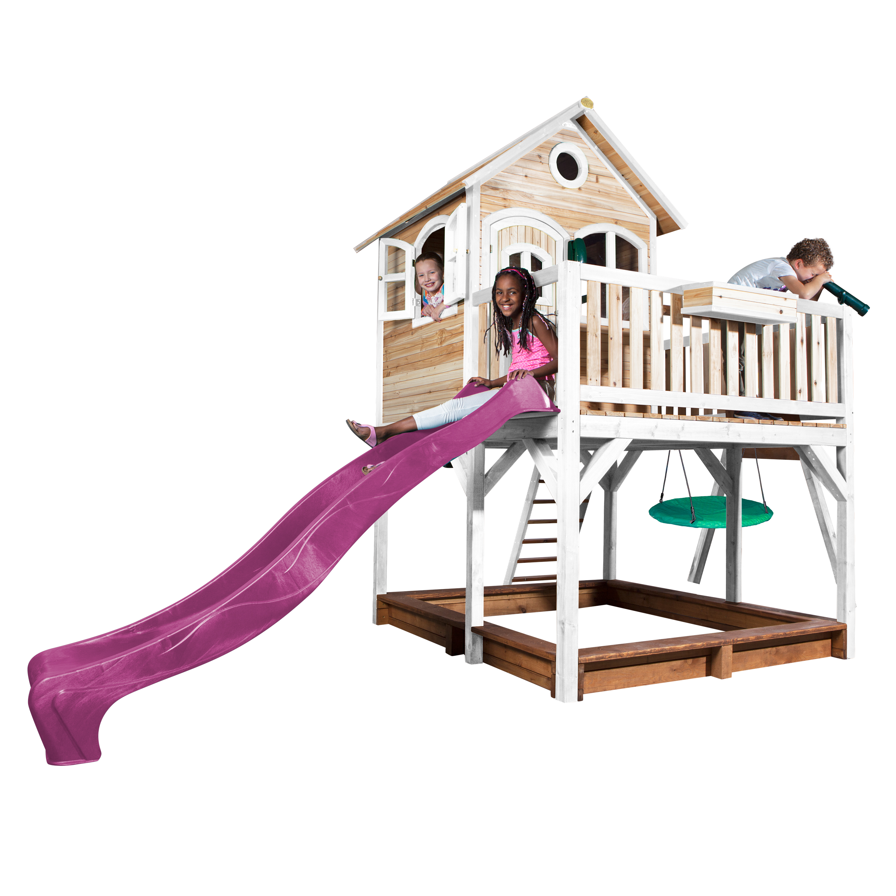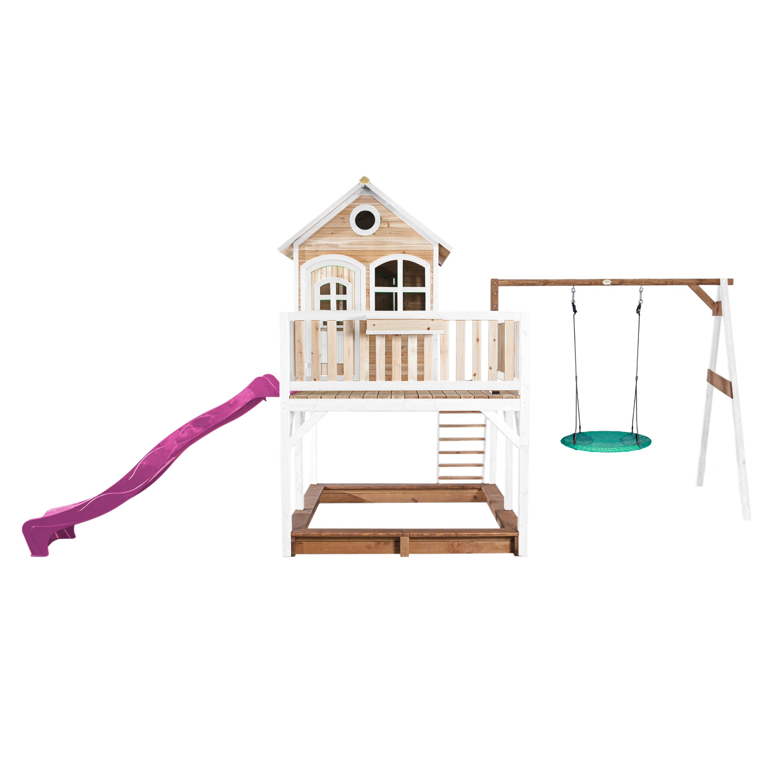 Productinformatie "Liam Speelhuis met Summer Nestschommel Bruin/wit - Paarse Gl"