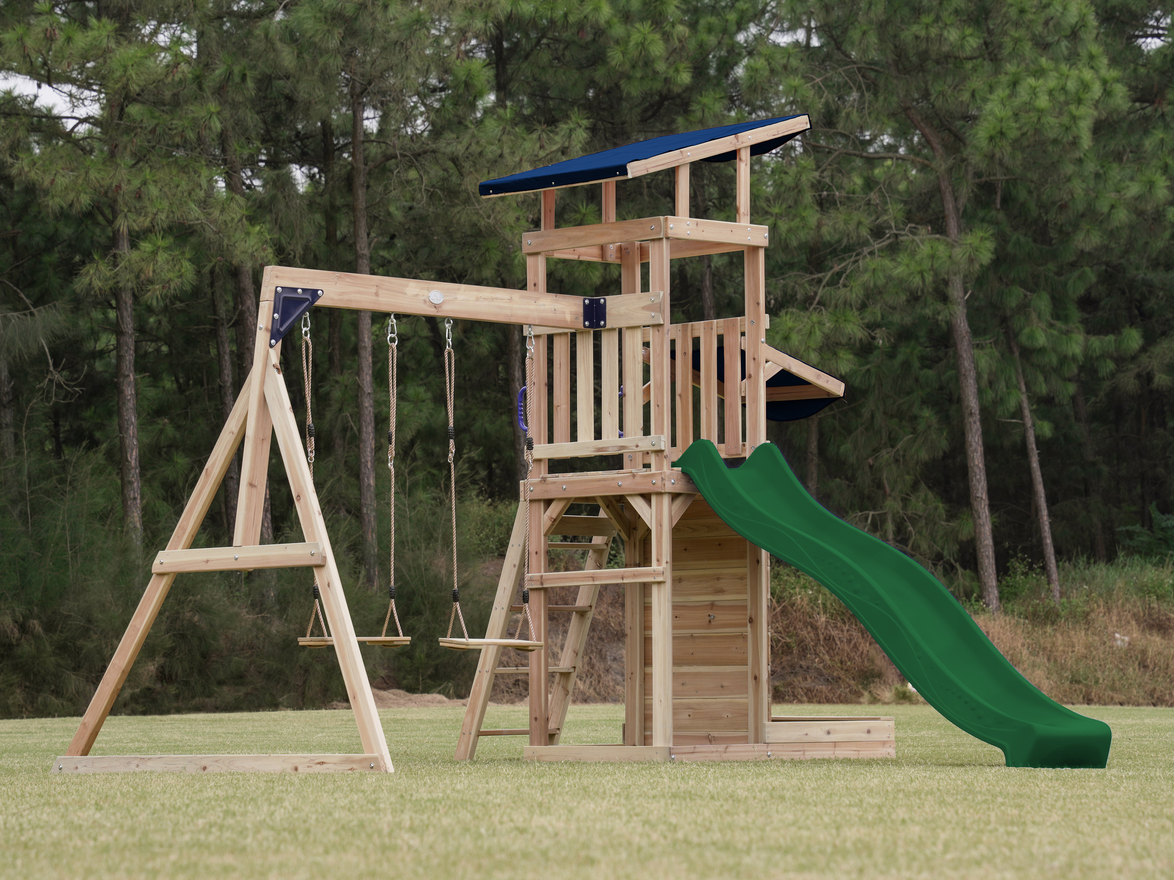 Het AXI Malik Speeltoestel met Dubbele Schommel transformeert de speelomgeving van je kindje in een waar speelparadijs. Jonge avonturiers betreden met Malik een wereld van klimmen, glijden en schommelen.