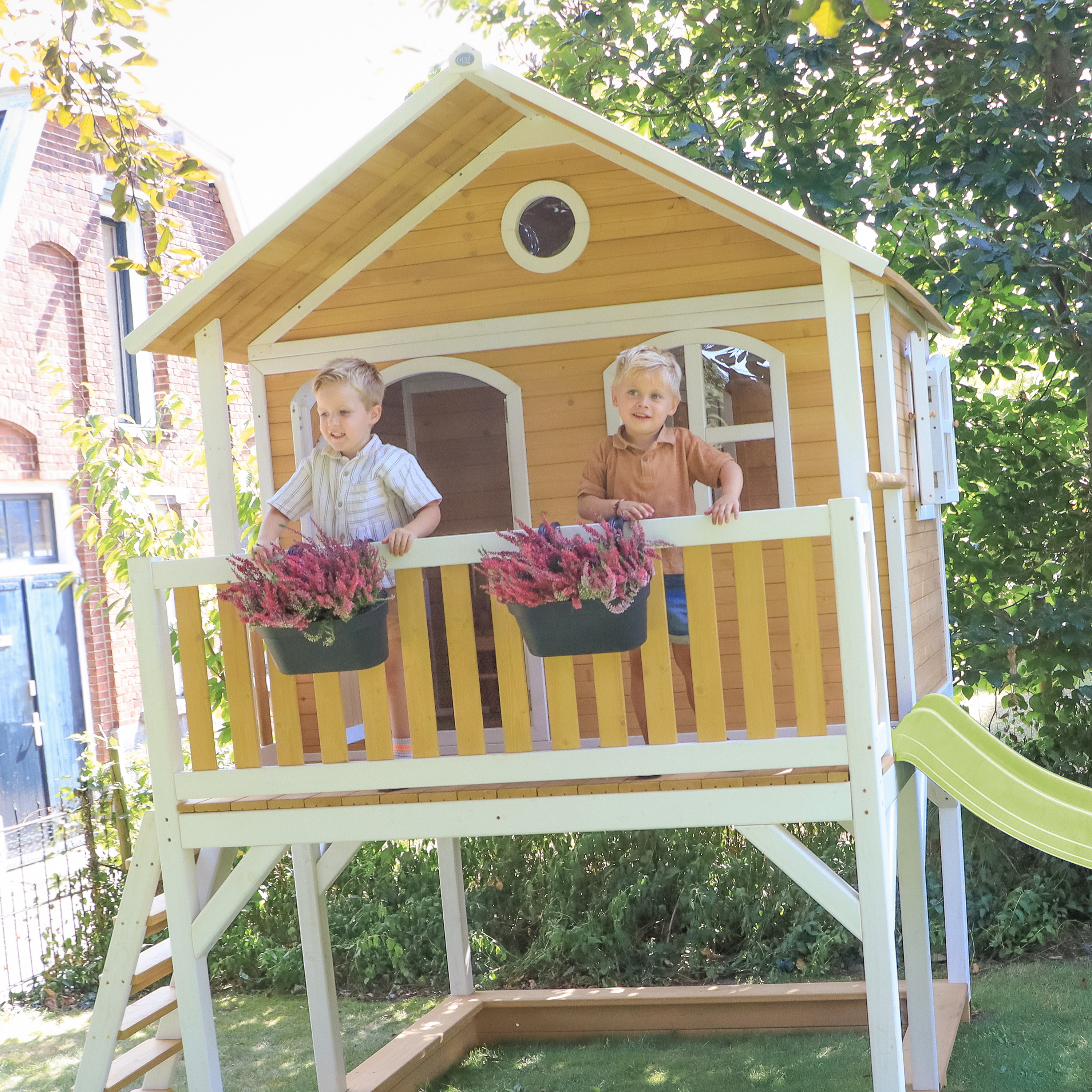 Marc Speelhuis is gemaakt van FSC 100% Hemlock hout en heeft een dak van FSC 100% Cipressen hout welke beide afkomstig zijn van duurzaam beheerde bossen. Hemlock en Cipressen hout splinteren niet en zijn van nature bestand tegen weersinvloeden zoals regen en dus resistent tegen houtrot. Het hout is behandeld met een watergedragen beits en is daardoor vrijwel onderhoudsvrij. Deze beits op natuurlijke basis is niet schadelijk voor het milieu en veilig voor kinderen (zonder chemicaliën). Met een garantietermijn van 10 jaar kunnen je kinderen en jij jarenlang onbezorgd genieten.