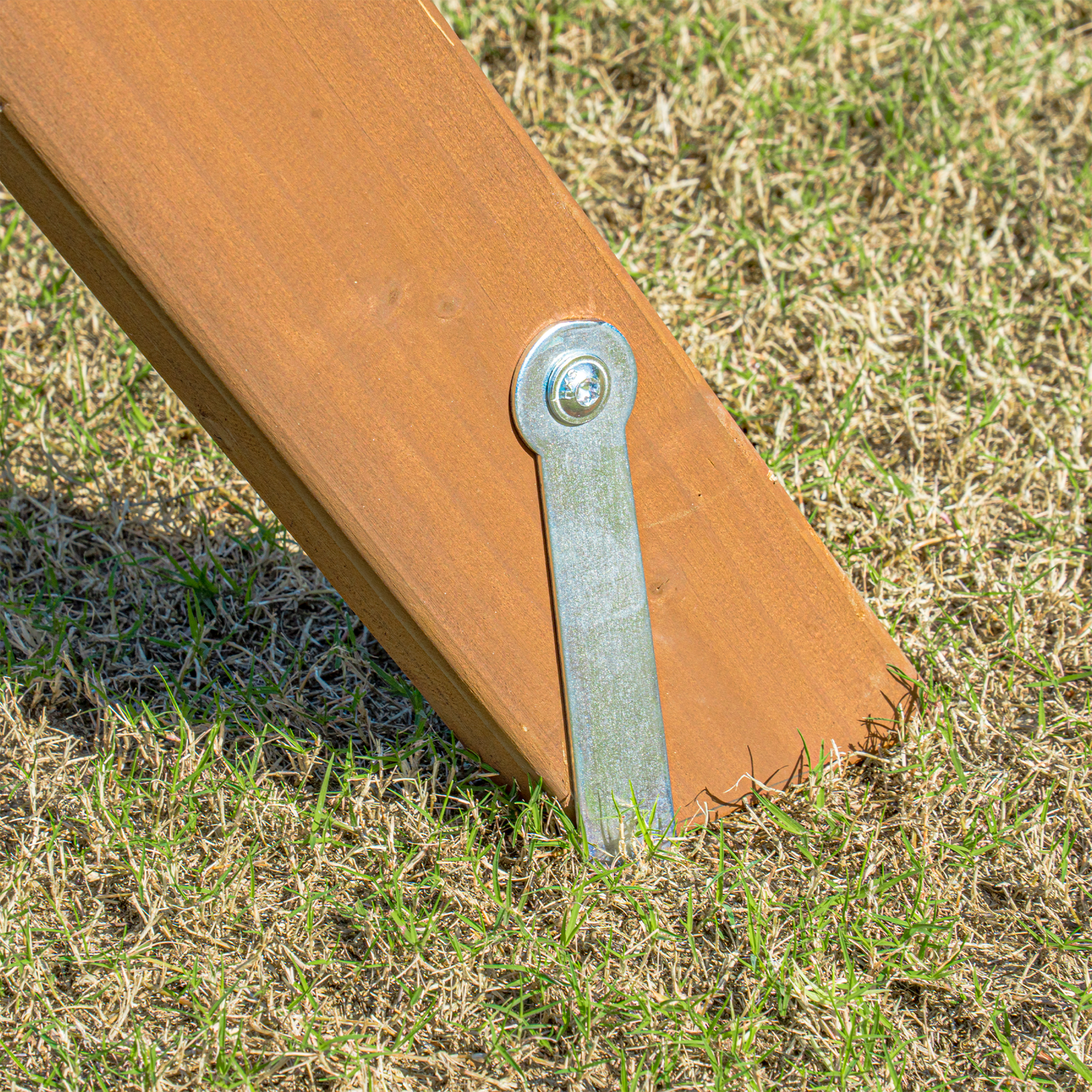 - Dubbele schommel met twee houten schommelzitjes met verstelbare hoogte.