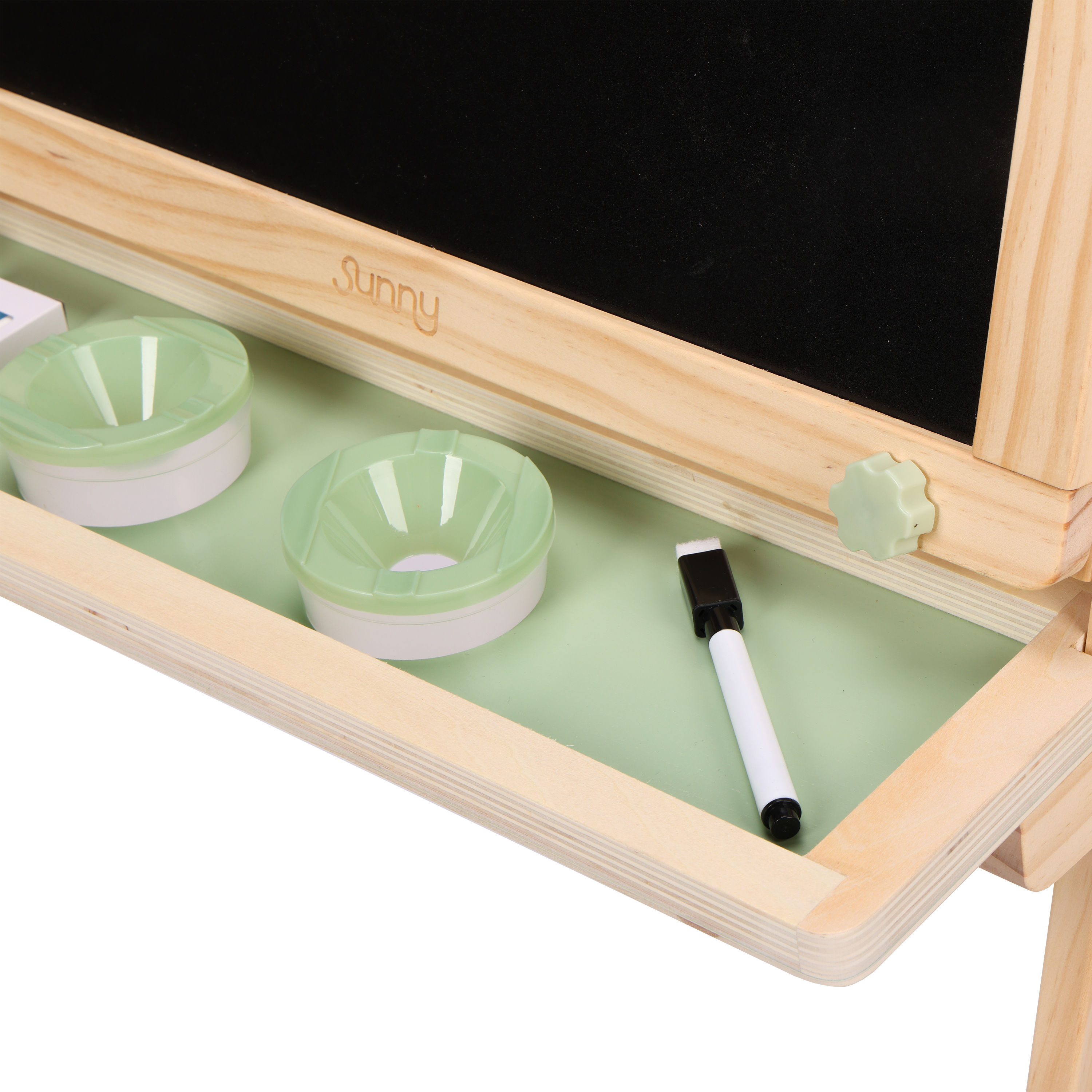 Naast al dat speelplezier is de Mika ook superpraktisch. Er is een stevig stoffen opbergvak onderin én een handig plateau voor pennen, krijtjes en kwasten. Zo blijft alles netjes bij elkaar.