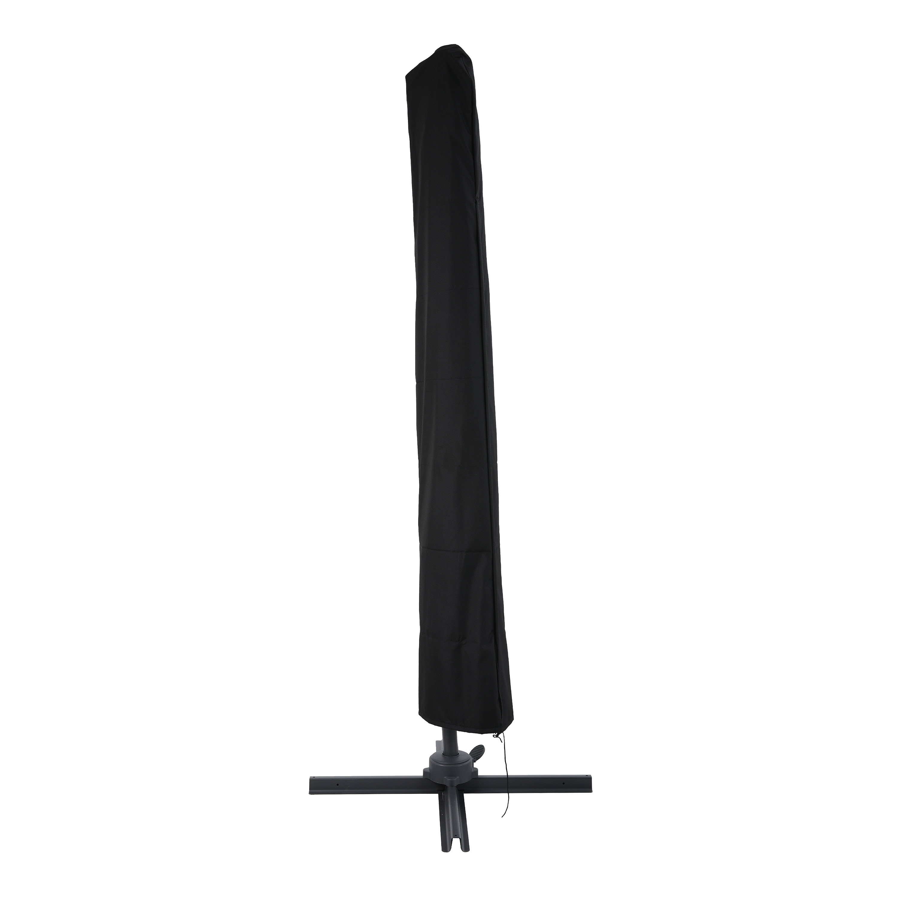 De Mira zweefparasol wordt geleverd met een kruisvoet. Voor optimale stabiliteit adviseren we om deze te verzwaren tot minimaal 80 kg met bijvoorbeeld tegels. Daarnaast ontvang je een beschermhoes, zodat je de parasol eenvoudig kunt afdekken wanneer deze niet in gebruik is. Zo blijft hij langer mooi en beschermd tegen weersinvloeden.