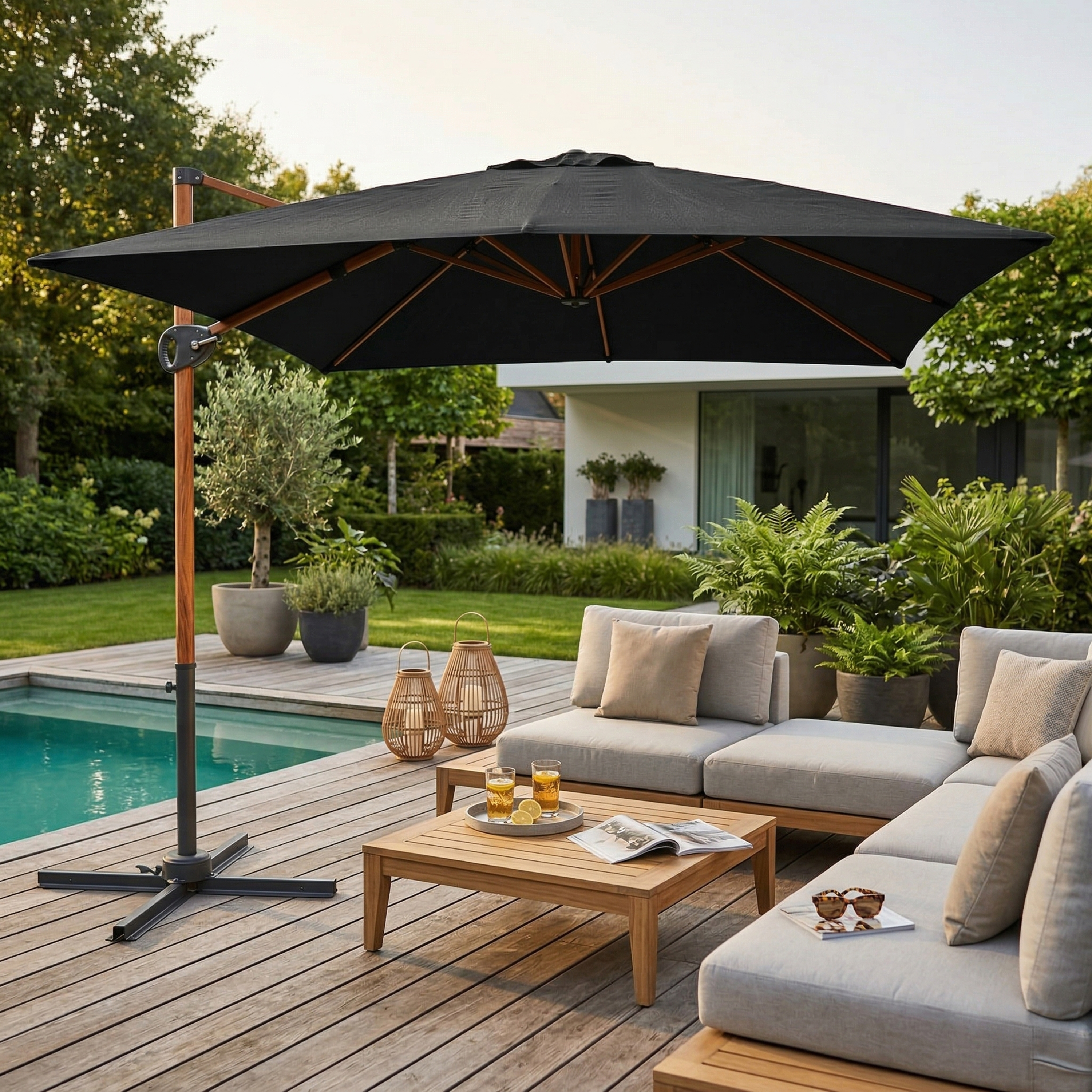 - Parasol van 300 x 300 cm voor een groot schaduwoppervlak.